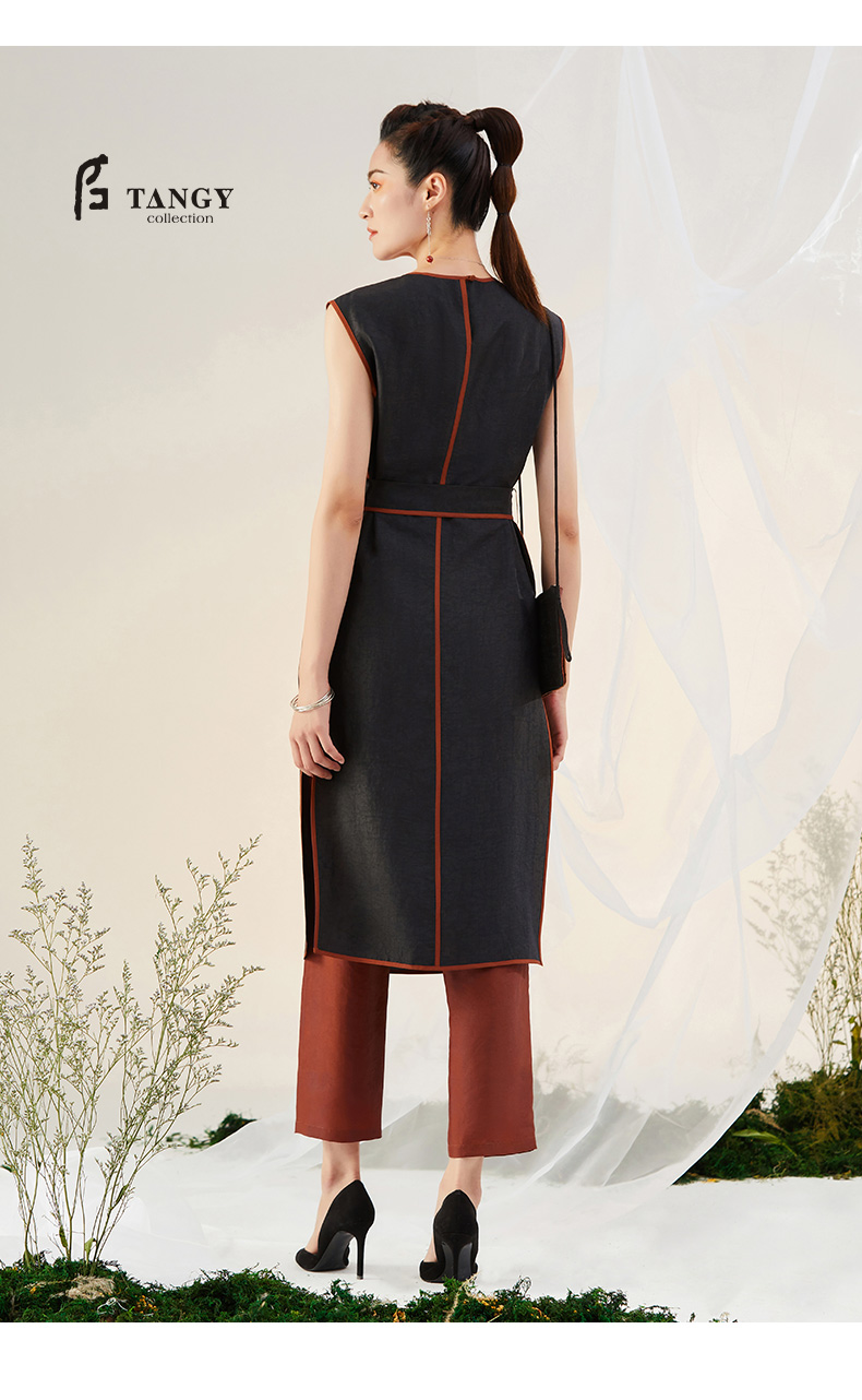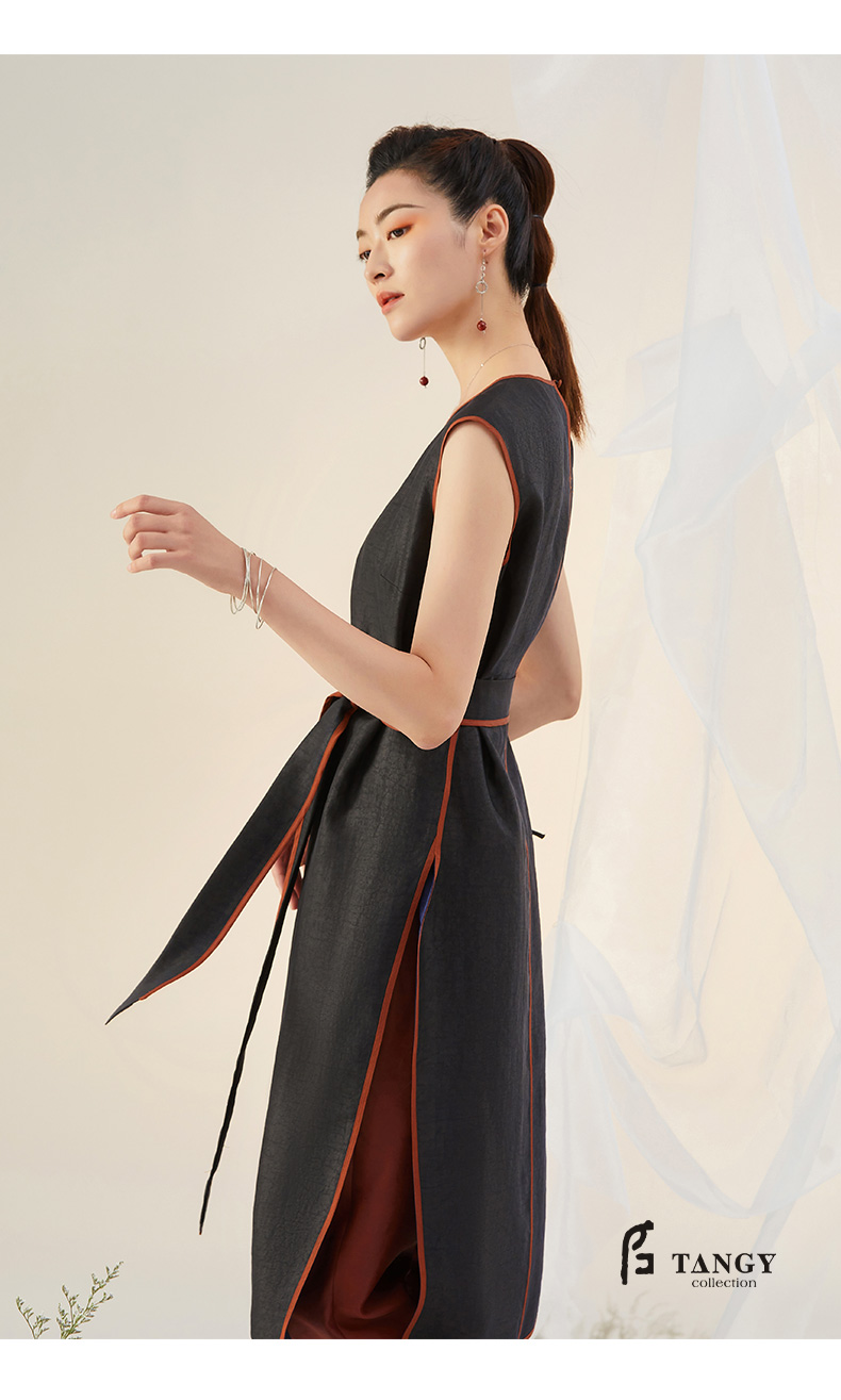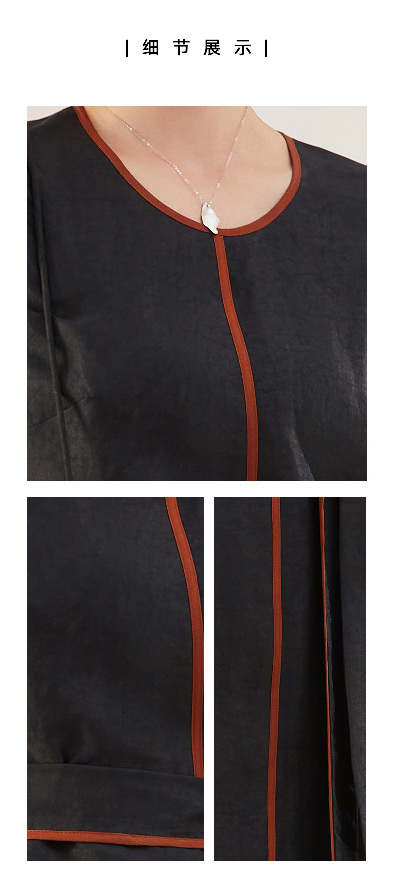 TANGY Collection天意精品2021年秋冬新品蚕丝撞色莨绸开叉上衣