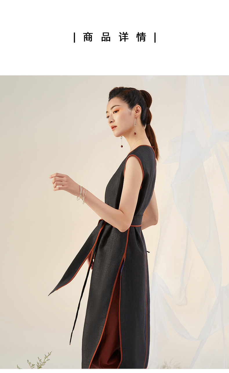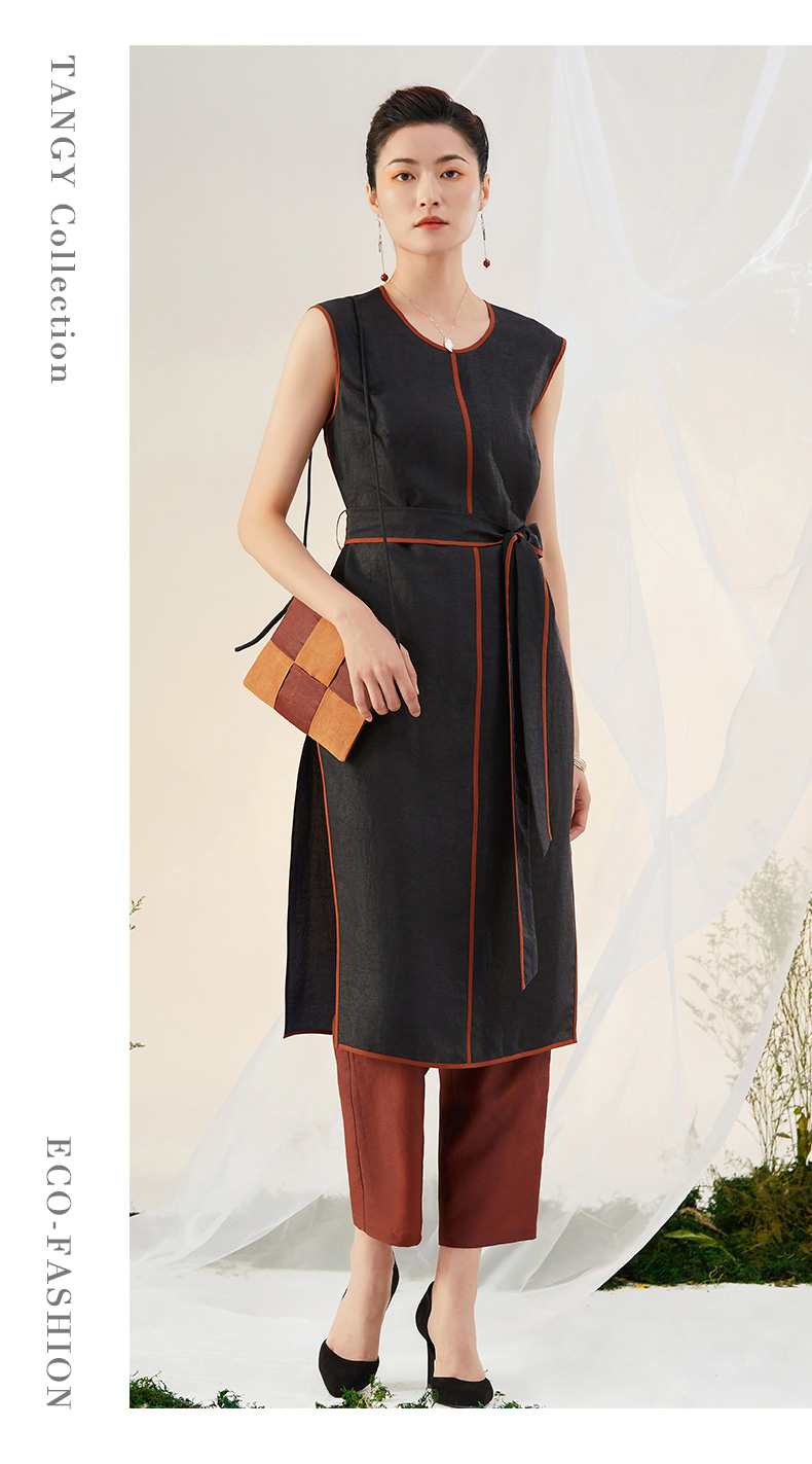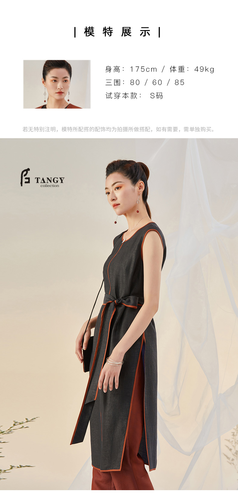 TANGY Collection天意精品2021年秋冬新品蚕丝撞色莨绸开叉上衣