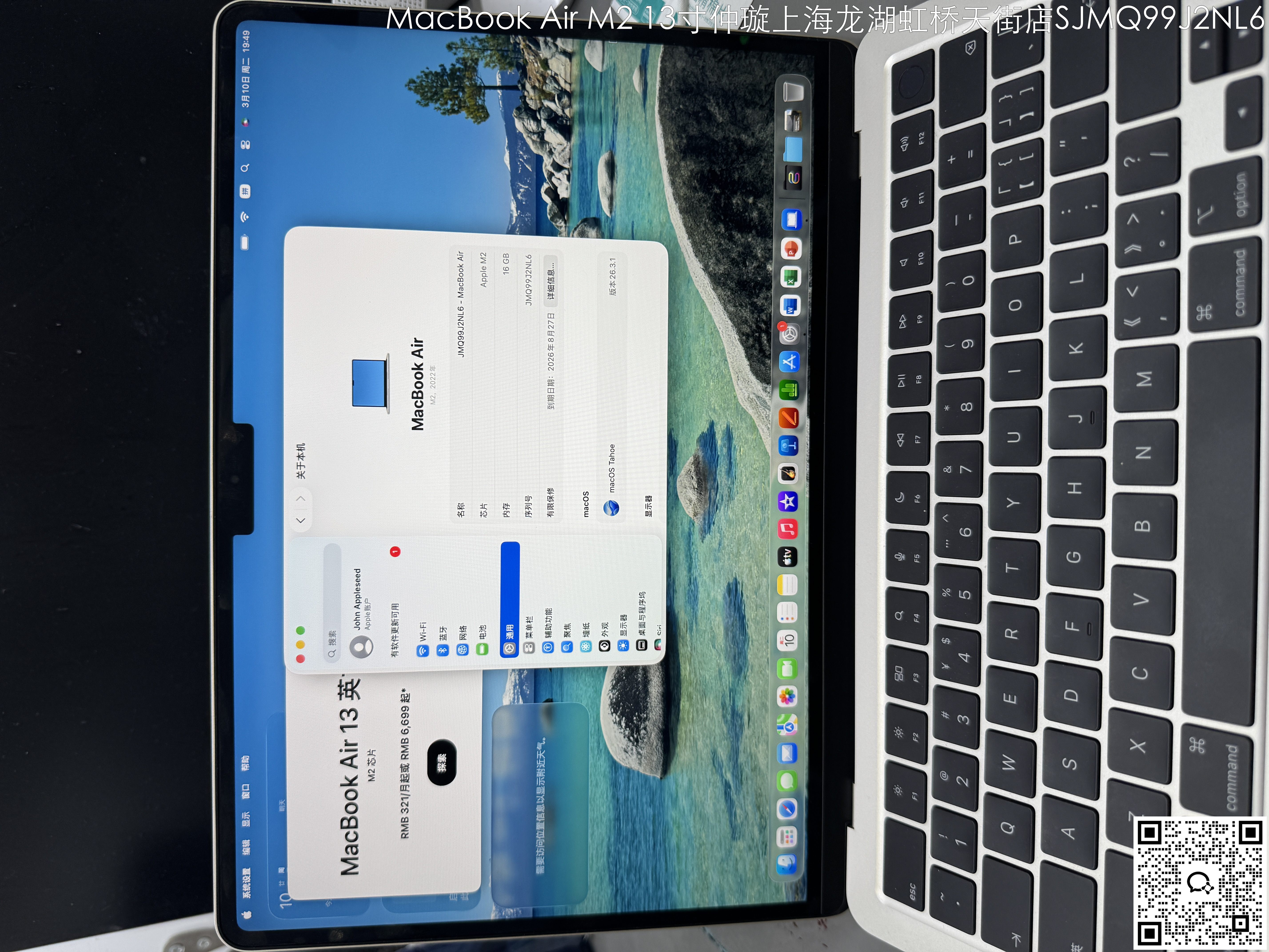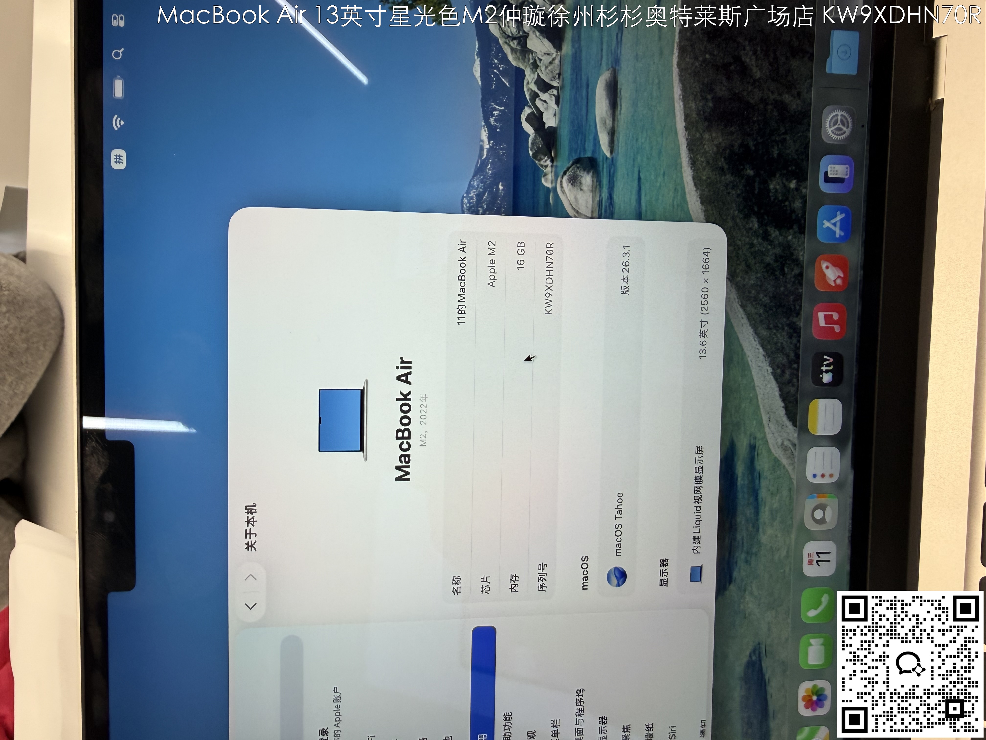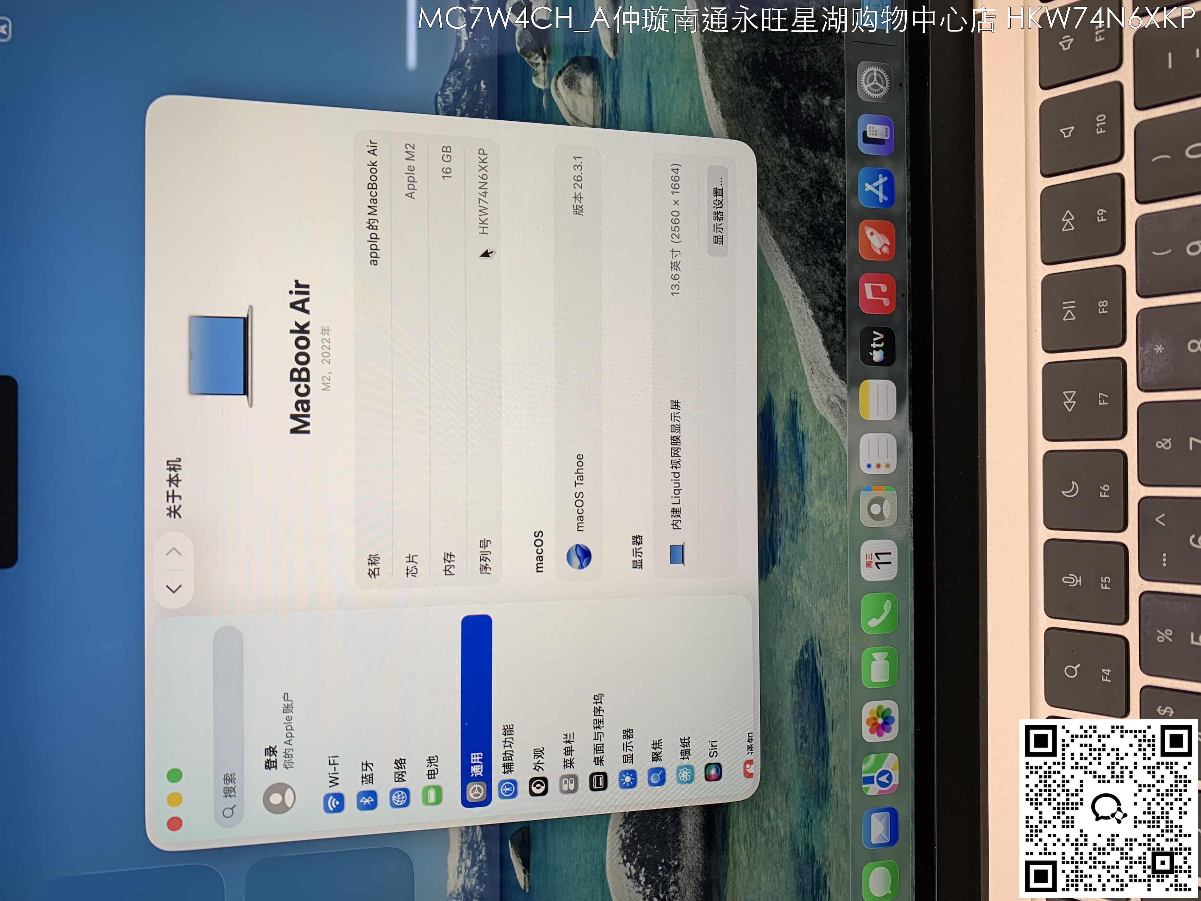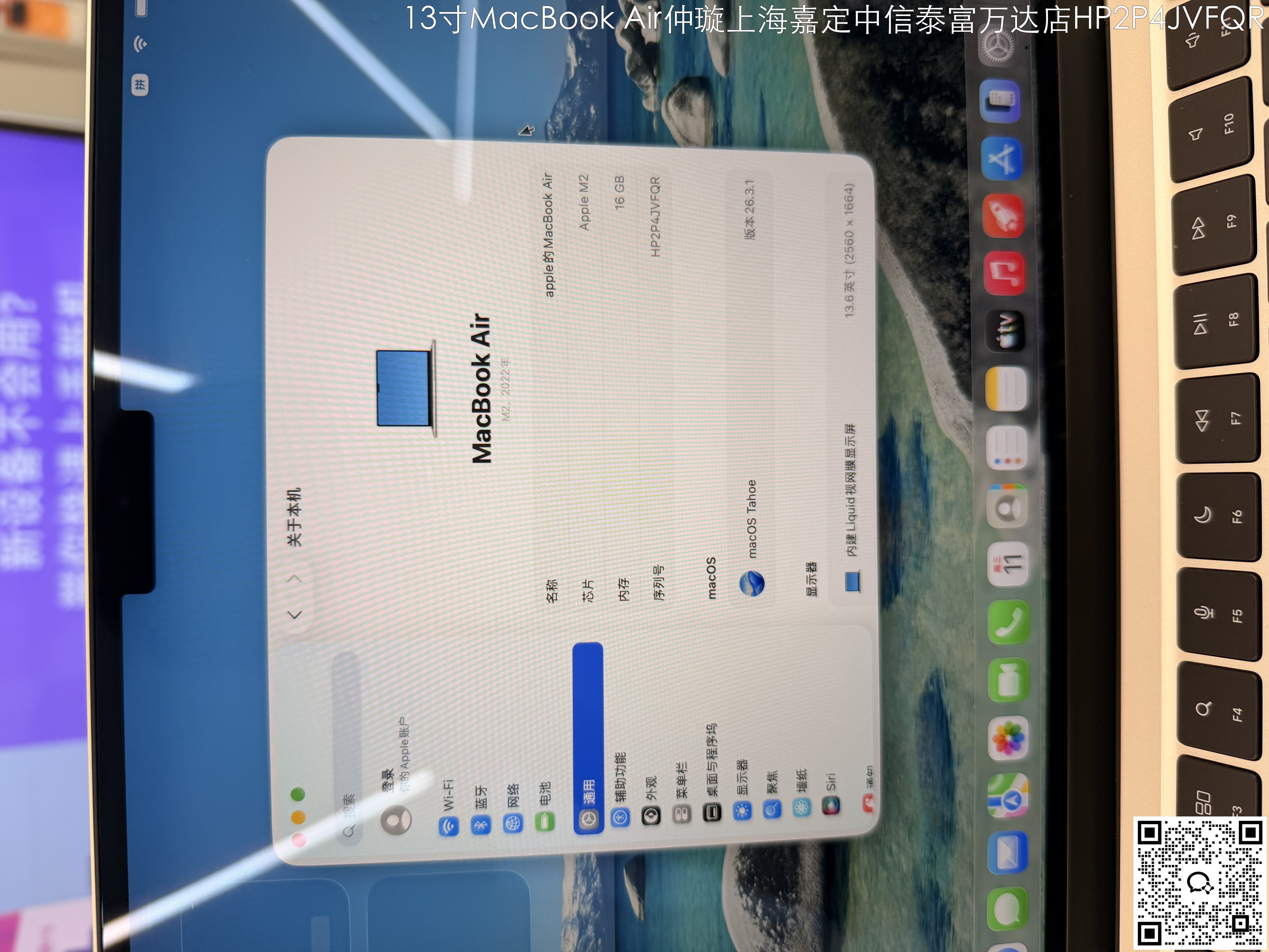 【门店样品】13 英寸 MacBook AirM2店铺同步在售,库存更新可能不及时看中直接扫码联系店内销售。