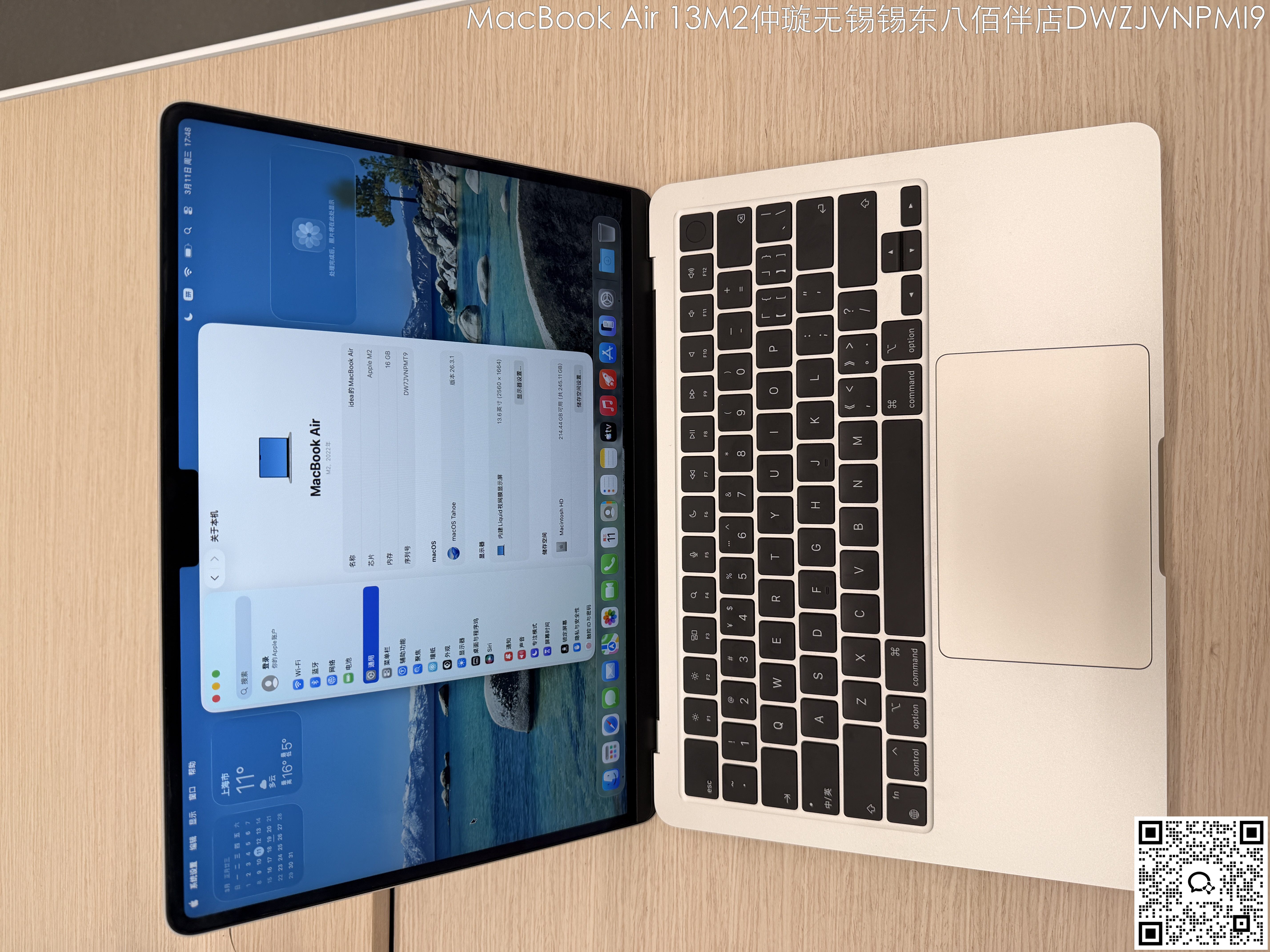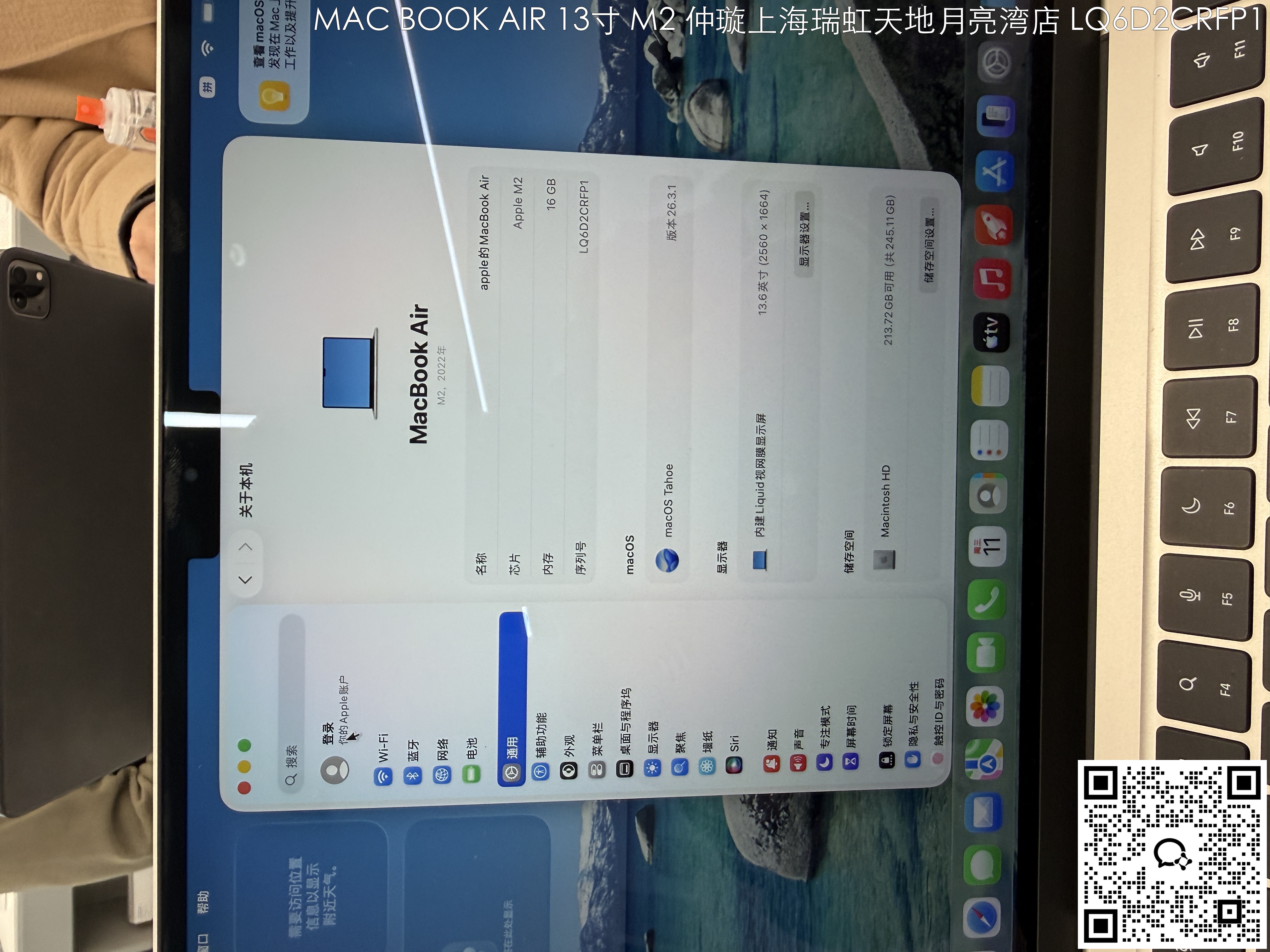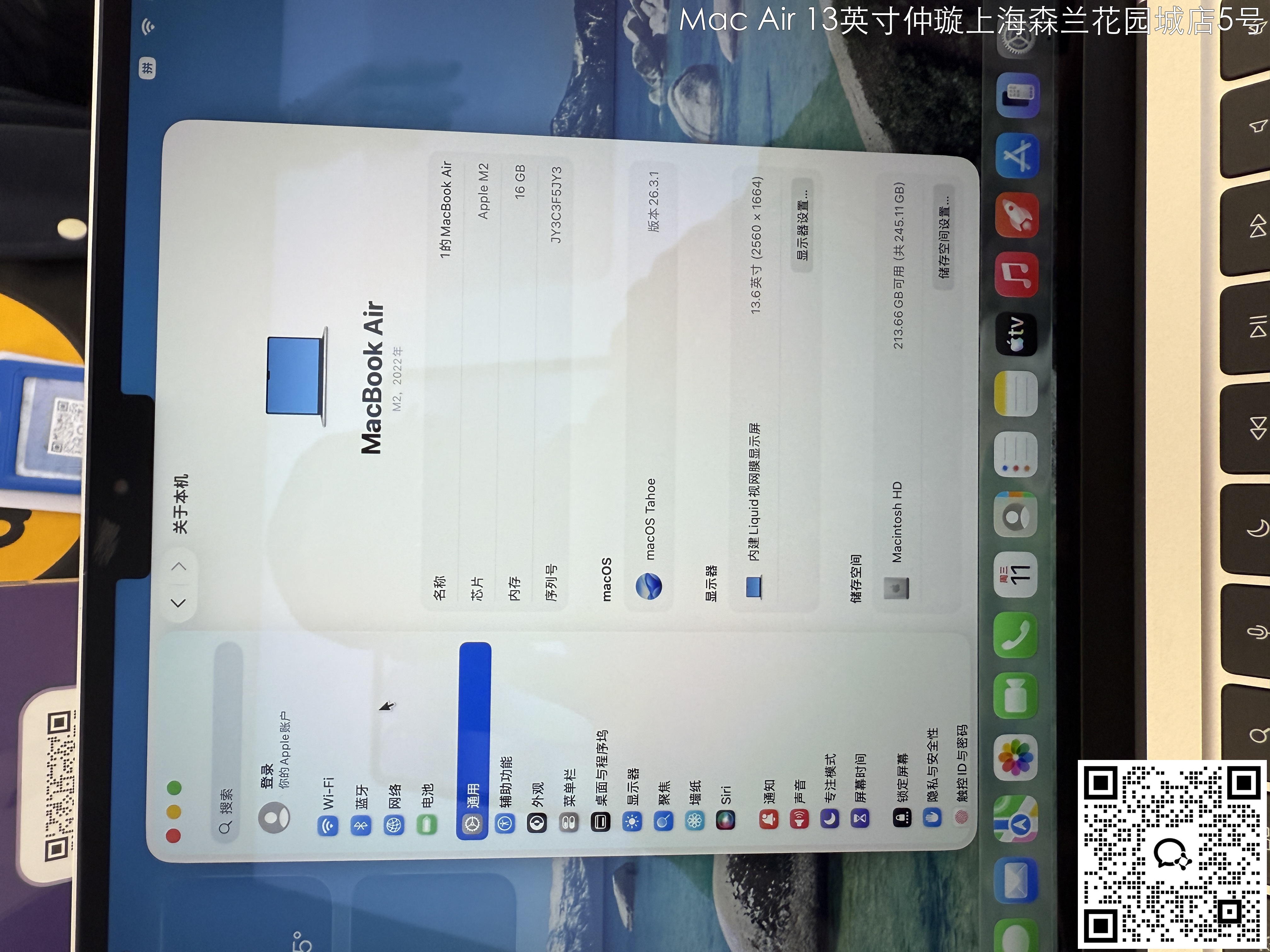 【门店样品】13 英寸 MacBook AirM2店铺同步在售,库存更新可能不及时看中直接扫码联系店内销售。