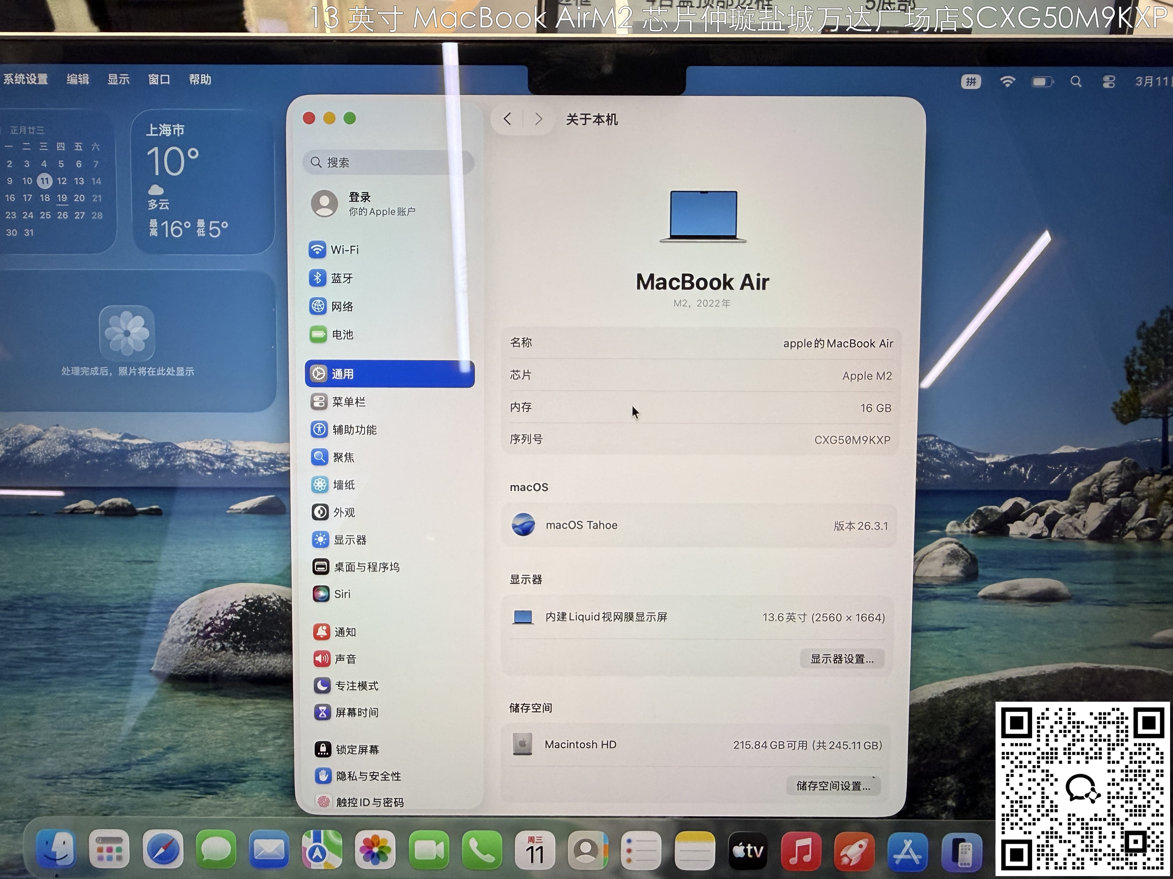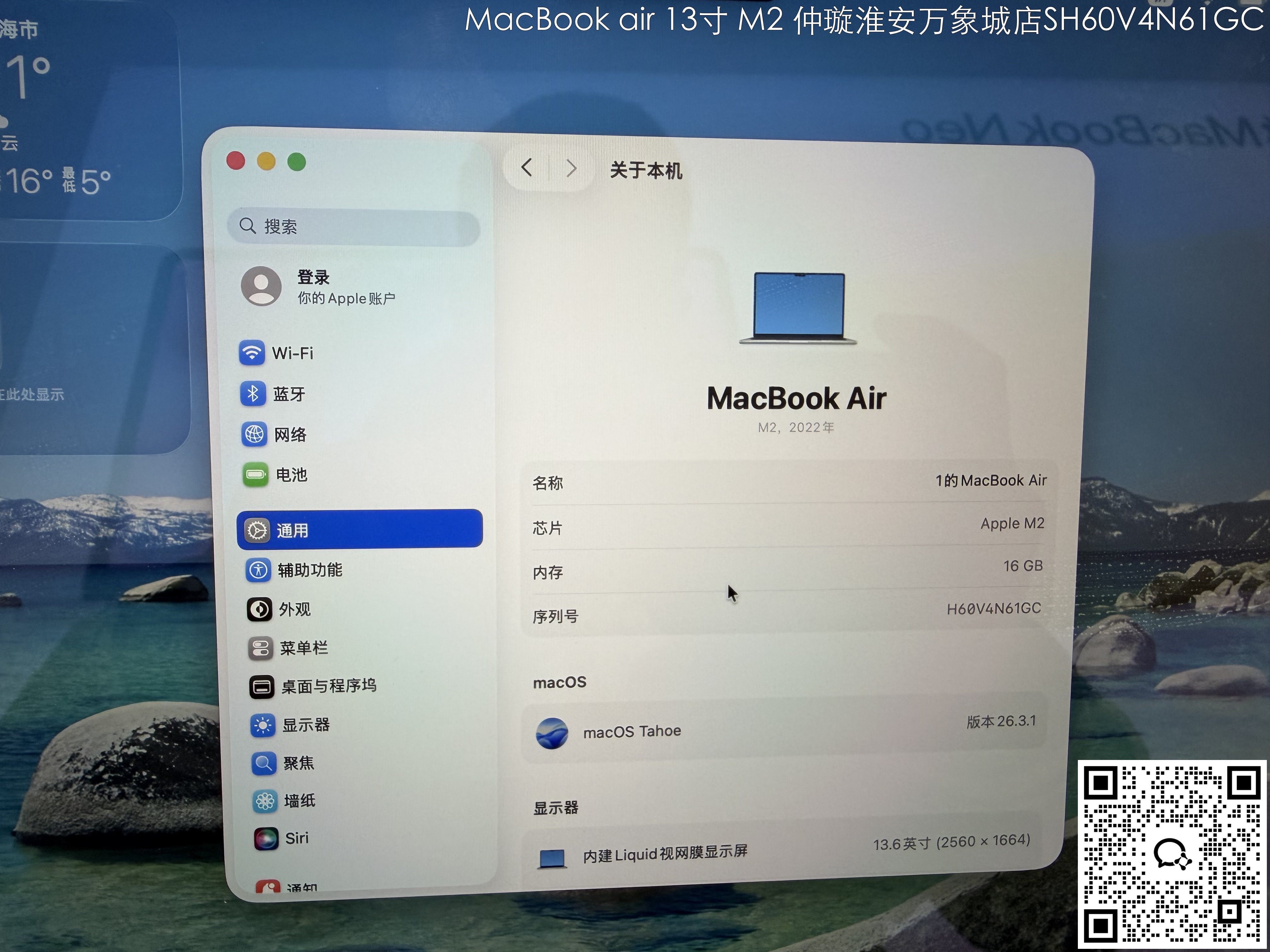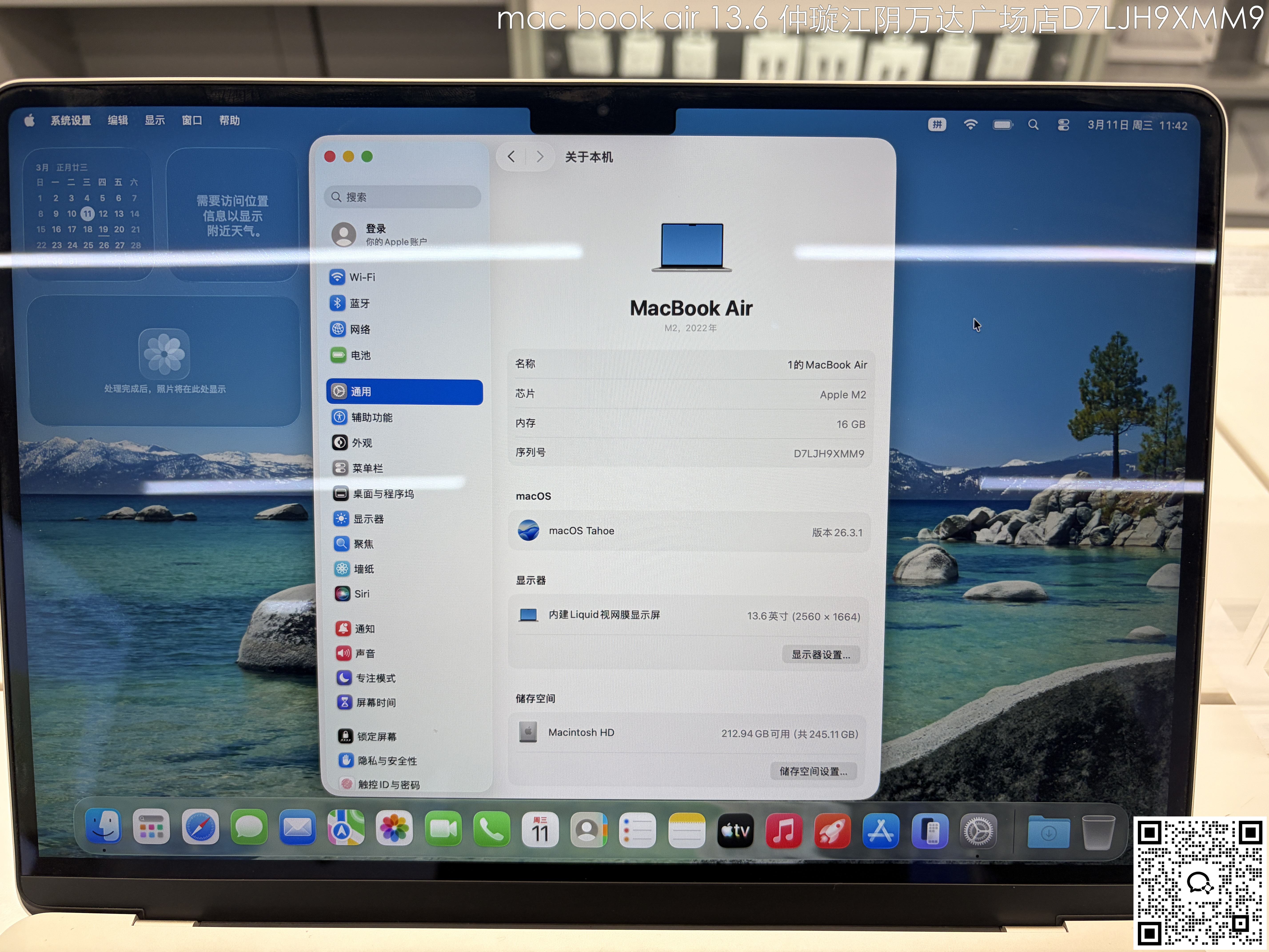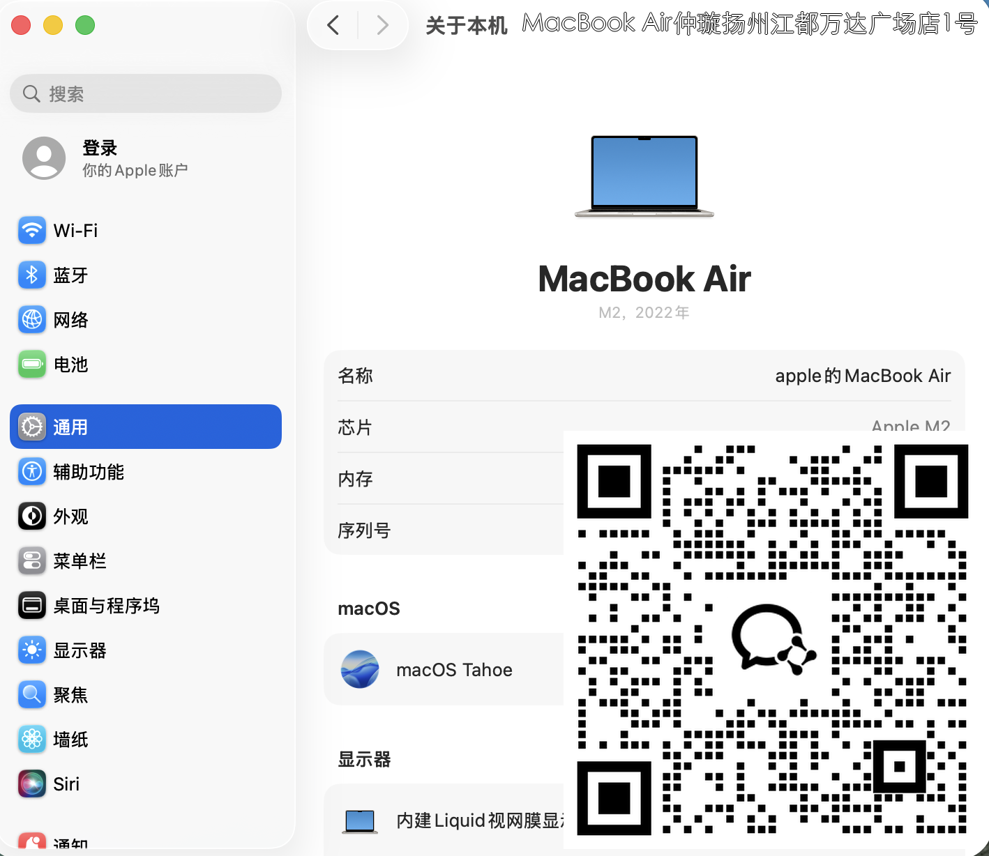 【门店样品】13 英寸 MacBook AirM2店铺同步在售,库存更新可能不及时看中直接扫码联系店内销售。