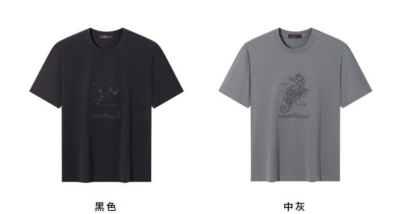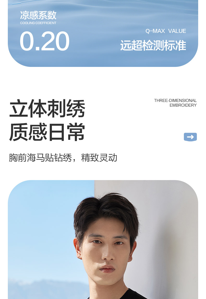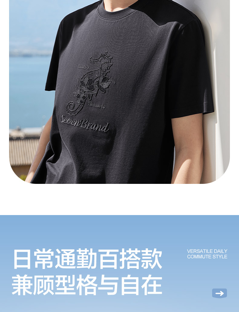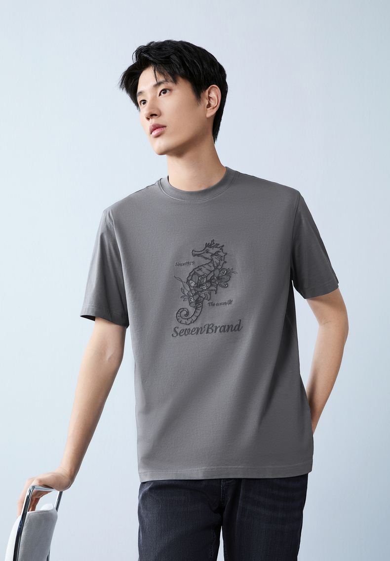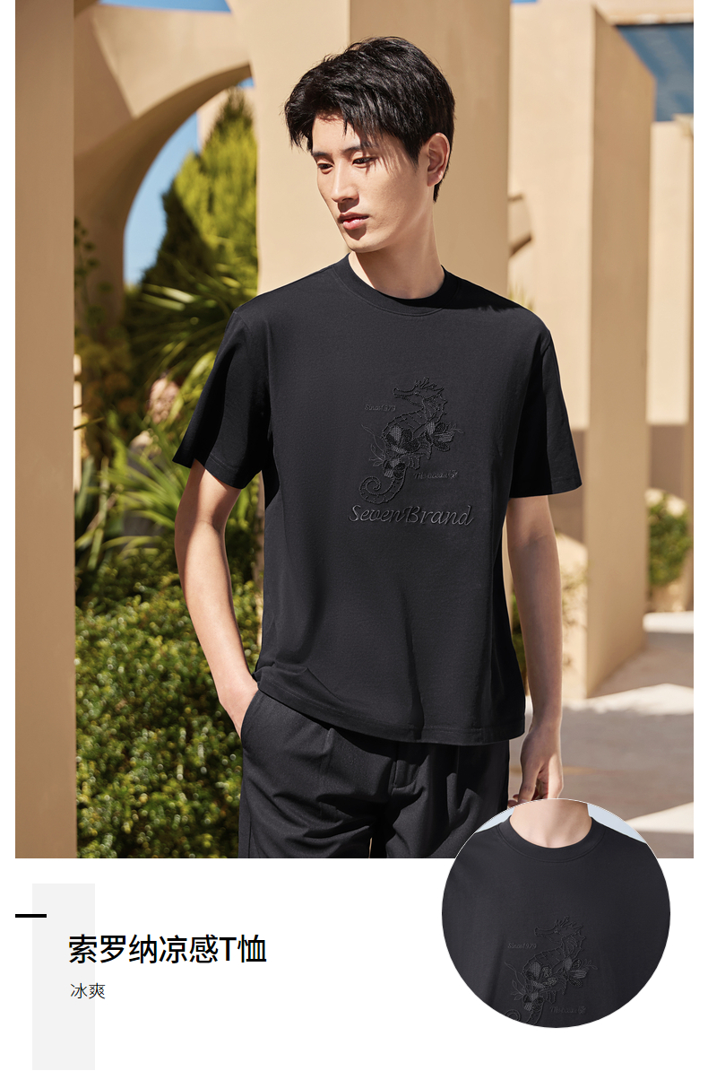 【海洋图案】柒牌男士2026夏上新短袖T恤凉感休闲圆领舒适上衣男 130T71500