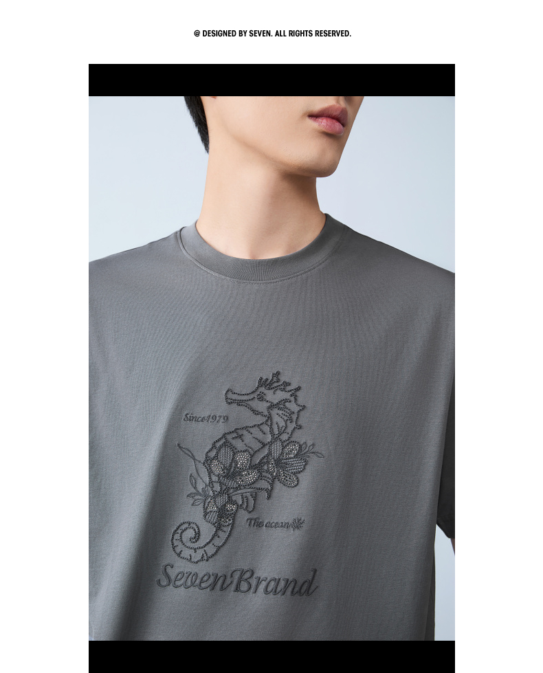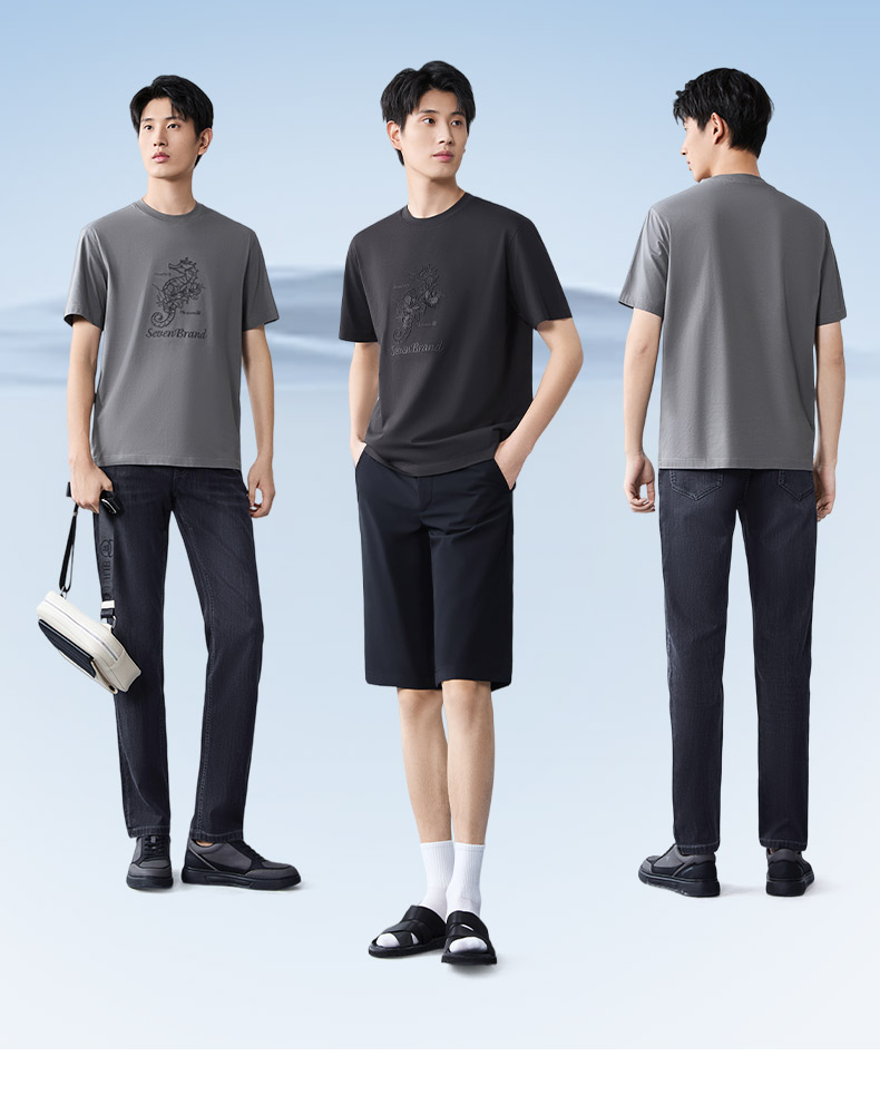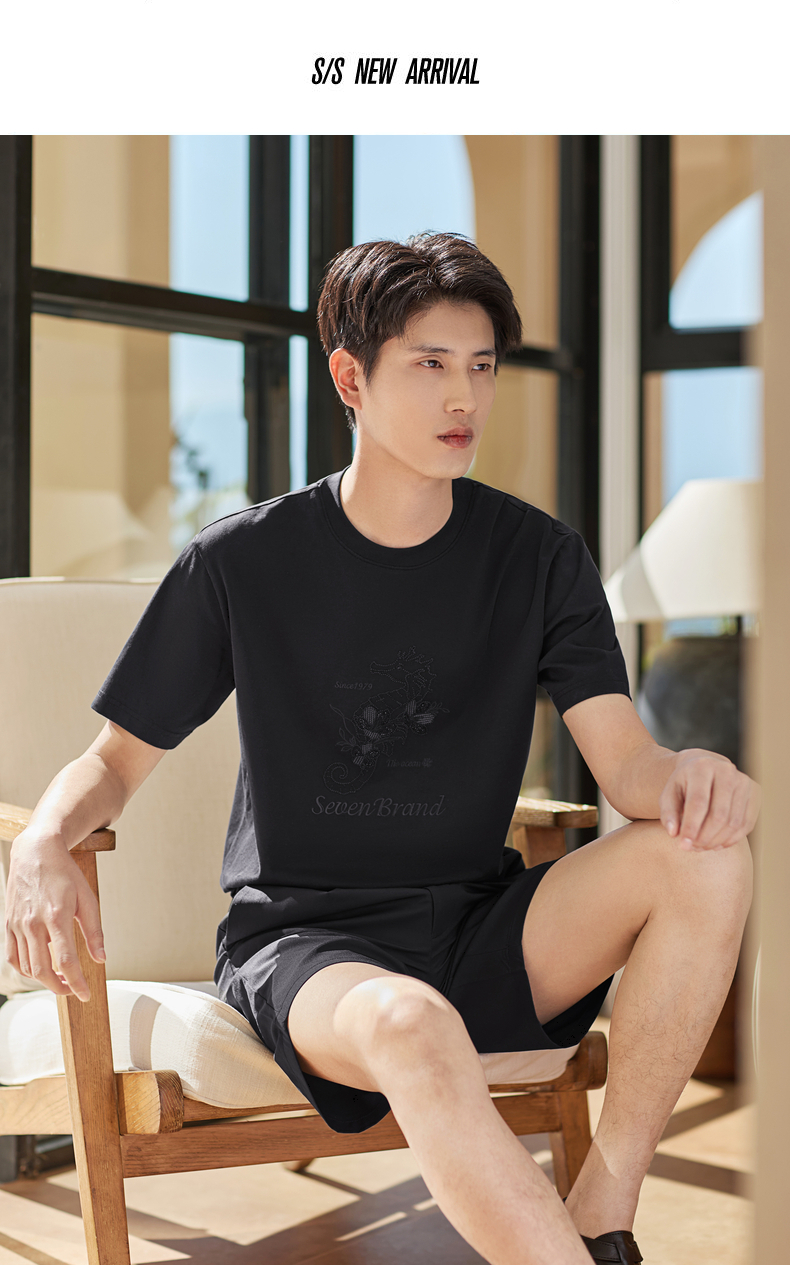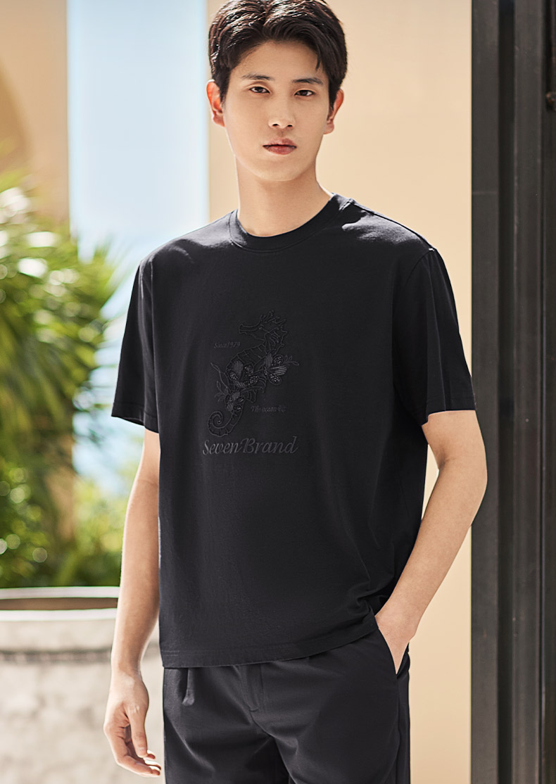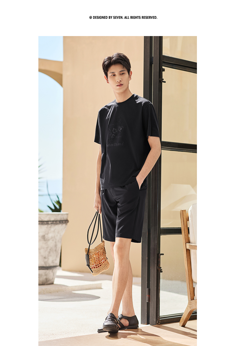 【海洋图案】柒牌男士2026夏上新短袖T恤凉感休闲圆领舒适上衣男 130T71500