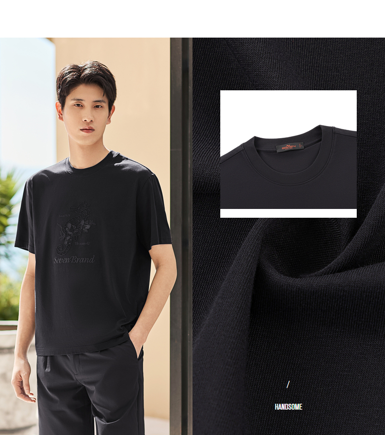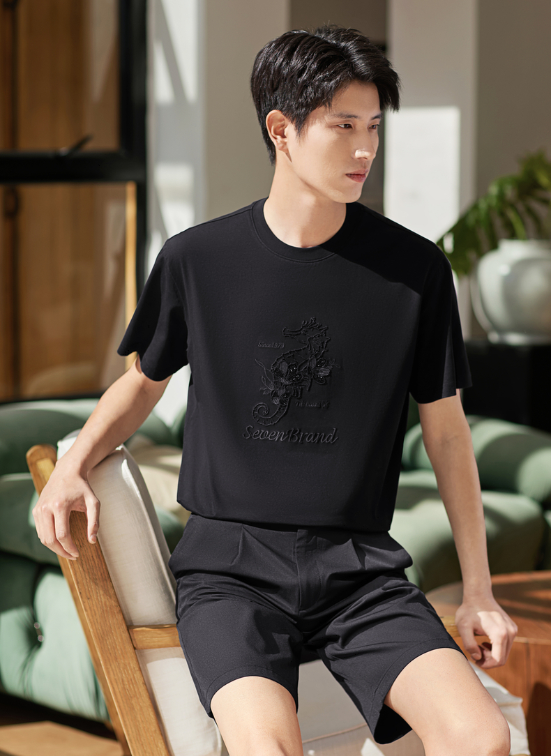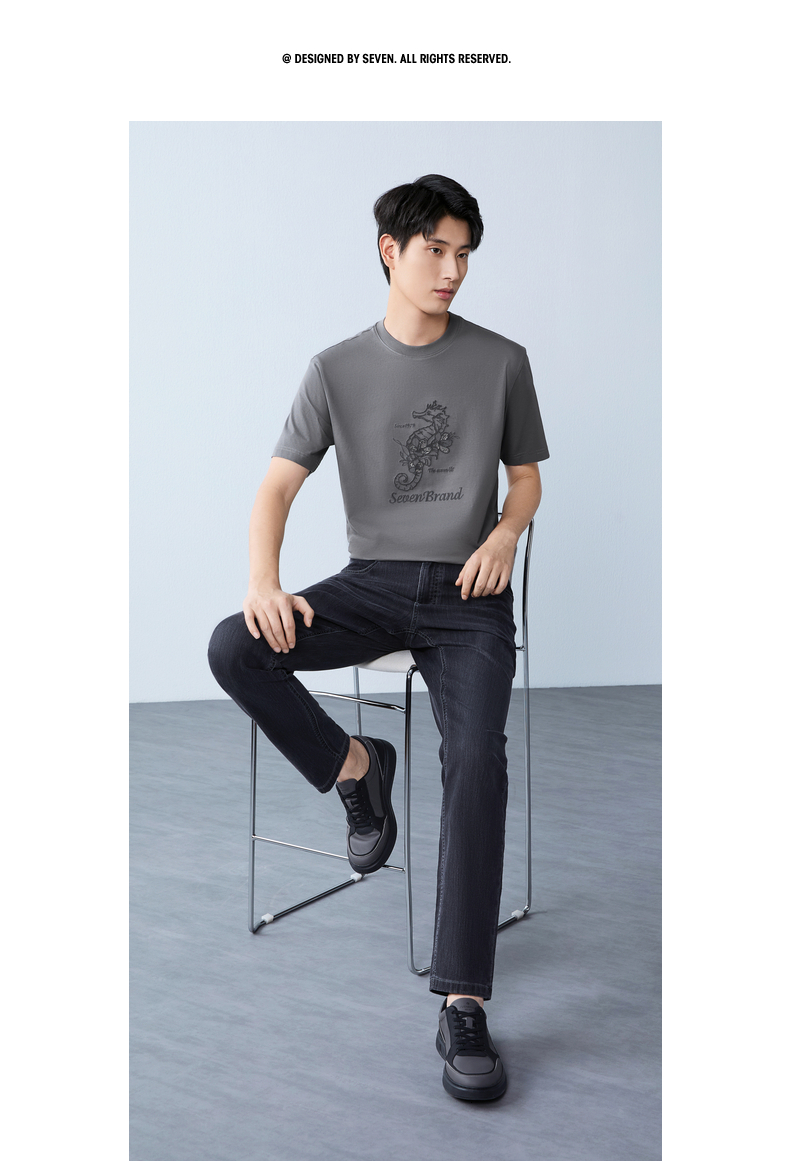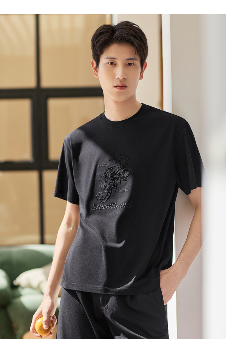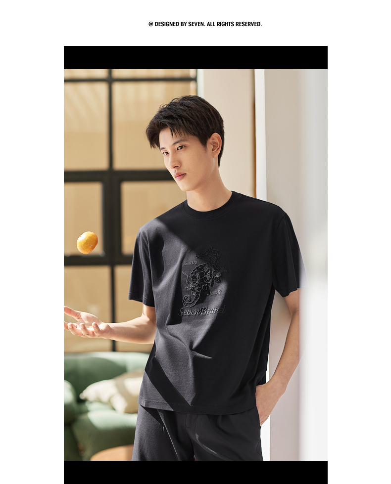 【海洋图案】柒牌男士2026夏上新短袖T恤凉感休闲圆领舒适上衣男 130T71500