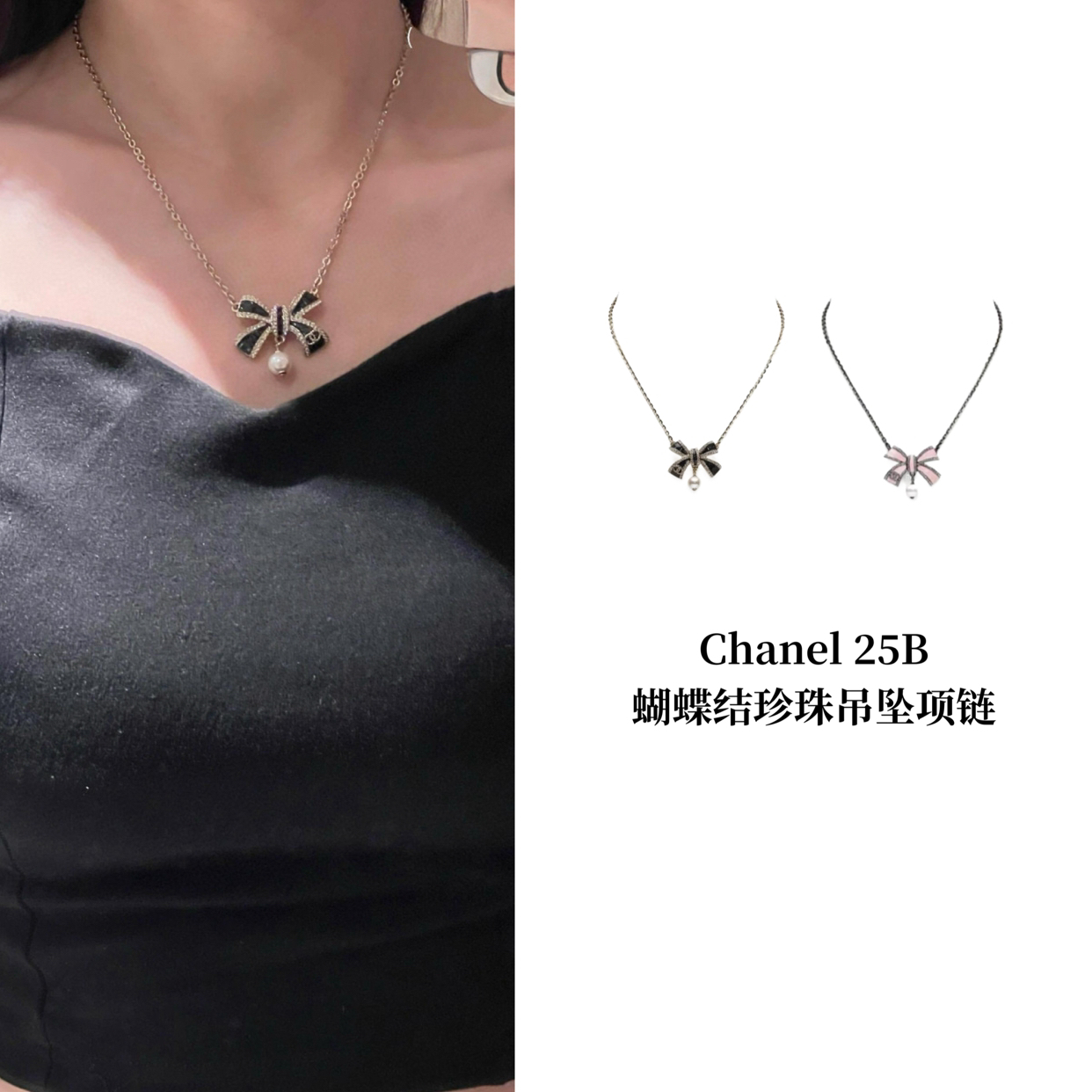 CH-J 25B 蝴蝶结珍珠吊坠项链