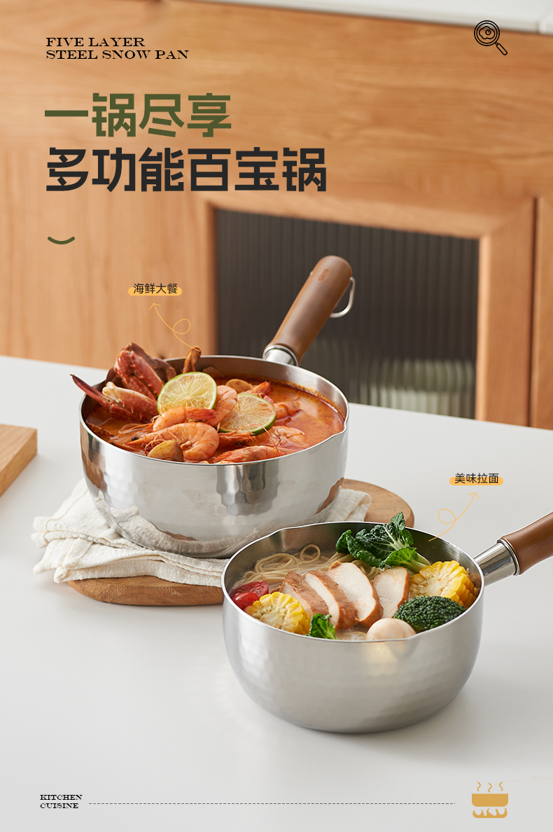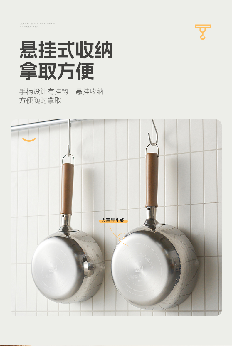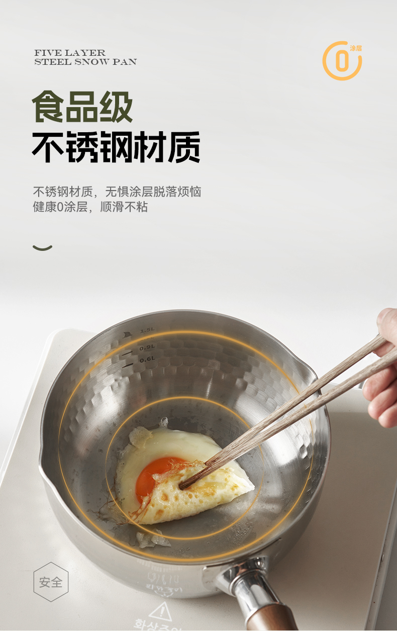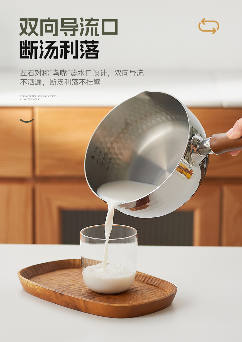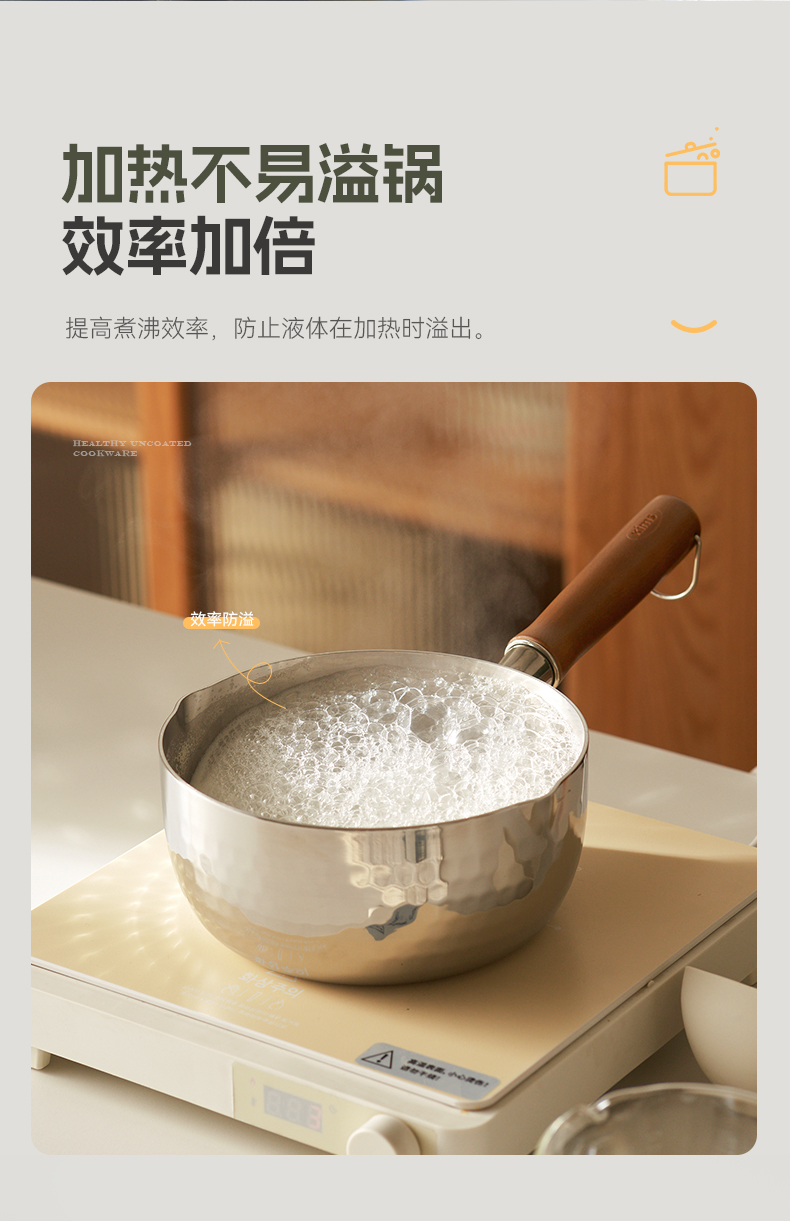 无涂层304不锈钢小奶锅 平锅 汤锅 A-4720 kimscook
