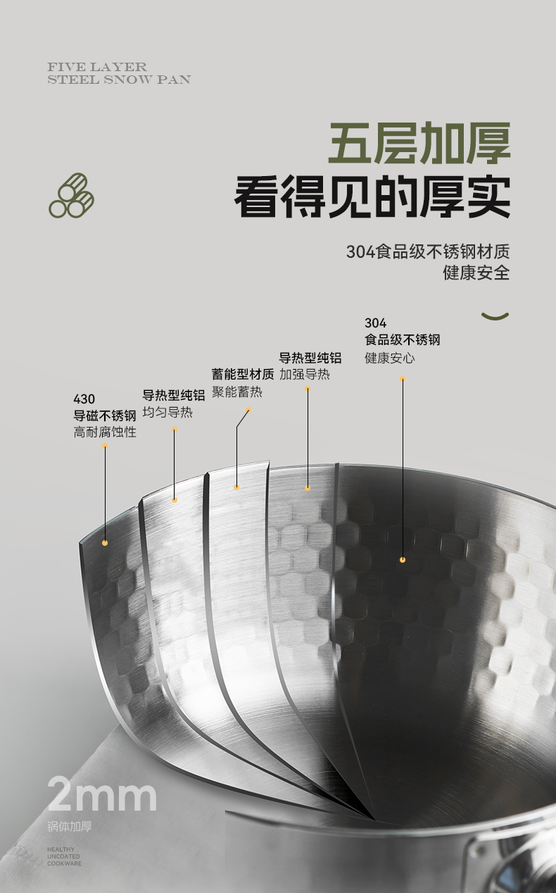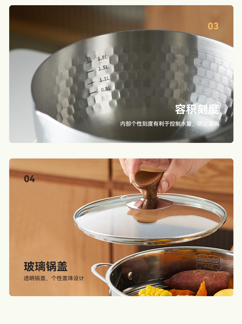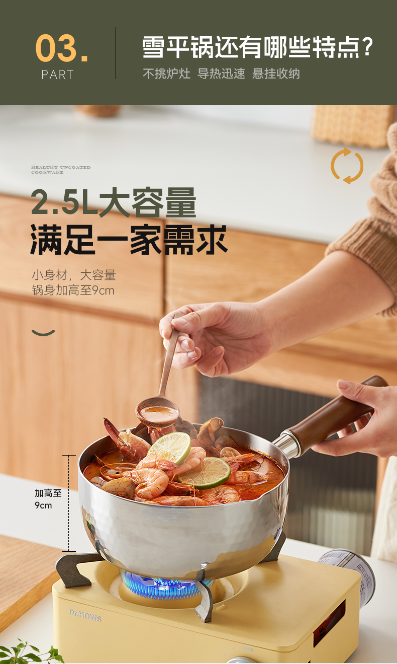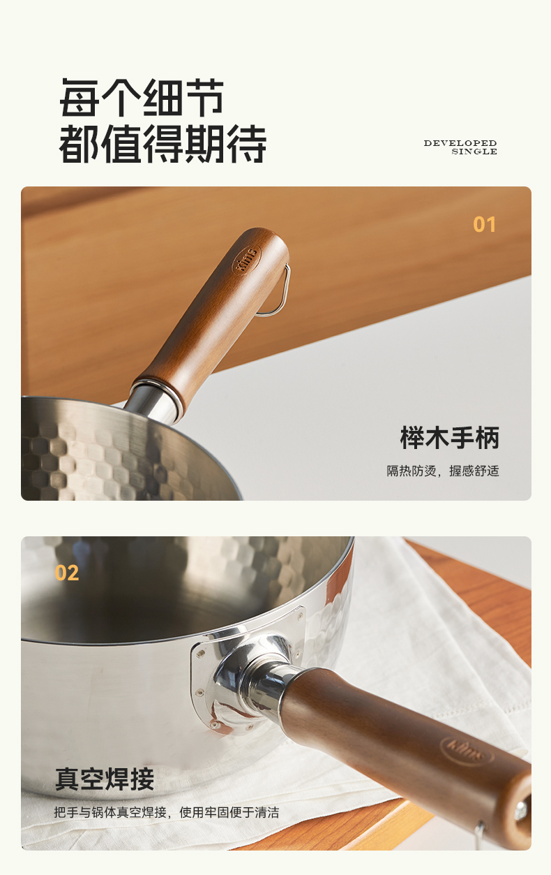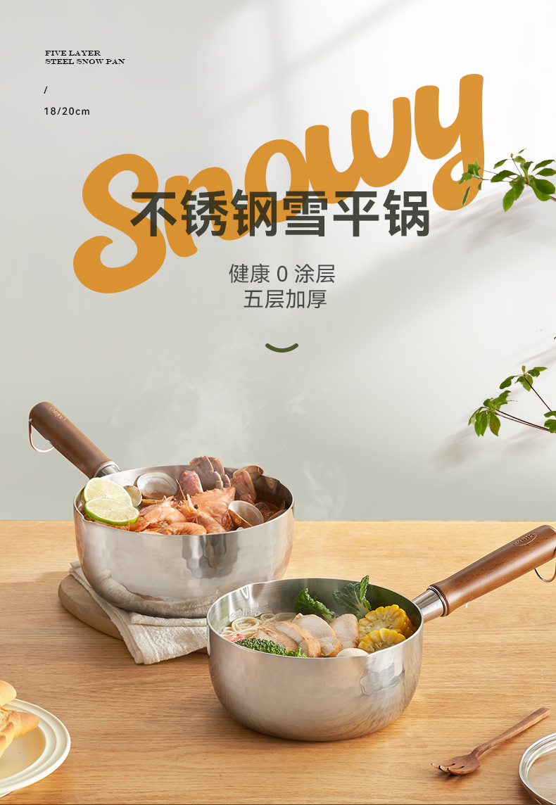 无涂层304不锈钢小奶锅 平锅 汤锅 A-4720 kimscook