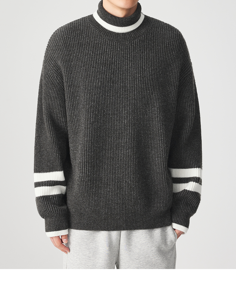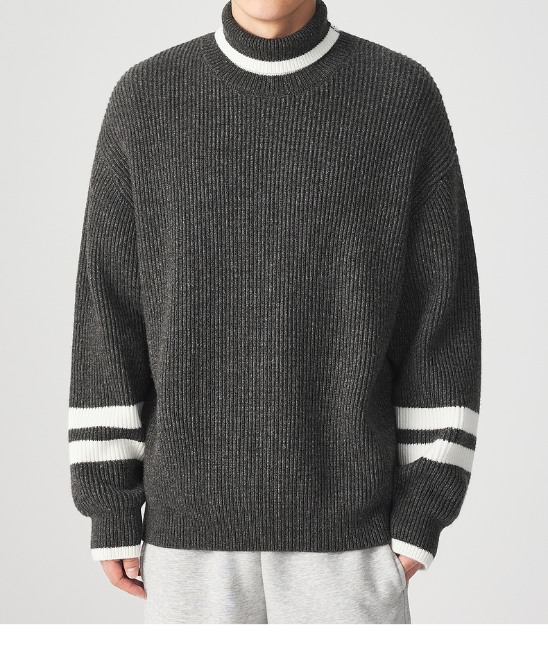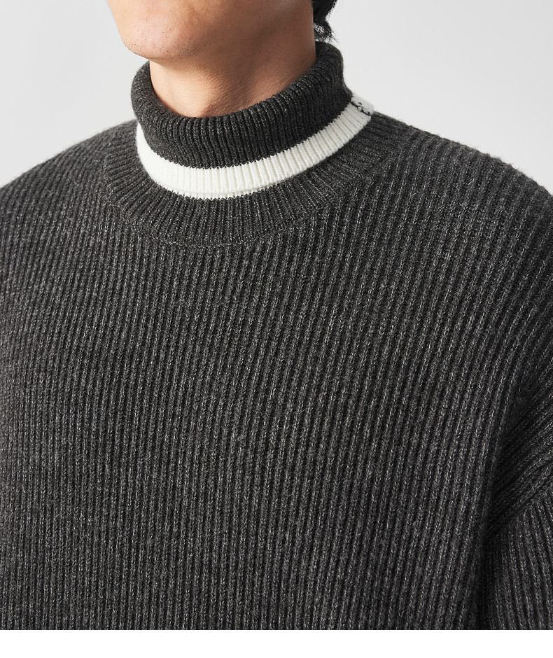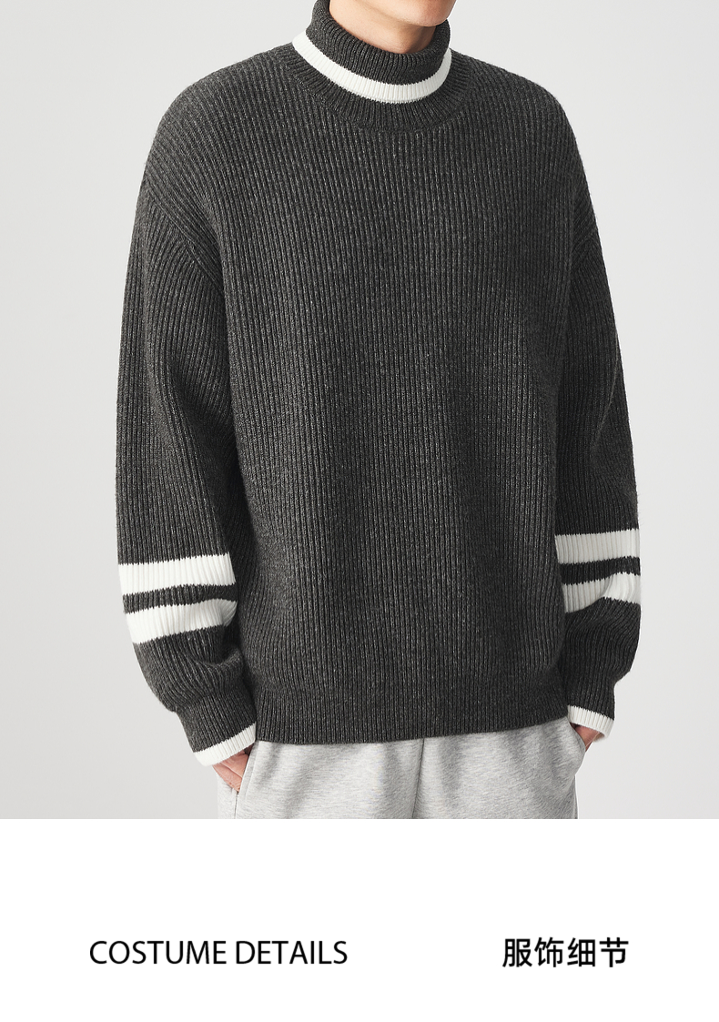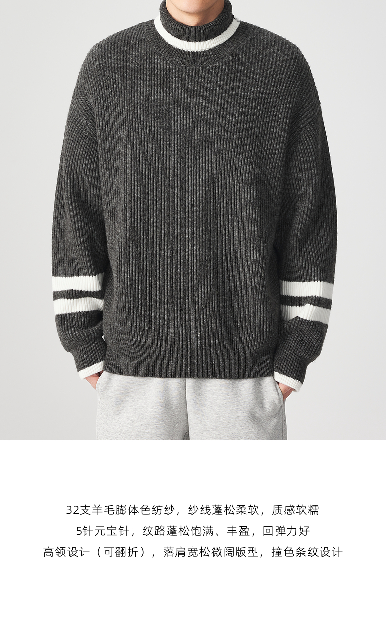 墨麦客男装 撞色条纹 可翻高领针织衫冬季新款肌理感厚款毛衣男潮