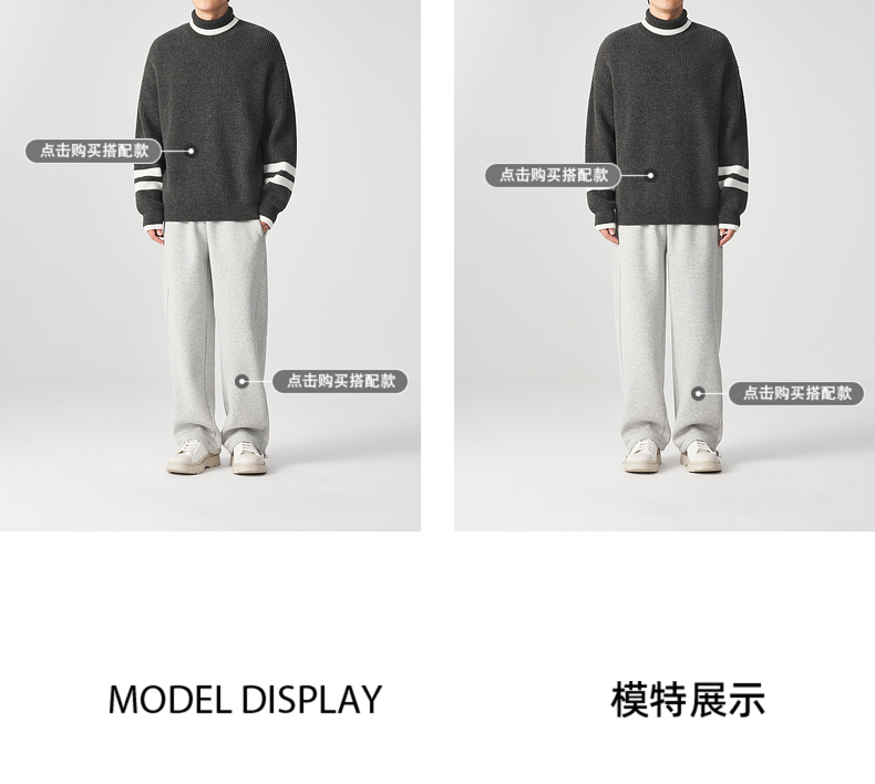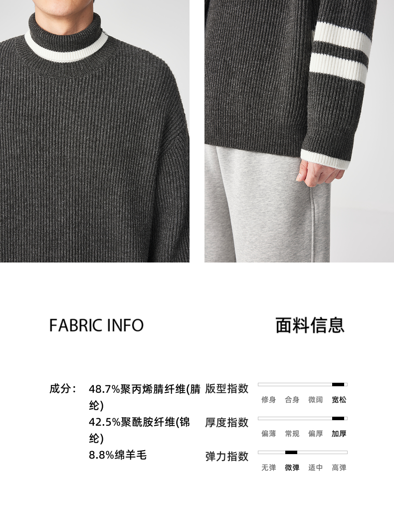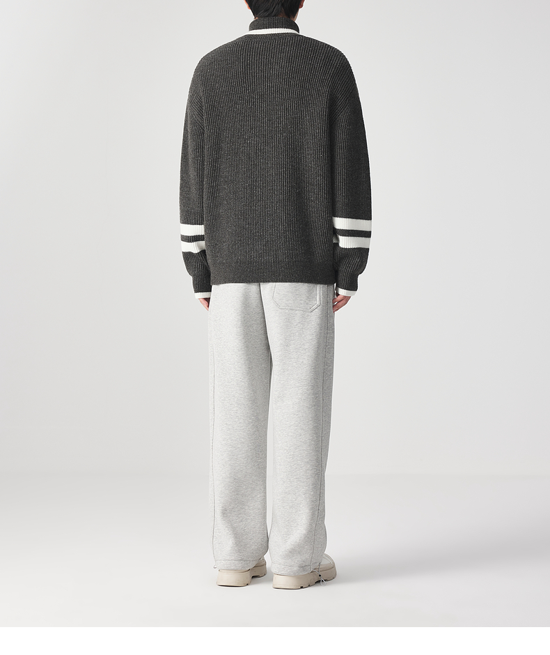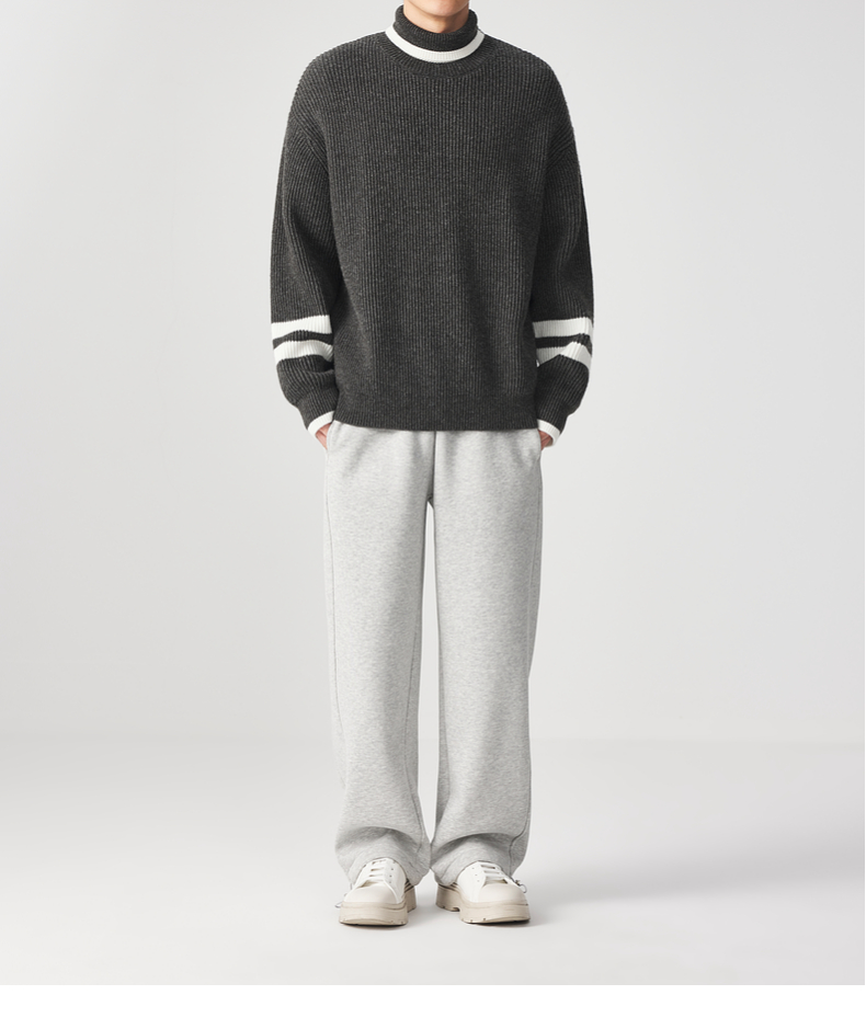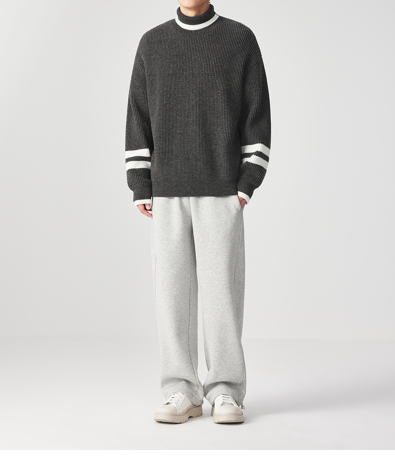 墨麦客男装 撞色条纹 可翻高领针织衫冬季新款肌理感厚款毛衣男潮