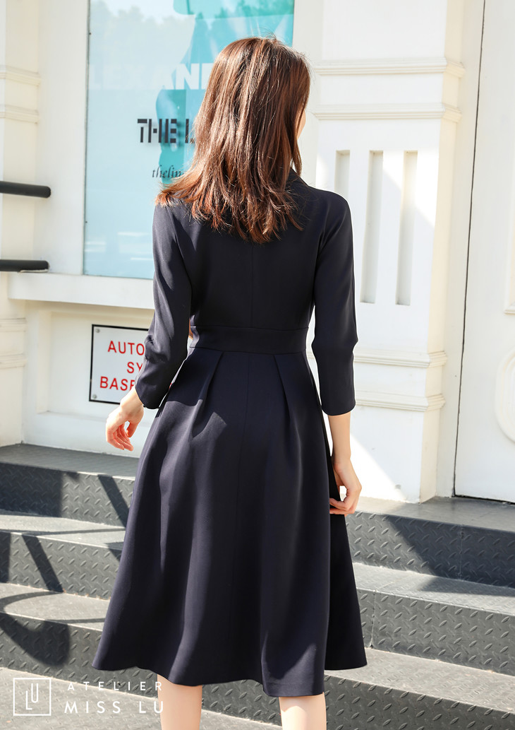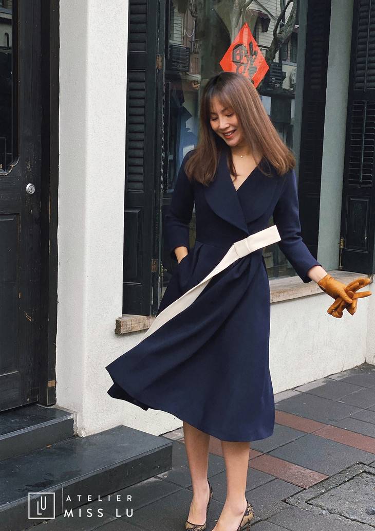 AtelierMissLu /Victoria-优雅藏青色系带翻领外套