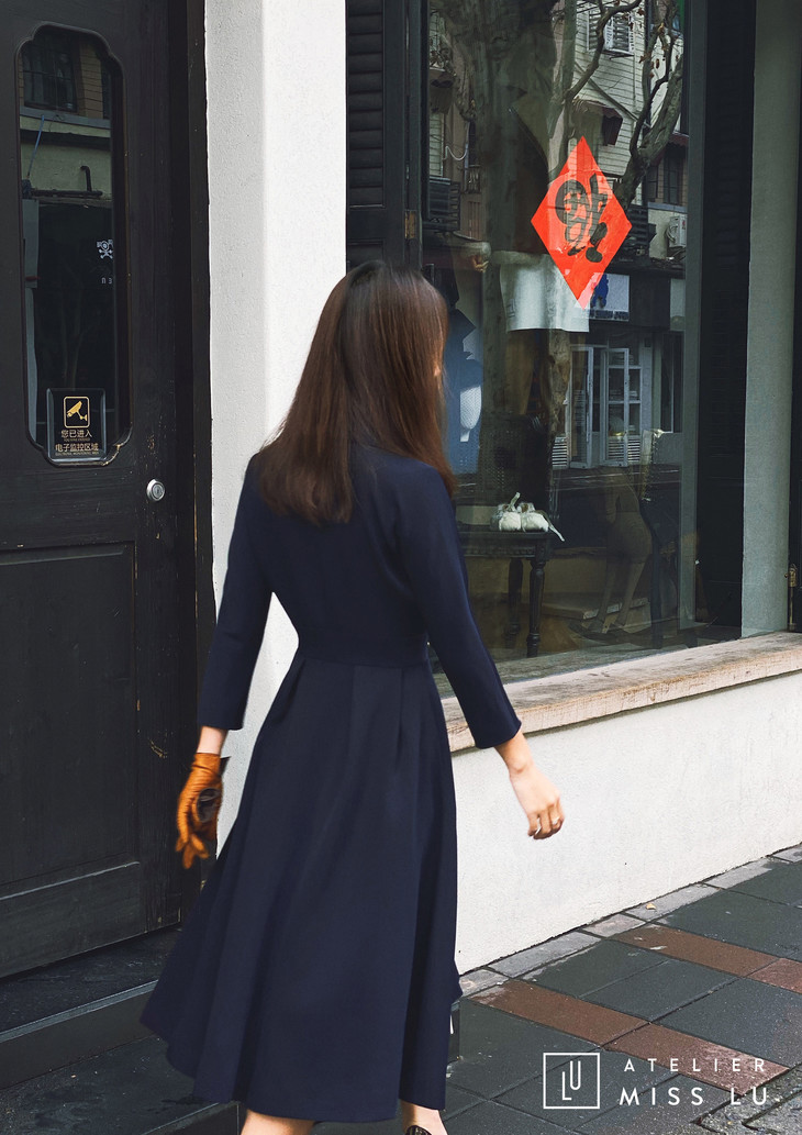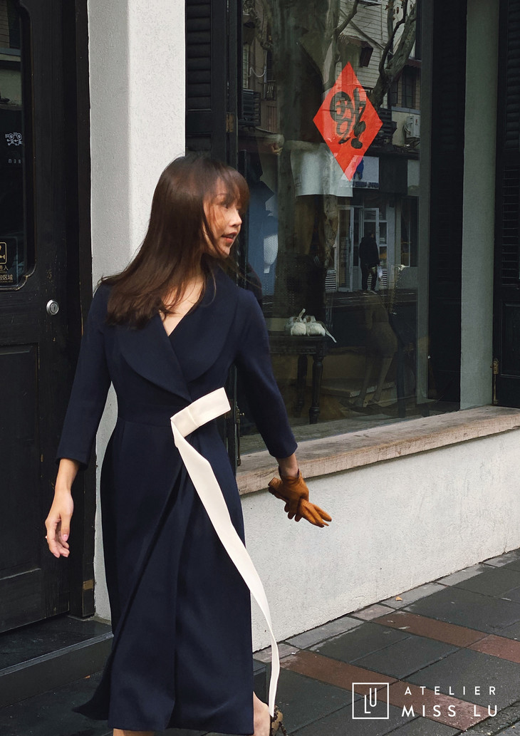 AtelierMissLu /Victoria-优雅藏青色系带翻领外套/00142 13