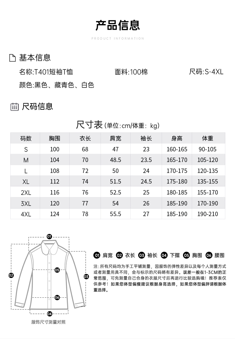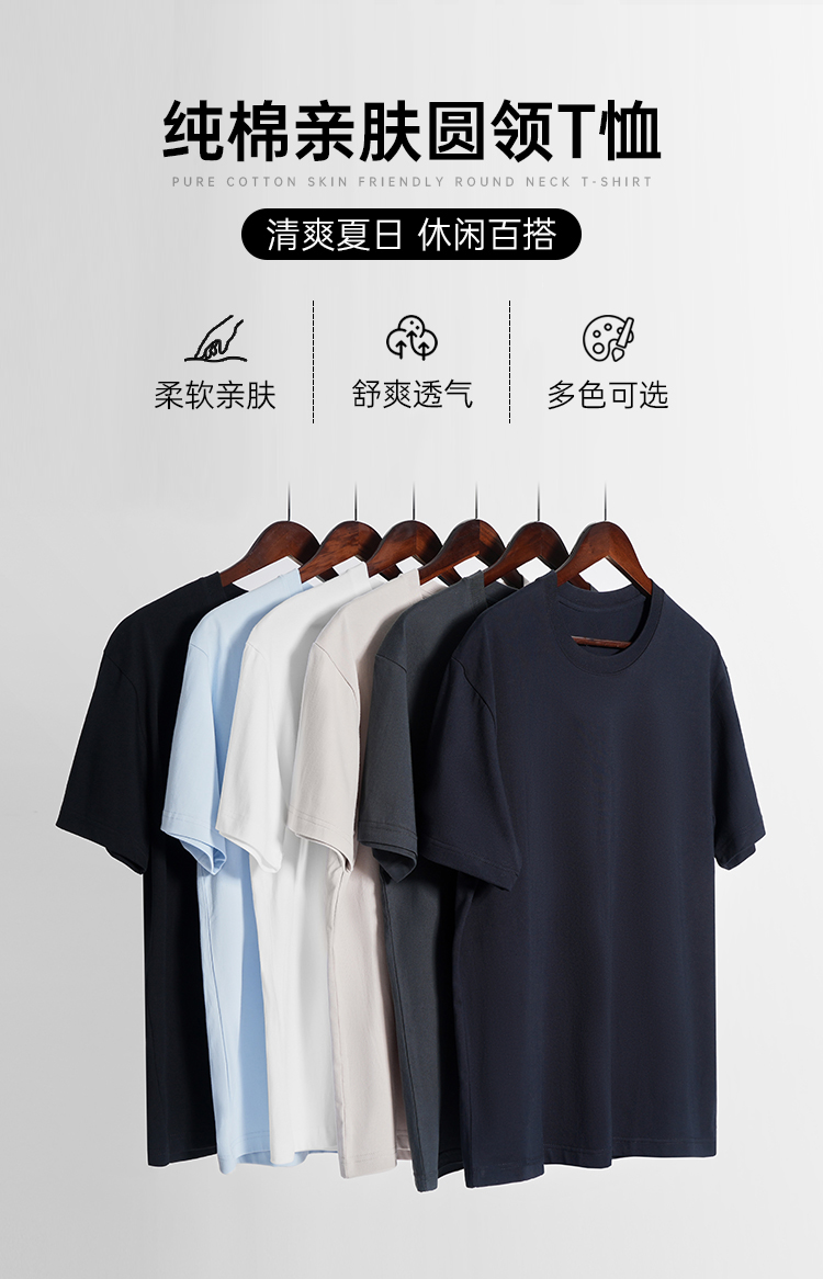 【纯棉圆领短袖T恤】通勤宽松短袖休闲运动半袖T401