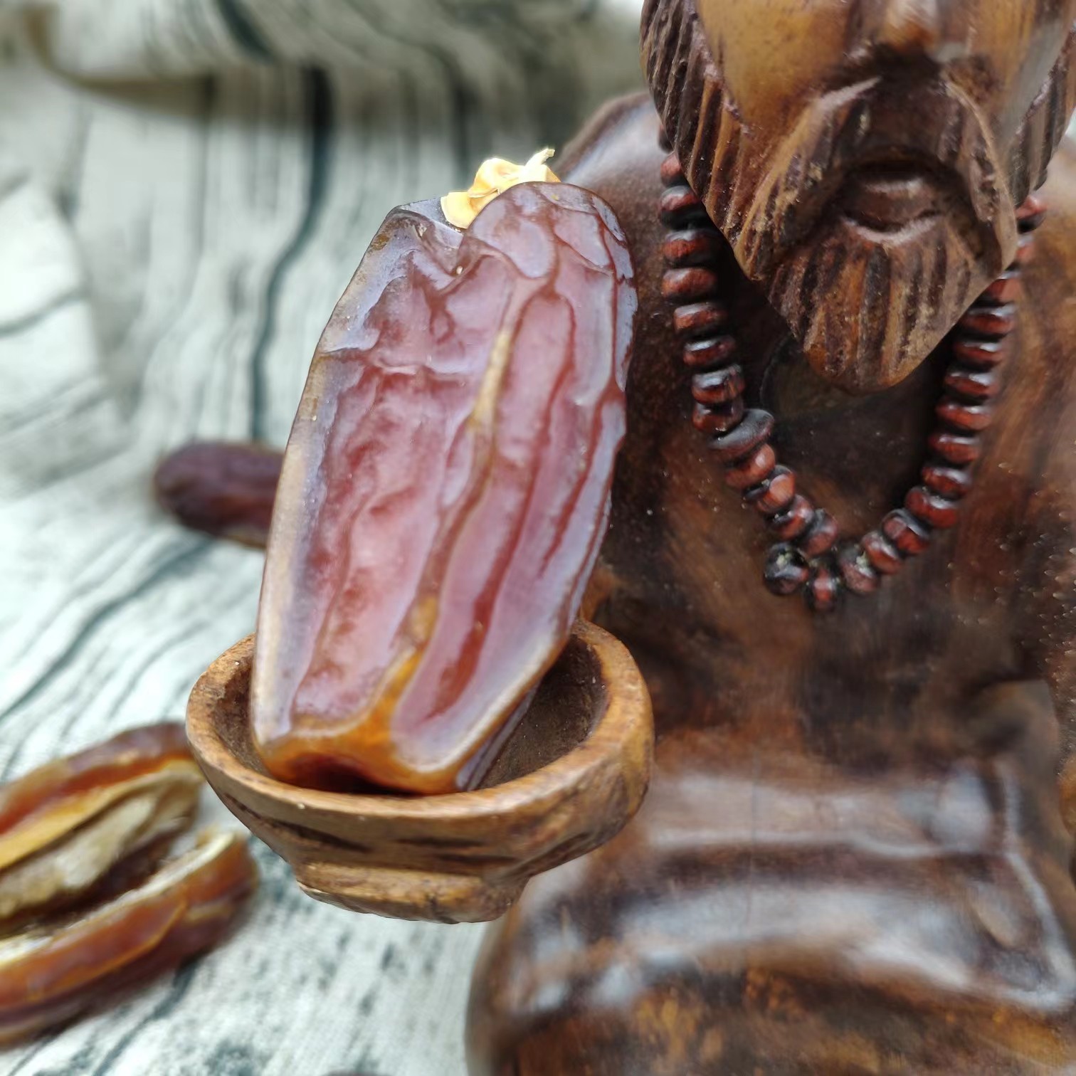 吃起来口感也大不同,风干后的椰枣口感紧实,但肉质软糯细腻,可直接食用,也可以煮粥,做汤,做甜点。