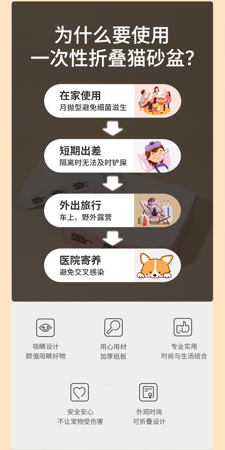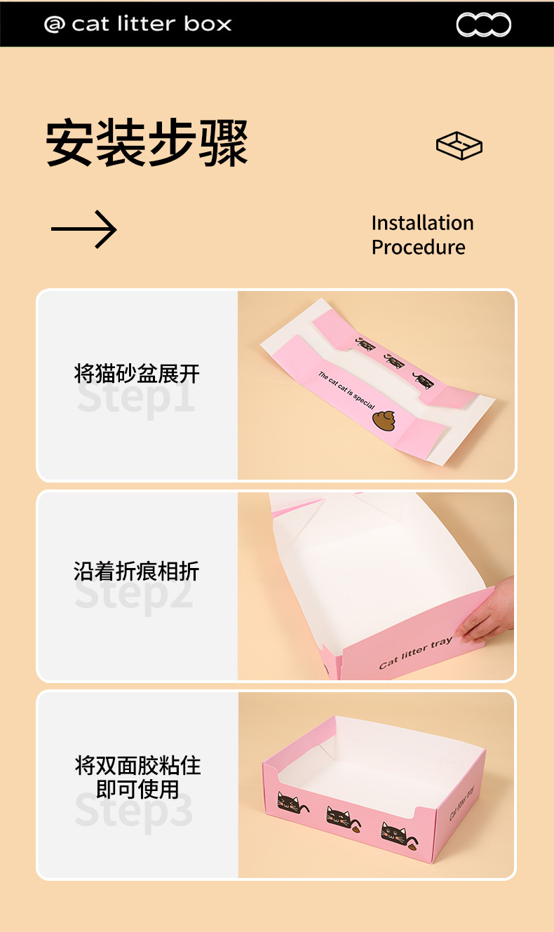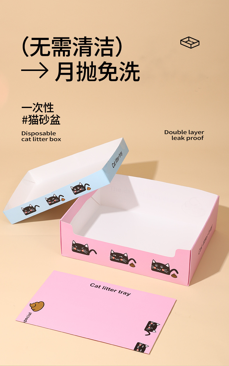 一次性月抛猫砂盆免洗 外出便携 可折叠环保纸质猫厕所批发【无猫砂铲】