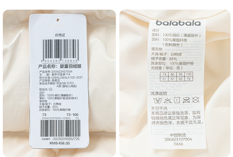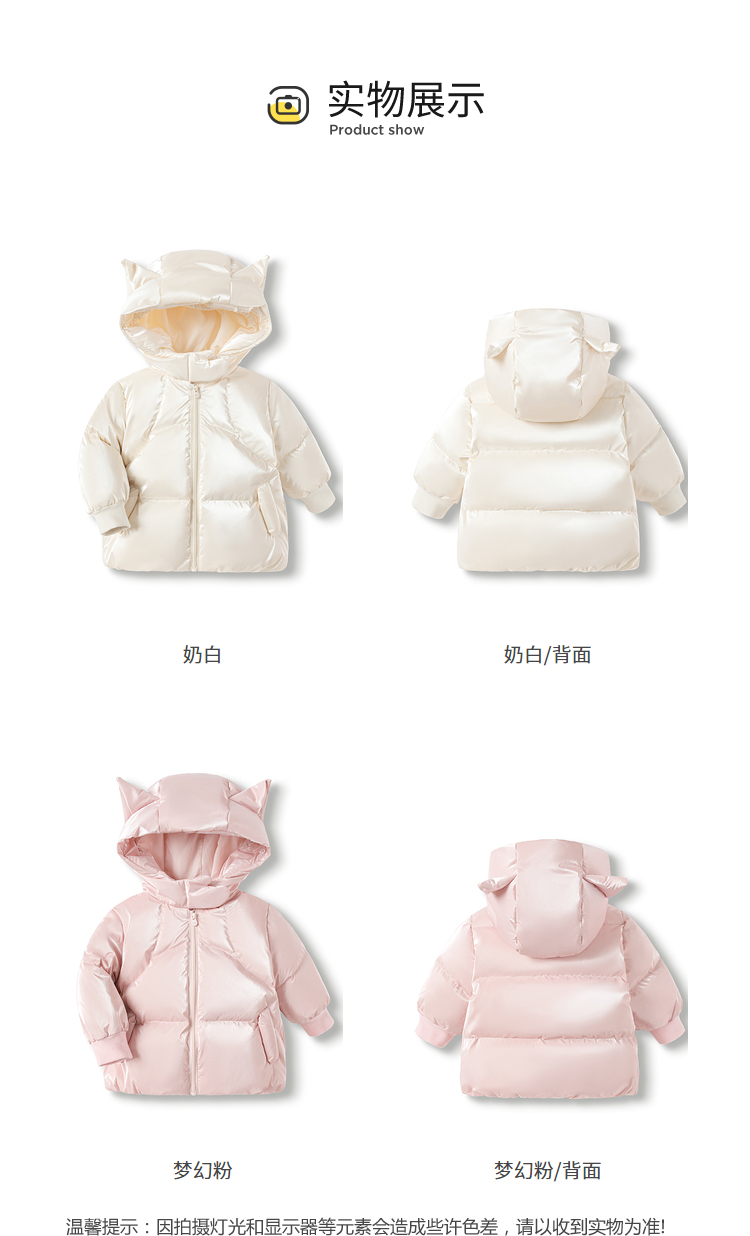 巴拉巴拉宝宝羽绒服童装婴儿秋冬女童外套造型时尚洋气保暖可爱萌