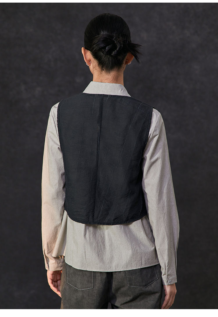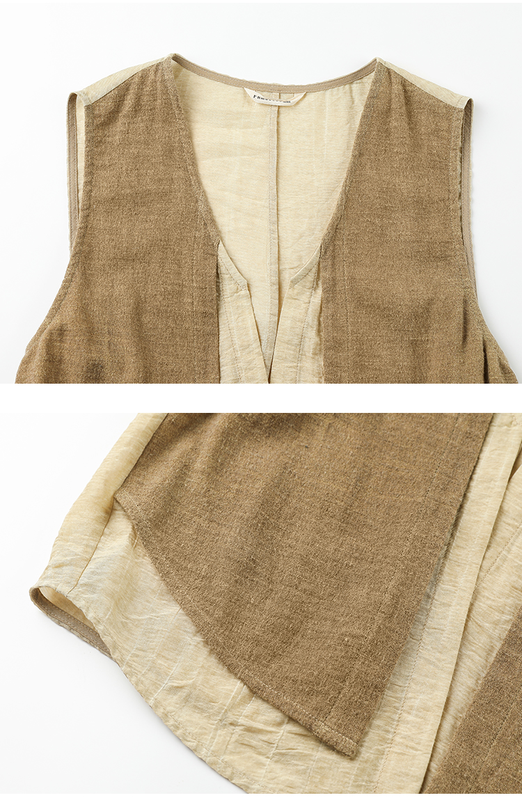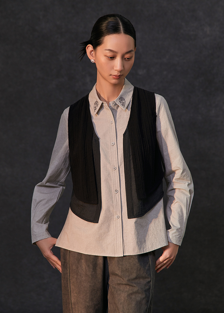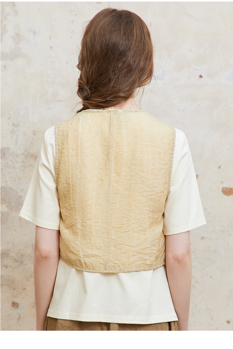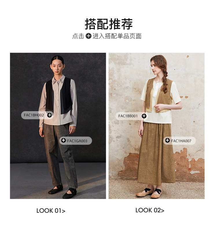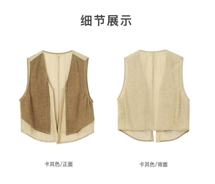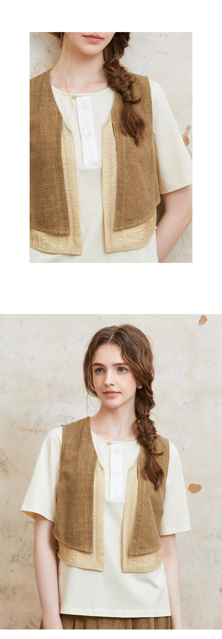 Famecoco范可儿假两件短款叠穿马夹女士复古开衫马甲FAC1CA004