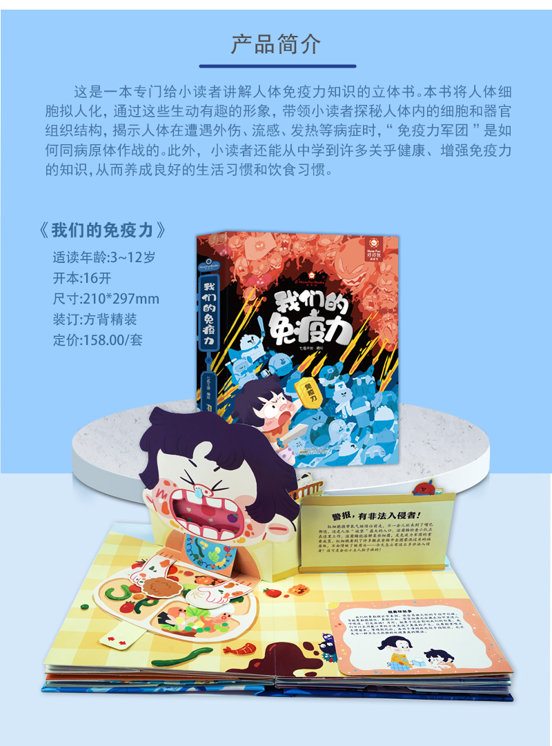 这是一本专门给小读者讲解人体免疫力知识的立体书。本书将人体