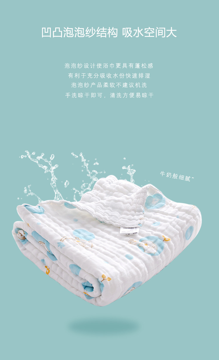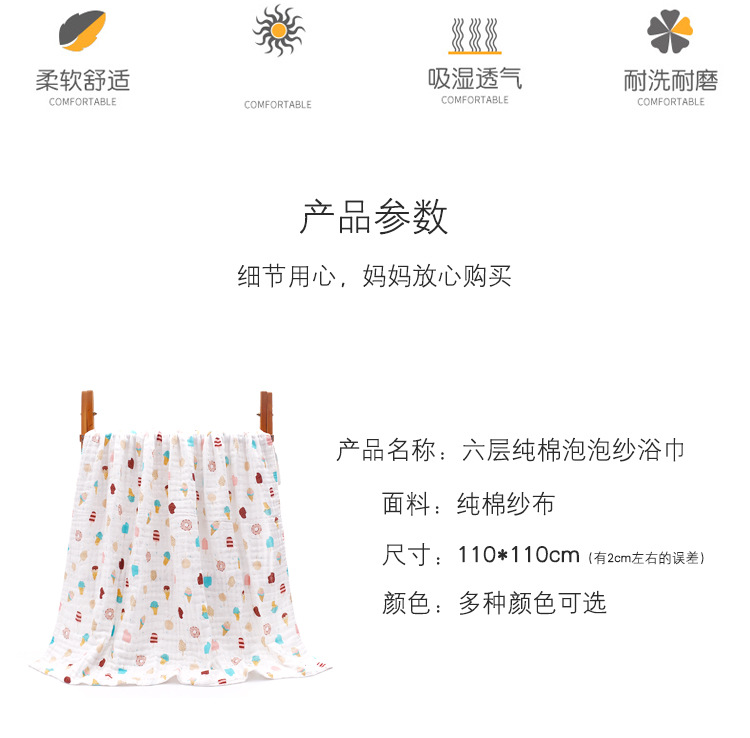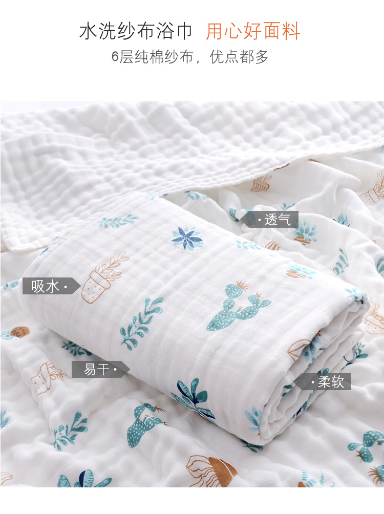 A类景慕儿童6层纱布泡泡棉纱布浴巾盖毯幼儿园盖被夏季