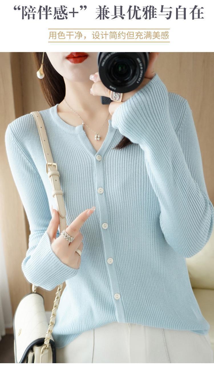 2023秋冬新款韩版针织开衫显瘦打底衫毛衣圆领针织外套
