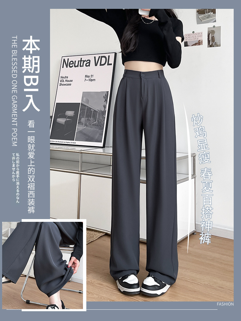 高级感西装裤女春夏 | 新款高腰垂感宽松休闲直筒拖地阔腿裤