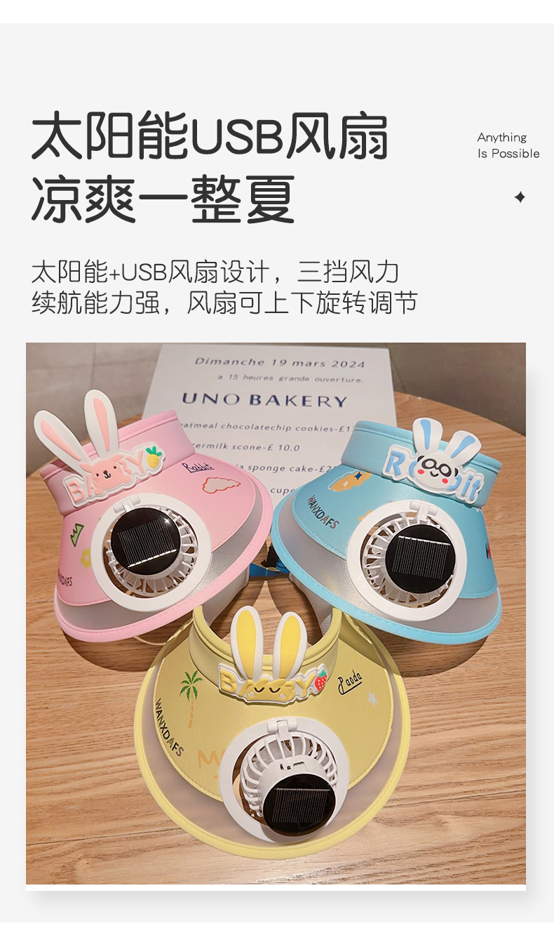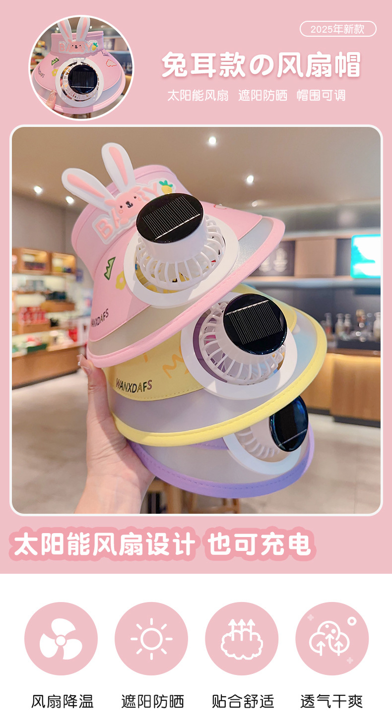 【49元起2顶!单拍不发货】儿童帽子太阳能USB两用充电风扇 大檐防晒长续航空顶帽子