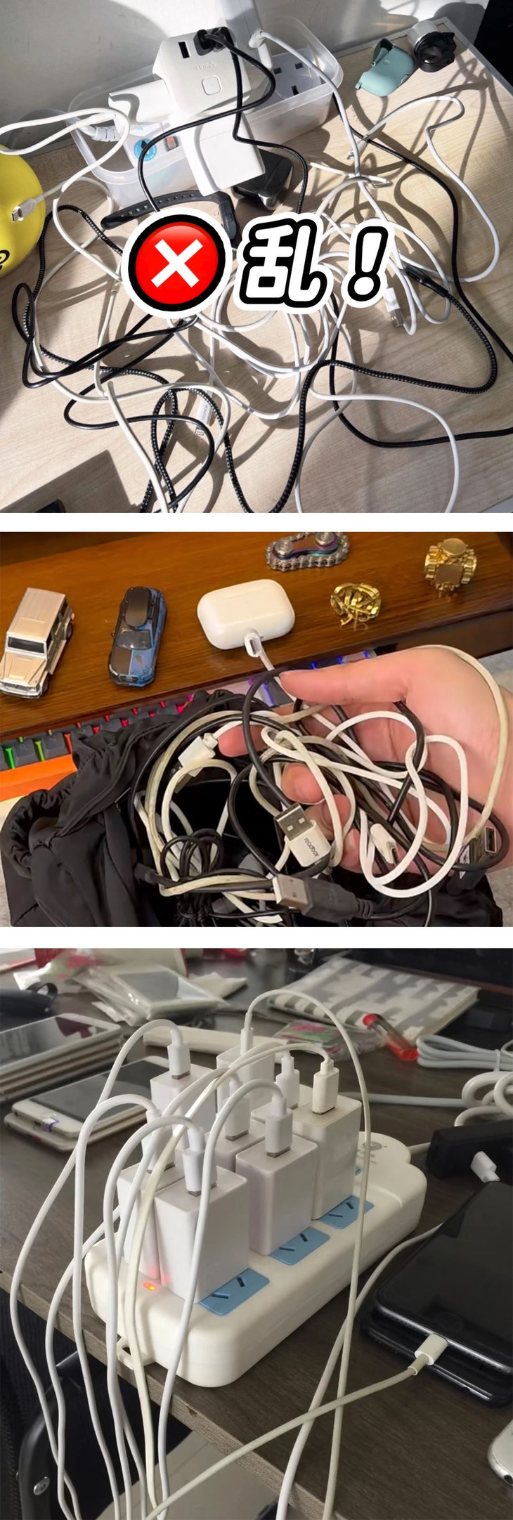 👀数码控,手机、平板、耳机样样不离身📱💻🎧 关键时刻找不到适配的充电线,急得直跺脚🥹 ⚠但...普通数据线接口单一,苹果安卓设备切换时容易手忙脚乱 ⚠传统长线又笨又乱,桌面缠成"毛线团",收纳整理耗时又耗力 ⚠出差旅行带一堆充电线,占空间还容易丢,关键时刻总掉链子 ⚠快充线不够长,床头充电够不着,边充边用姿势别扭到崩溃...