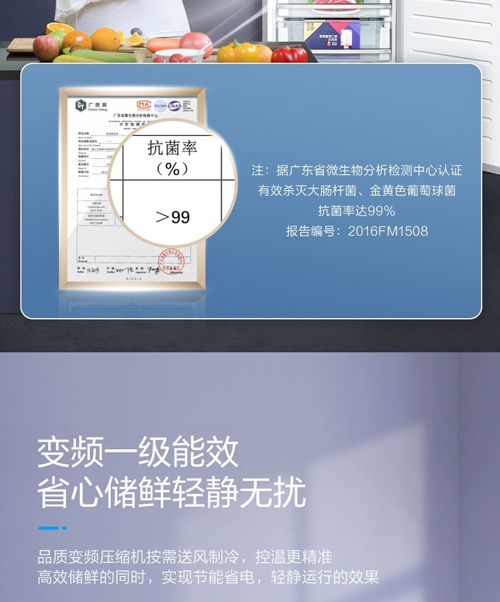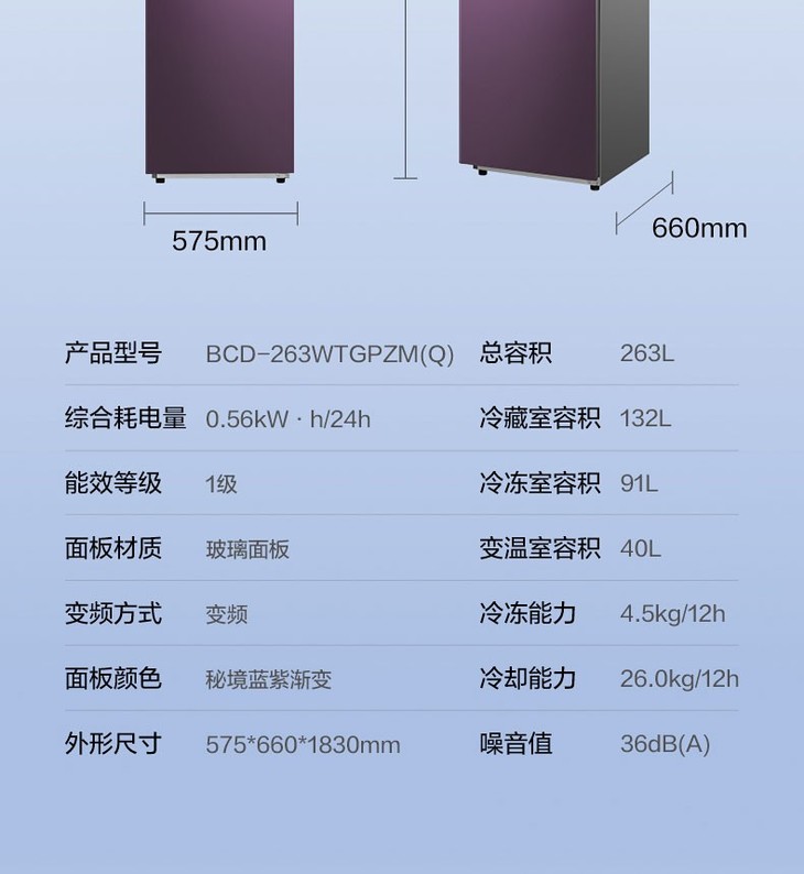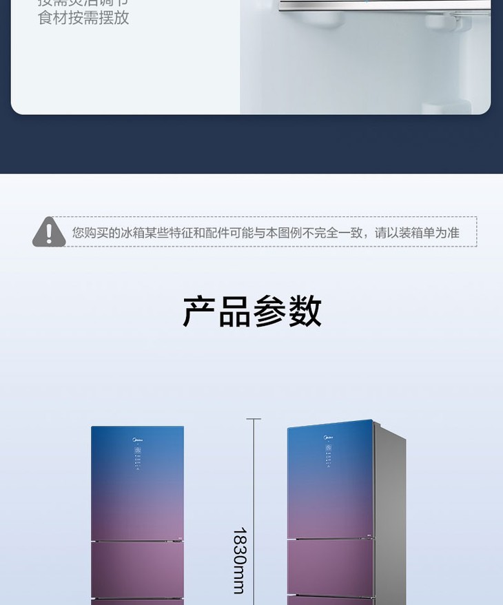 美的(Midea)263升电冰箱一级能效双变频智能家电BCD-263WTGPZM(Q)