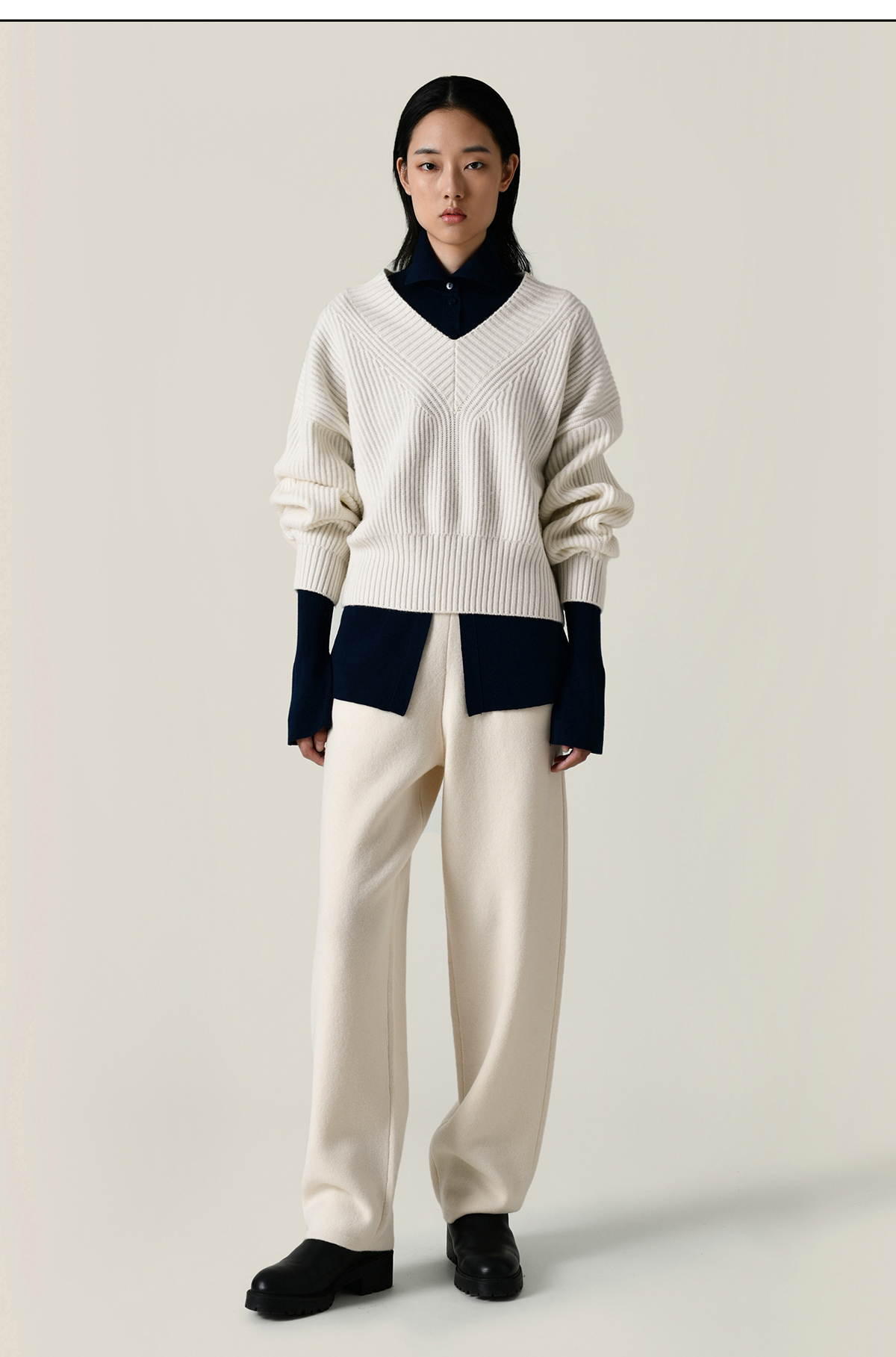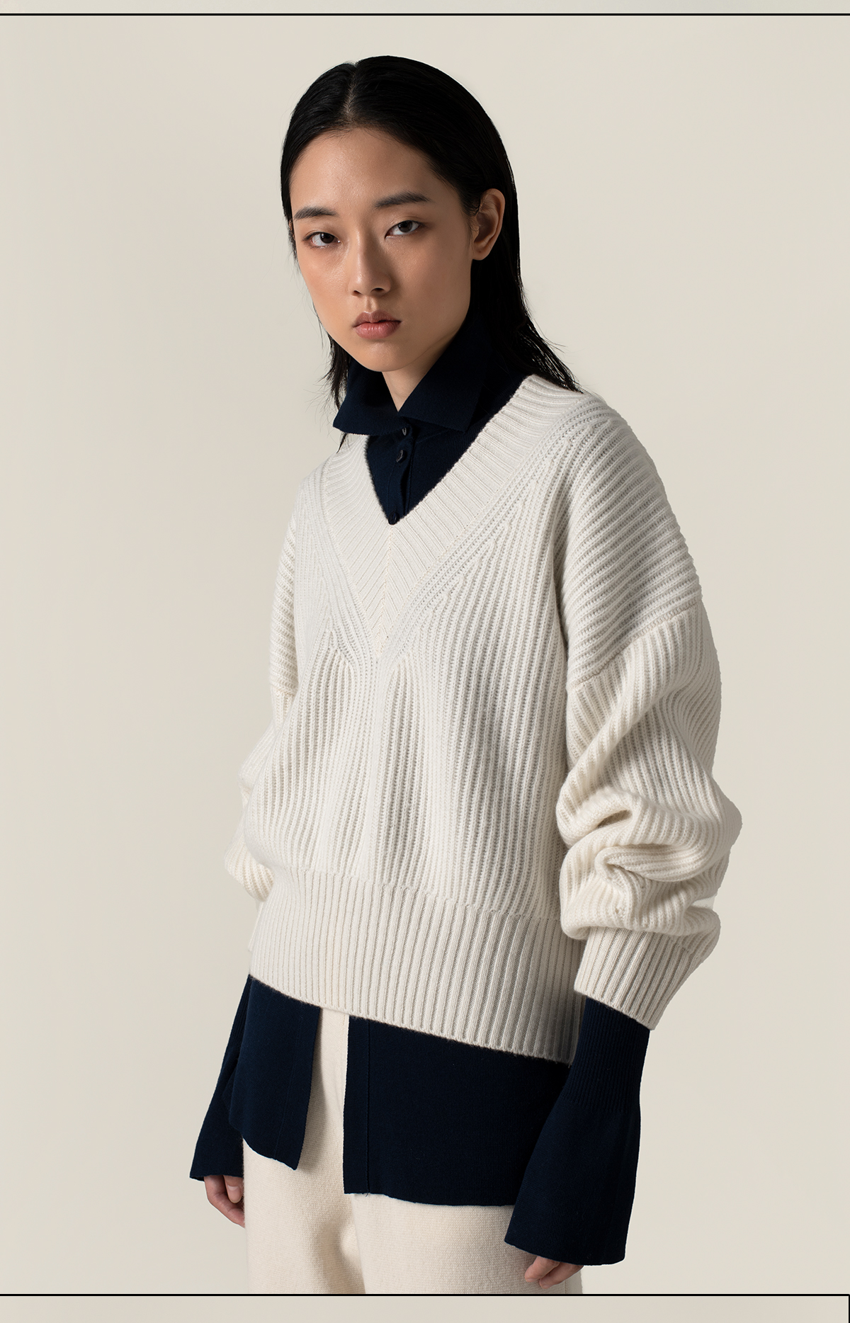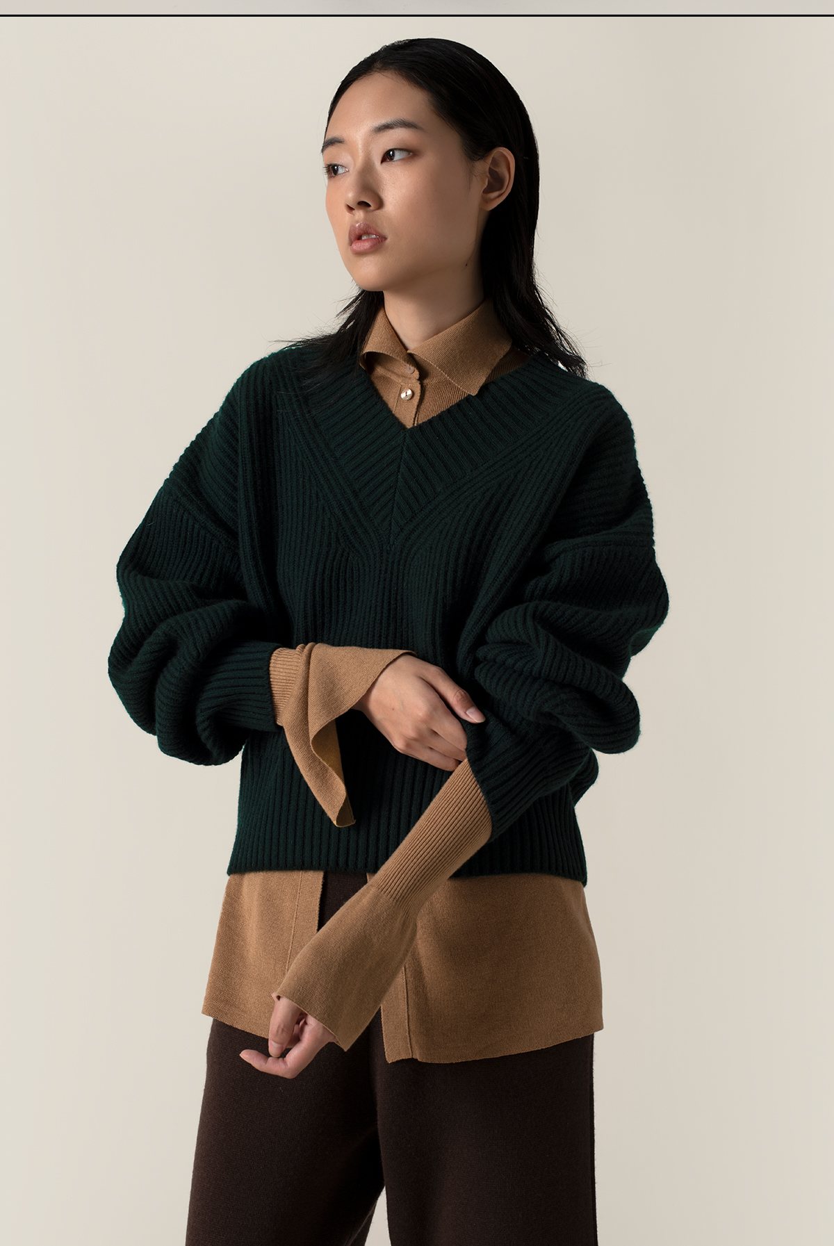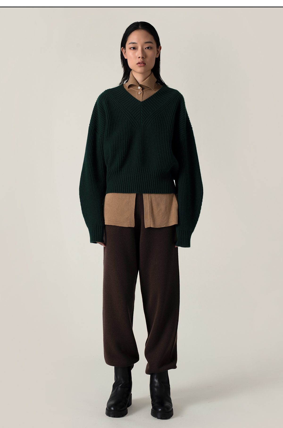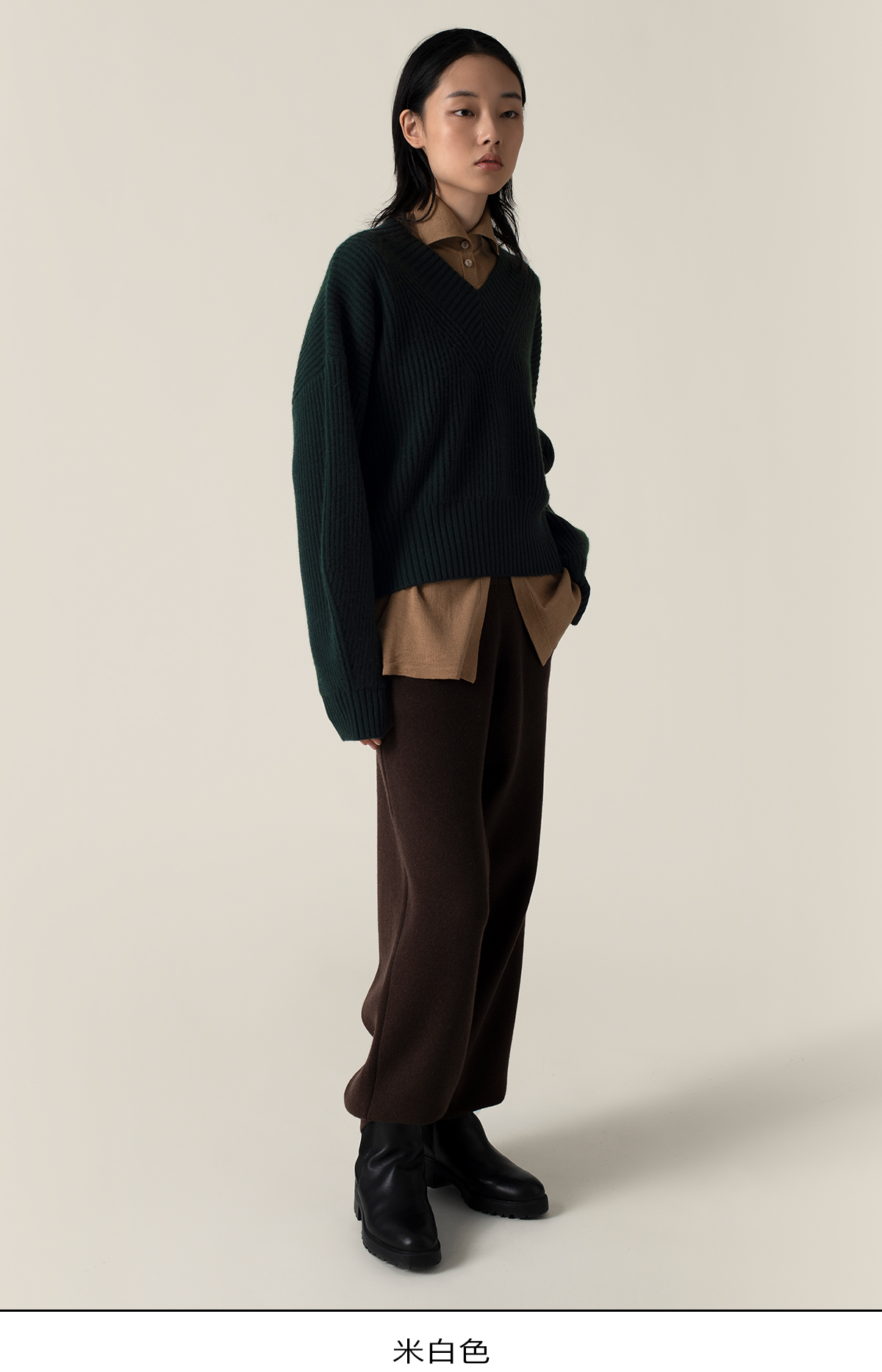 322工房再造经典加厚纯羊绒衫2022新款宽松保暖V领针织套头衫A951