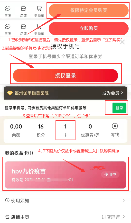 页面出现下方“特定会员购买”,请用收到到苗短信提醒的手机号授权登录,只有收到到苗短信的用户才可以购买。