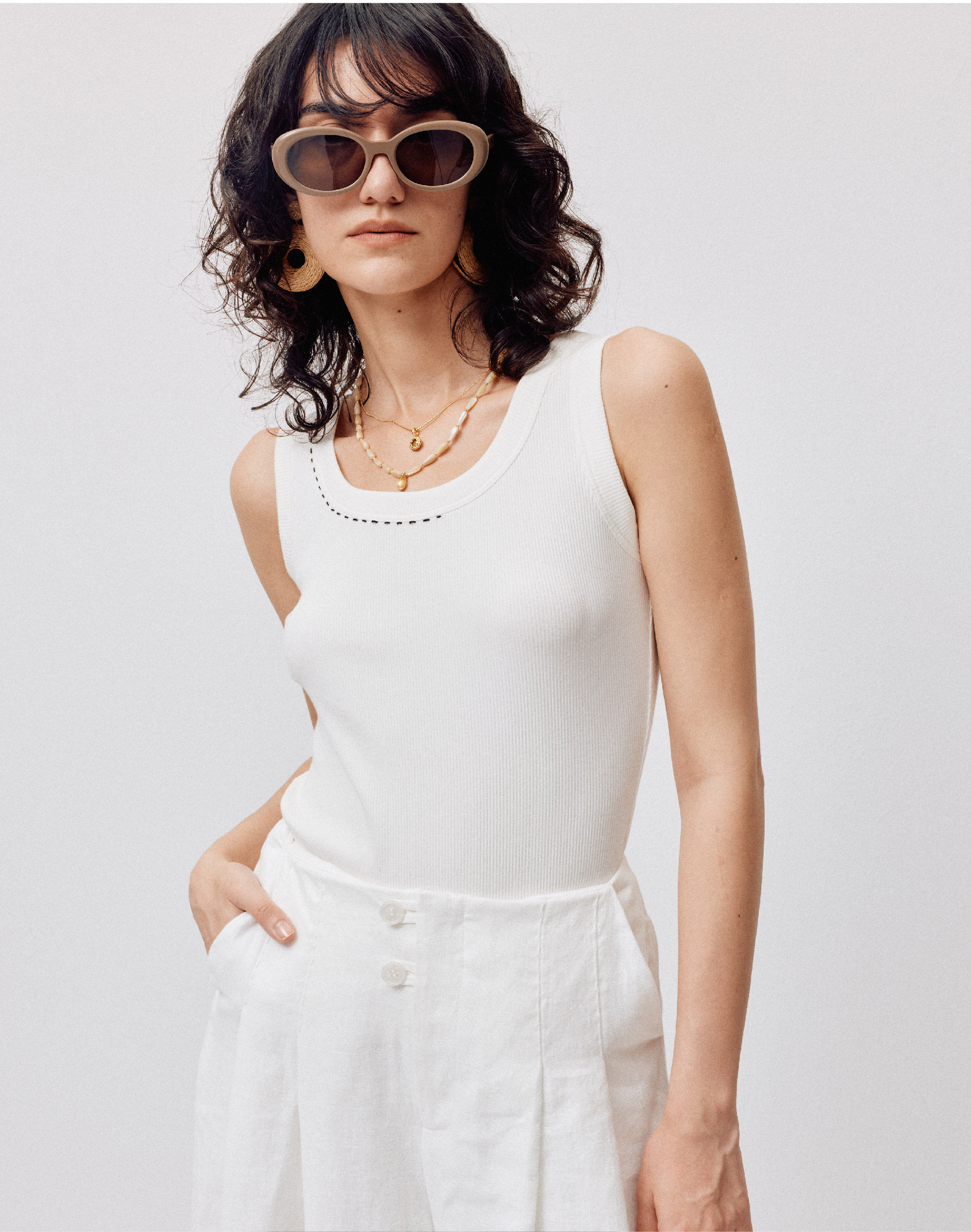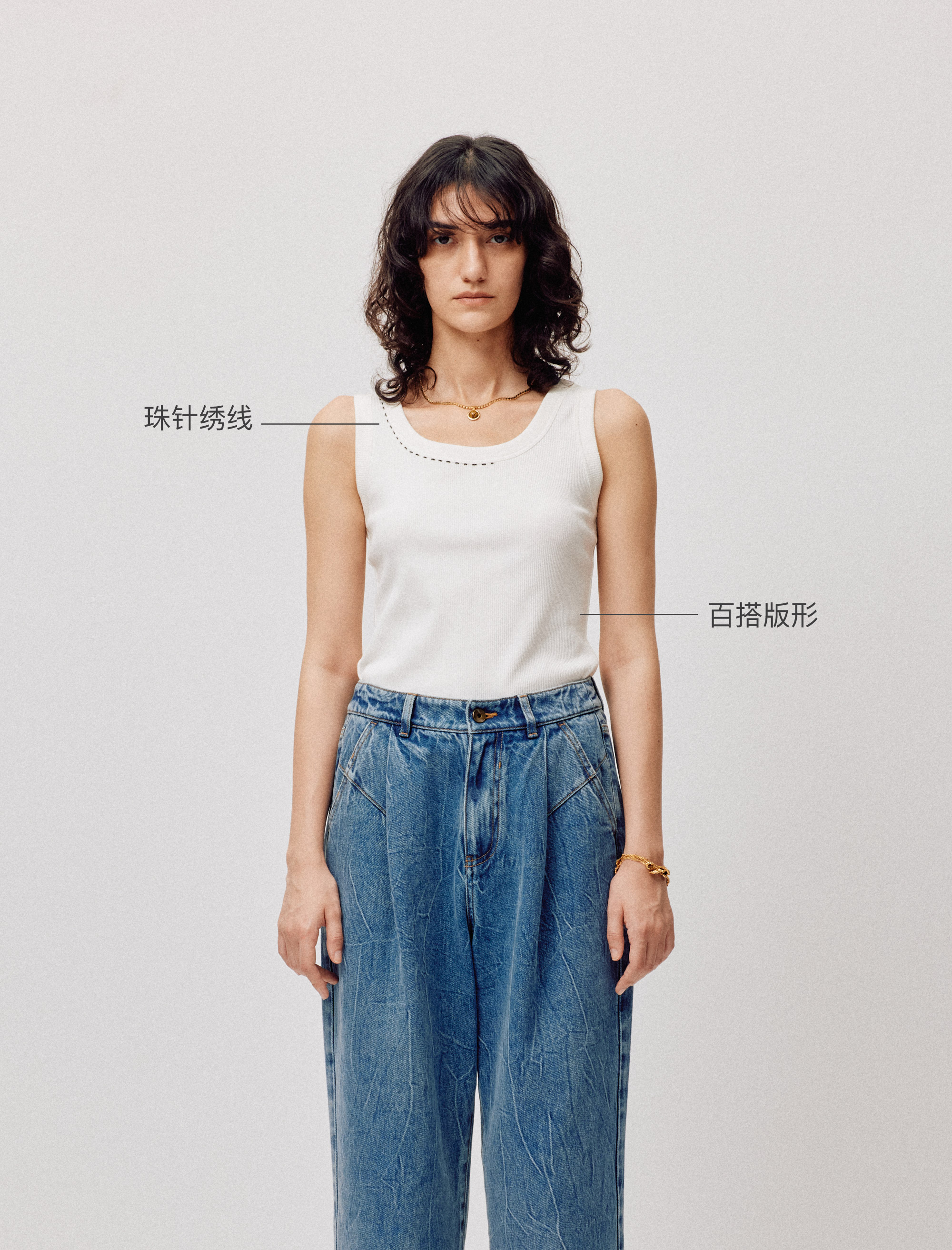 LIYIHAN序章丨25春新款珠针线背心女圆领吊带百搭上衣简约舒适