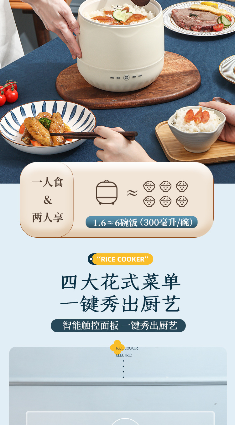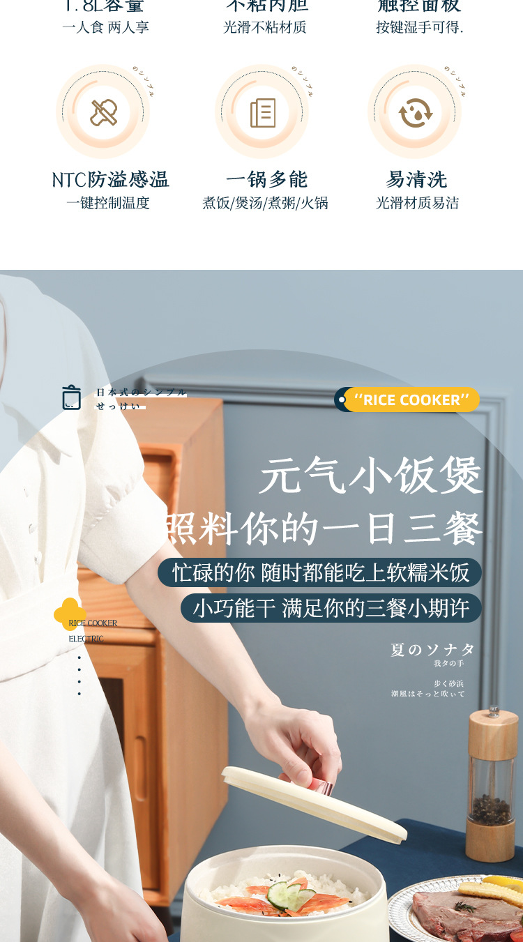 【元气小饭煲!多功能小型电饭煲】 宿舍家用煮粥煲汤电煮锅,不粘锅迷你电饭煲。一锅多用,轻松烹饪, 智能控温技术,自动保温,可拆卸内胆设计,方便清洗,解决了忙碌生活中的饮食问题。健康