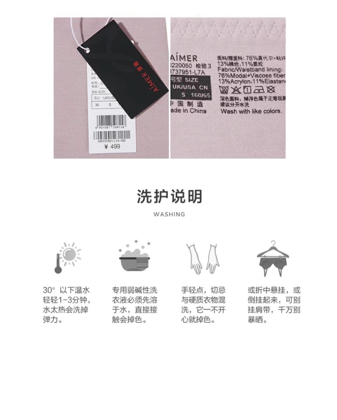 面料:76%莫代尔+粘纤13%腈纶11%氨纶