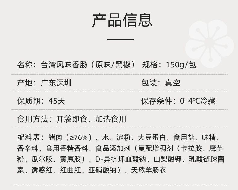 台湾风味香肠(原味/黑椒)150g/包
