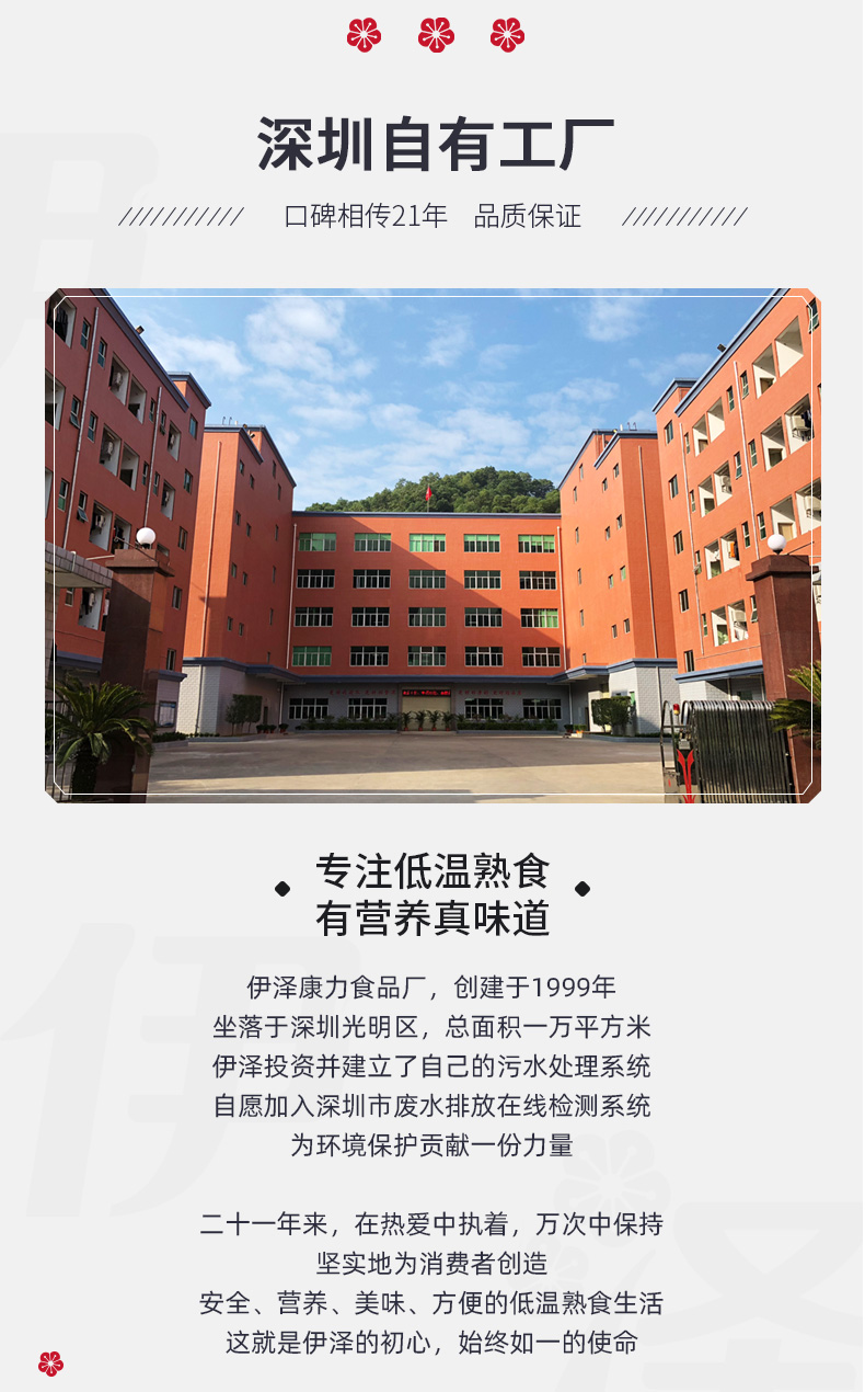 欢迎关注伊泽熟食,我们20年来坚守优择食材,低温煮制,躬心酱制,营养益食,成就一家集酱卤、盐焗、滋味、香肠、火腿、丸子六大类近百种深圳本土肉制品加工企业。