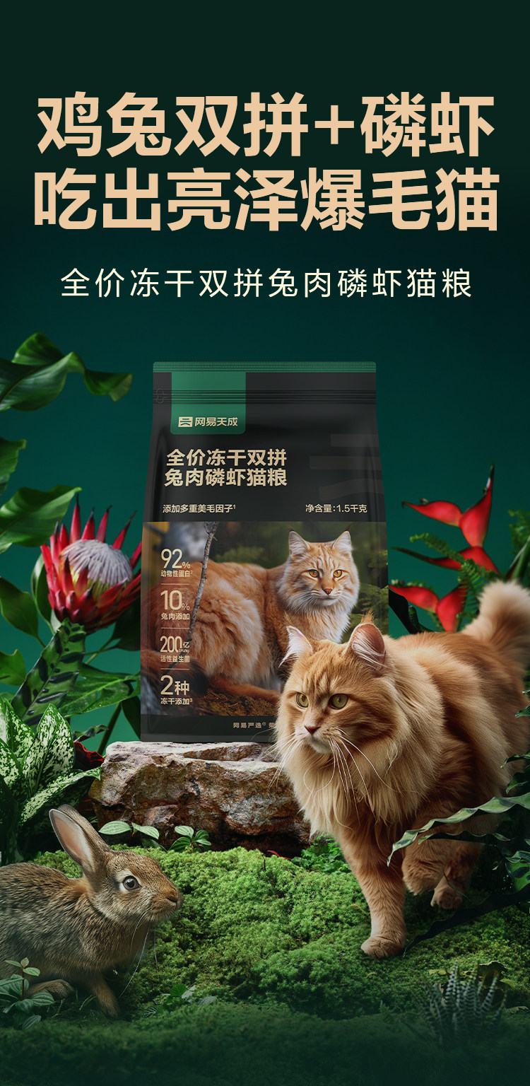 网易天成猫粮20斤实惠装1.5kg可选兔肉磷虾双拼猫粮严选官方正品
