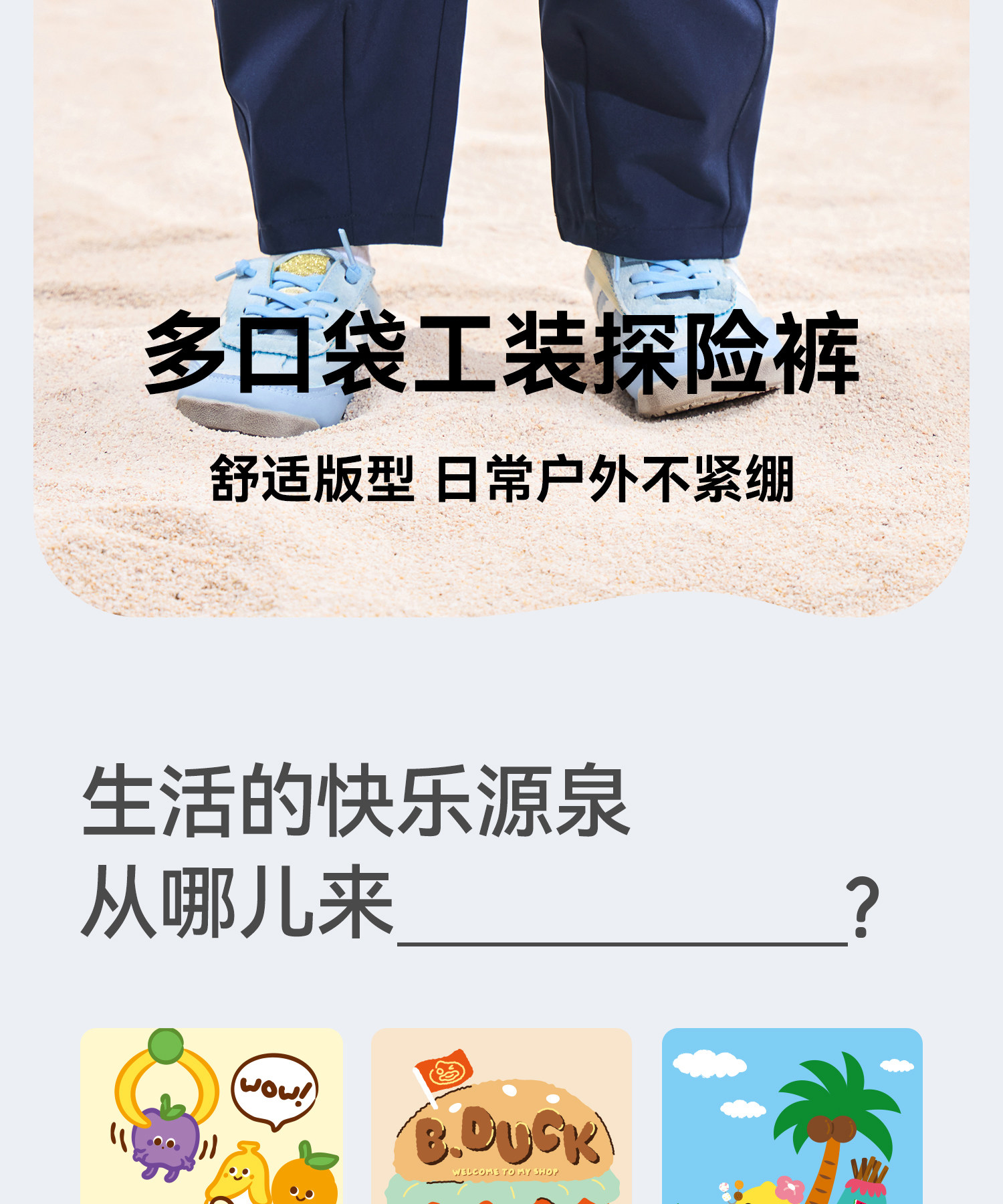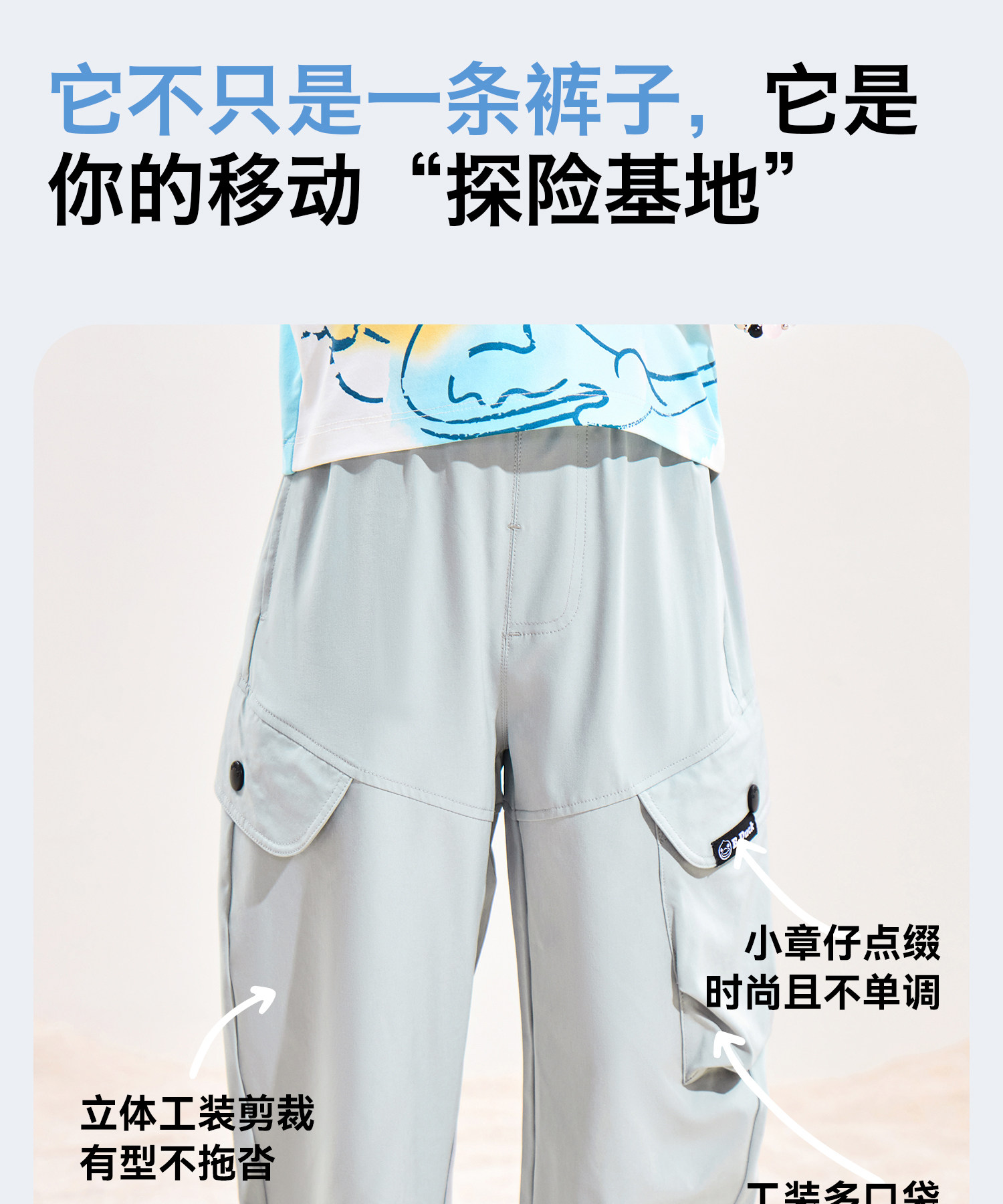 bduck小黄鸭童装男童裤子防蚊裤夏季薄款儿童工装裤中小童长裤子90-150 BDF2757597