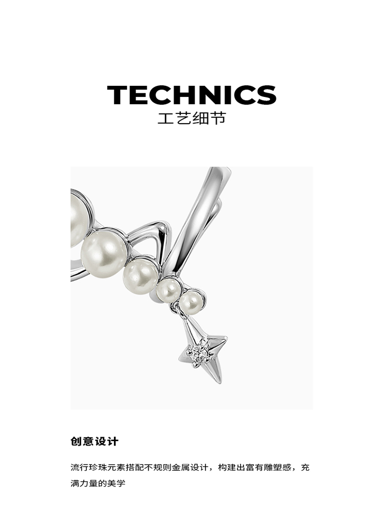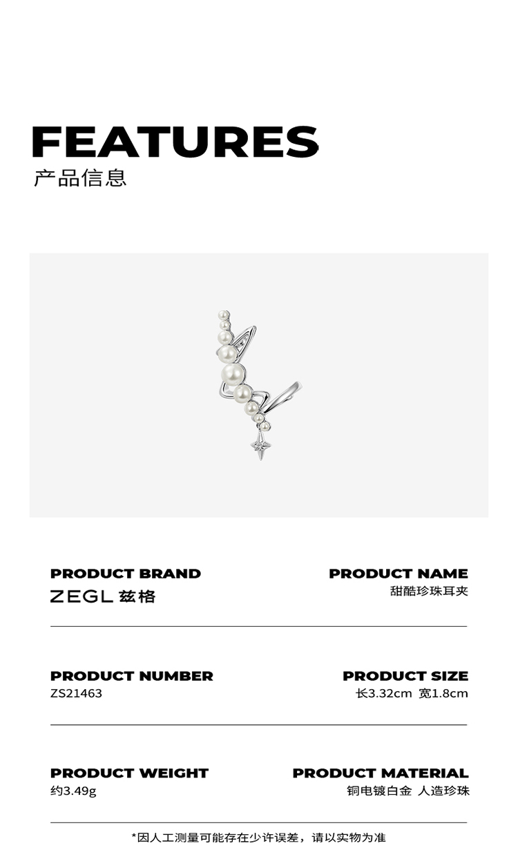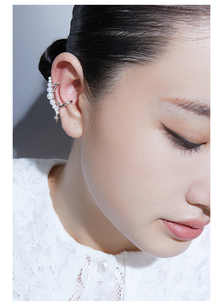 ZEGL设计师星星耳夹女无耳洞耳骨夹冷淡风人造珍珠耳环秋冬耳饰品