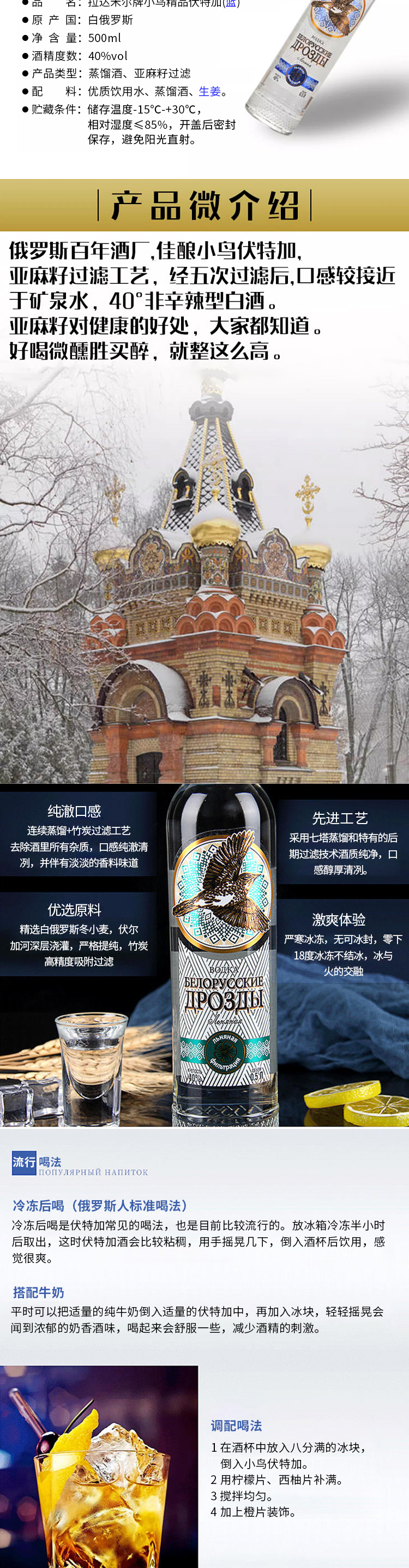 白俄罗斯进口拉达米尔牌小鸟伏特加500ml