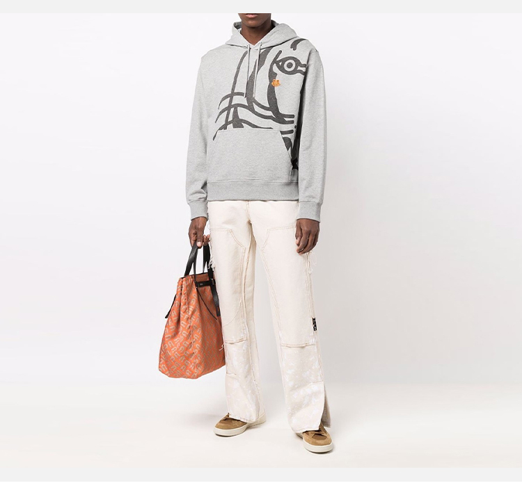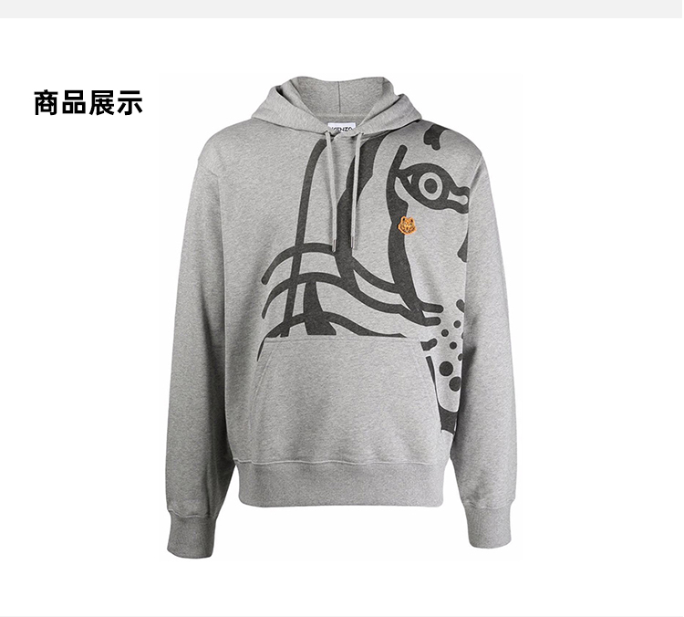 KENZO 高田贤三 男士棉质logo印花小虎头刺绣抽绳连帽卫衣 灰色 FB65 SW305 4MO 94