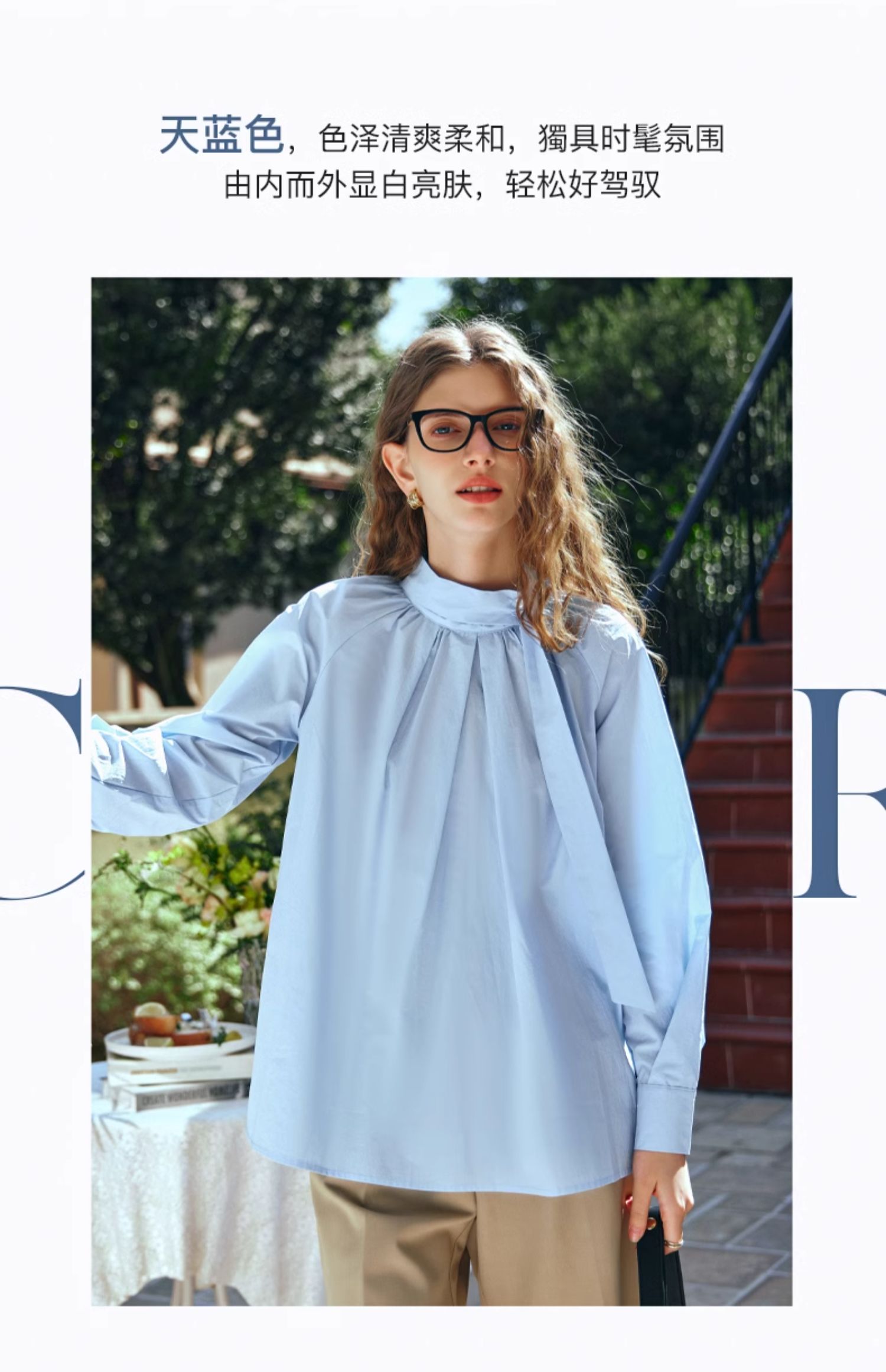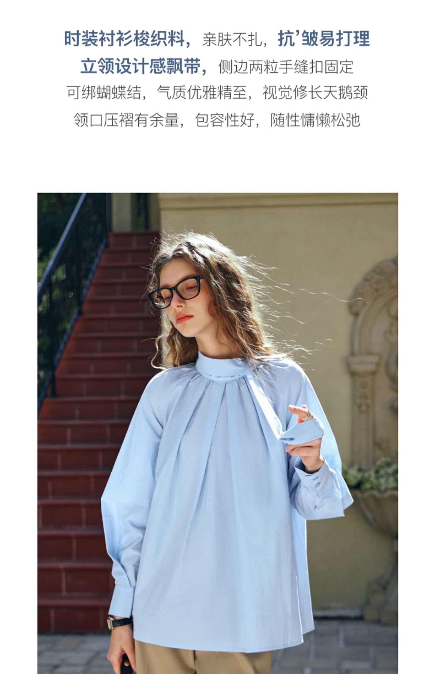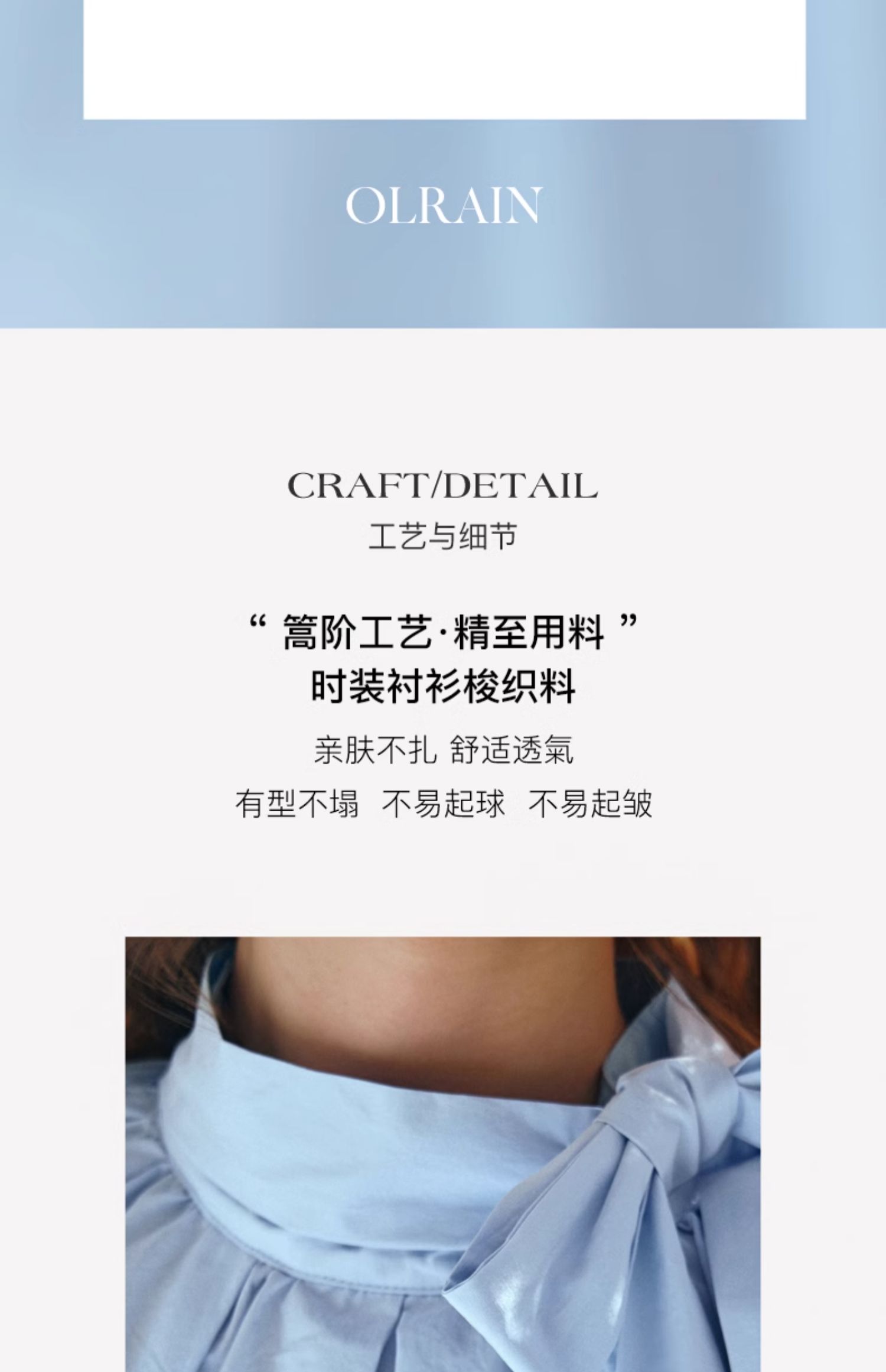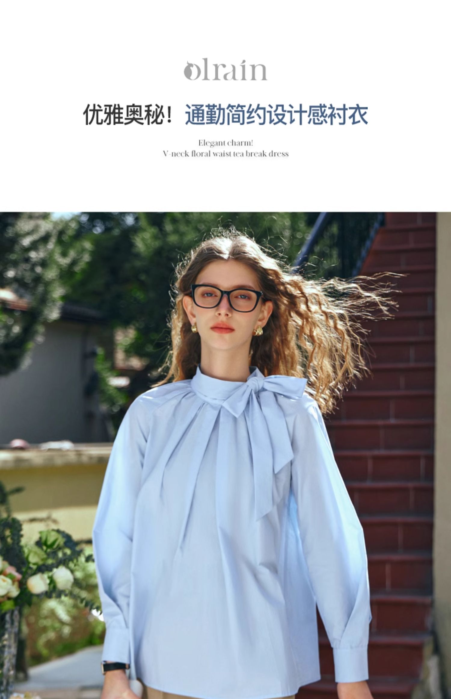 OLrain欧芮儿天蓝色衬衫女早春2024年新款宽松通勤简约设计感衬衣