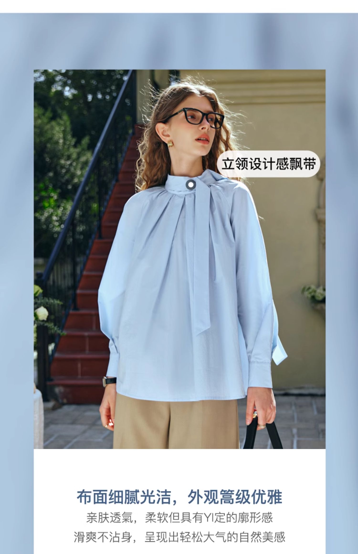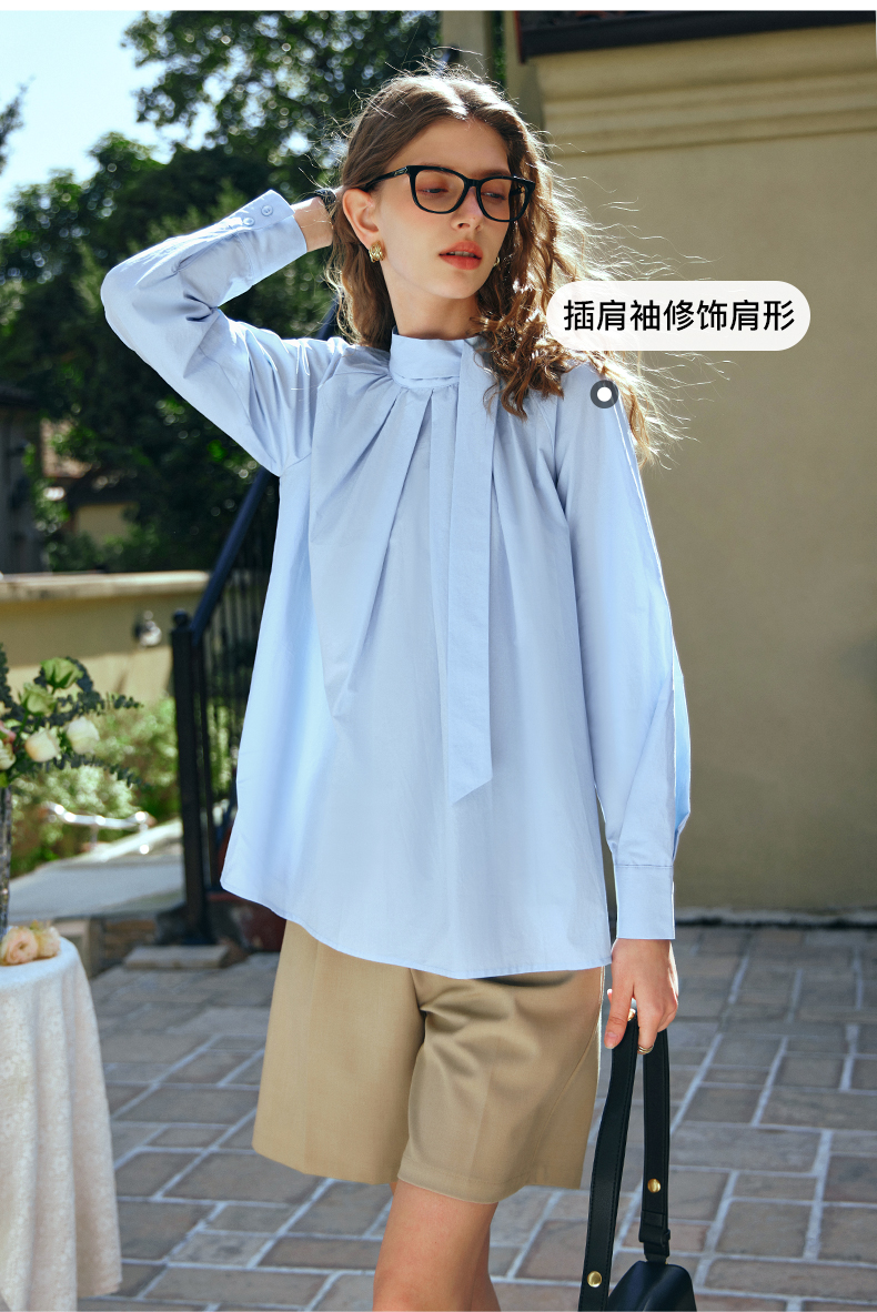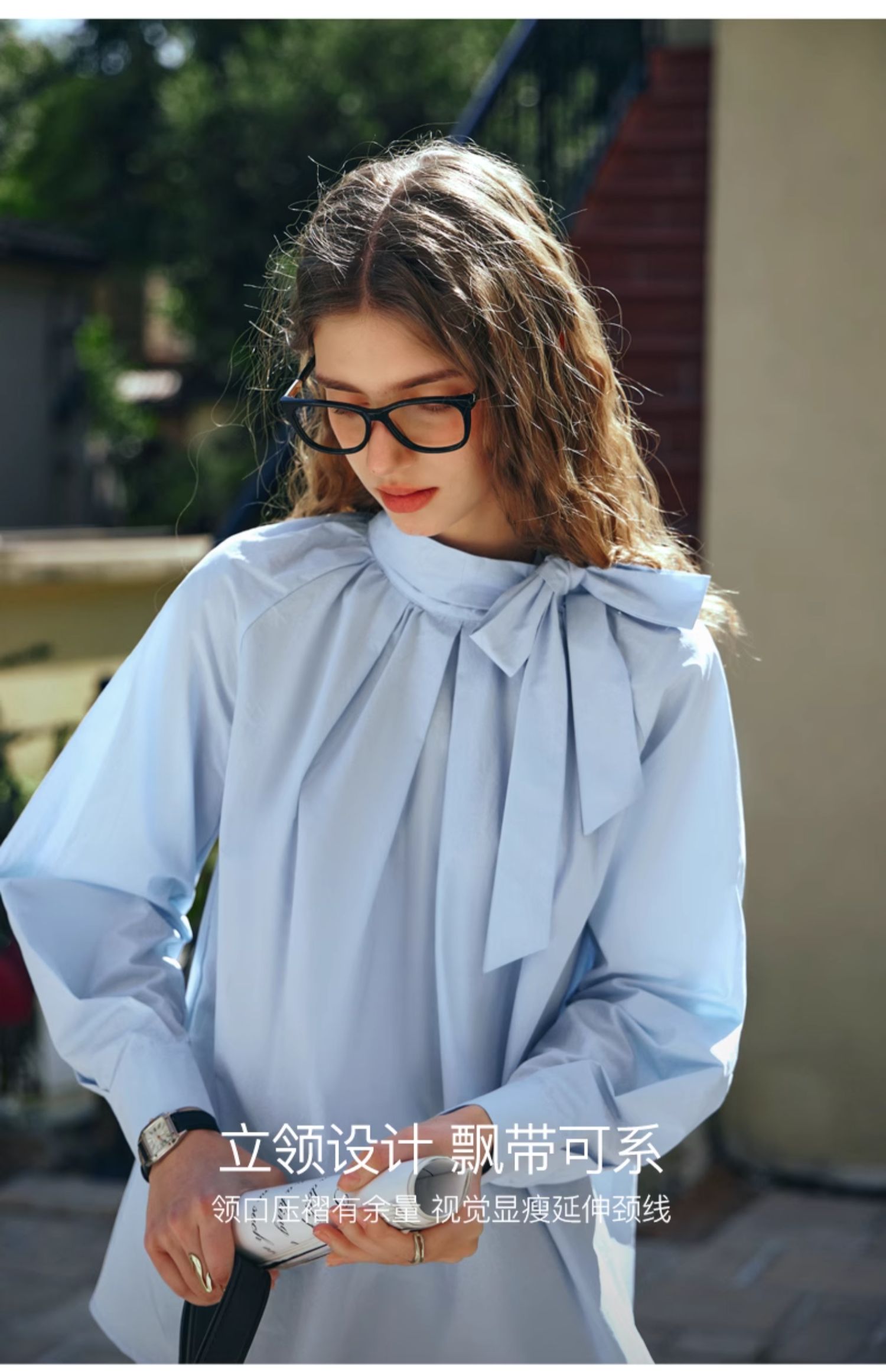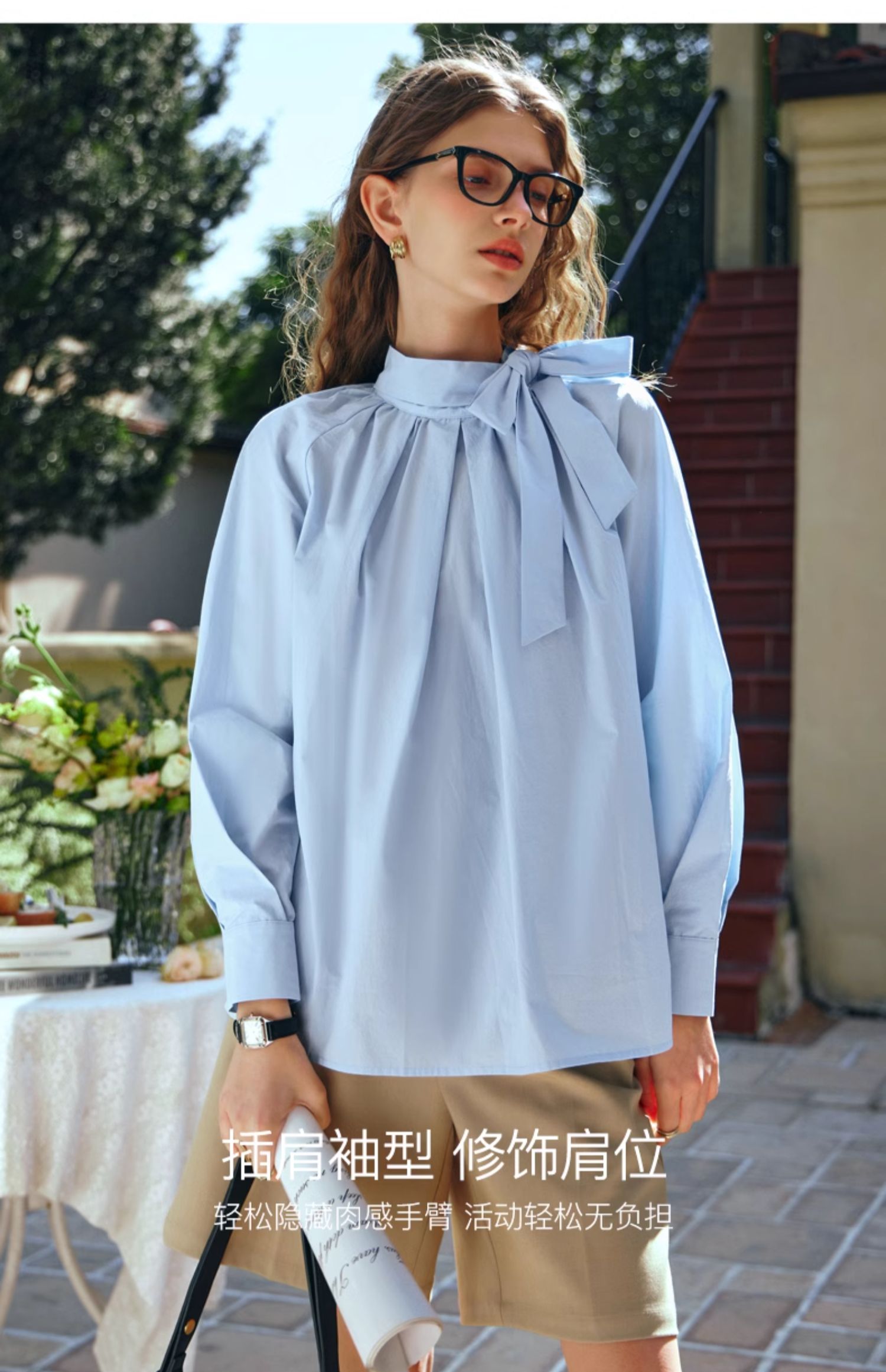 OLrain欧芮儿天蓝色衬衫女早春2024年新款宽松通勤简约设计感衬衣