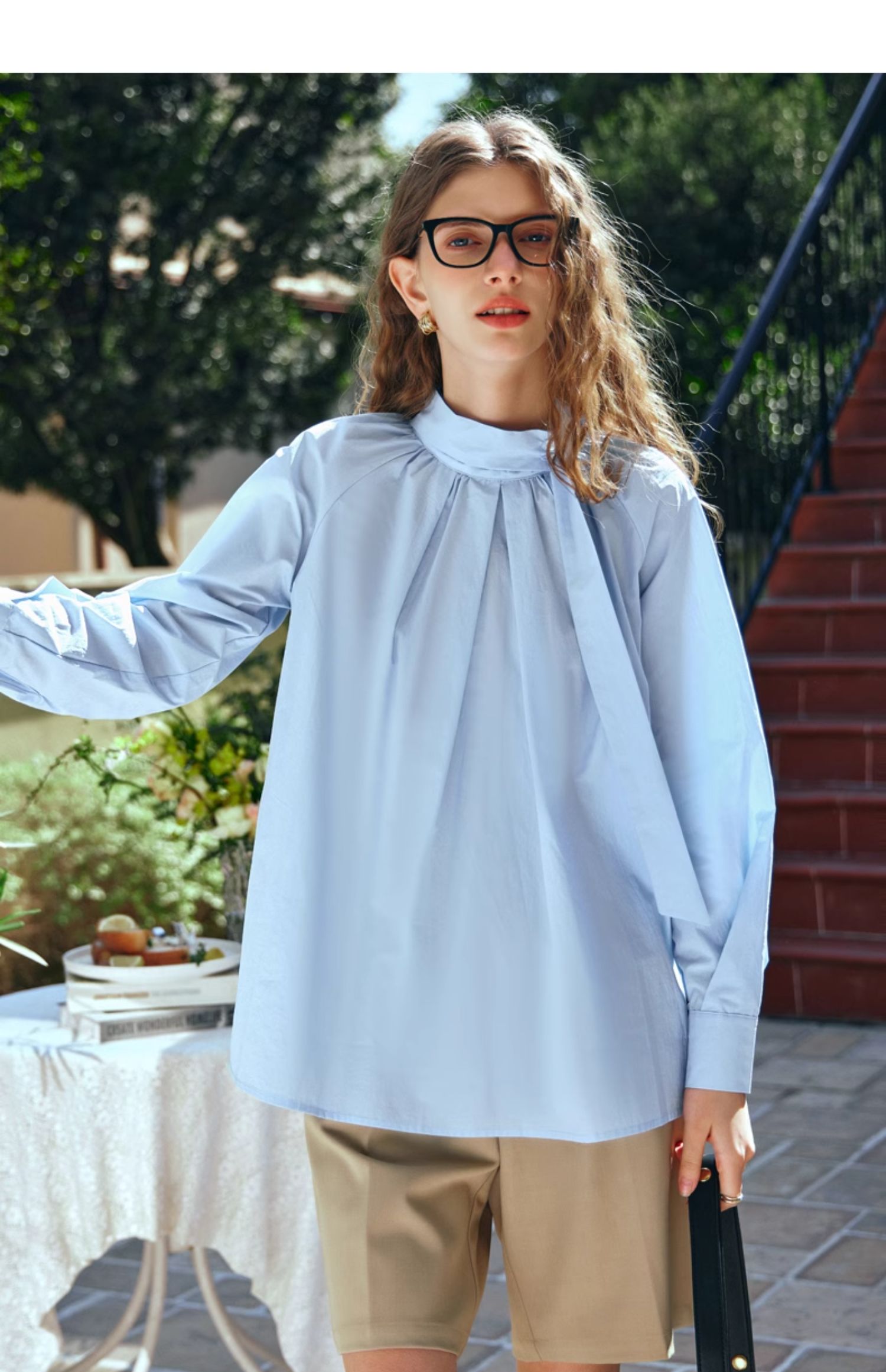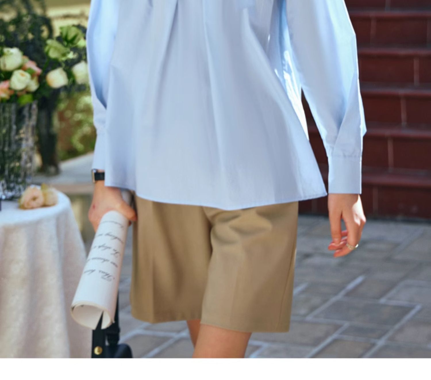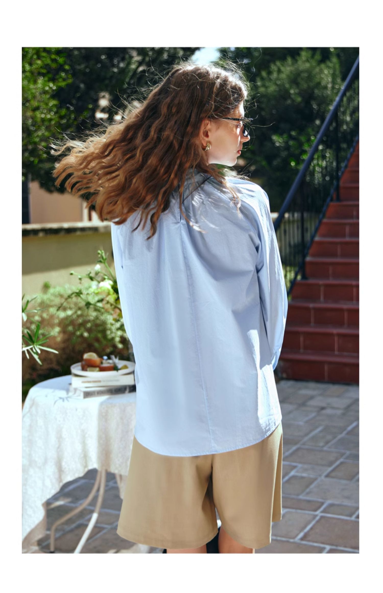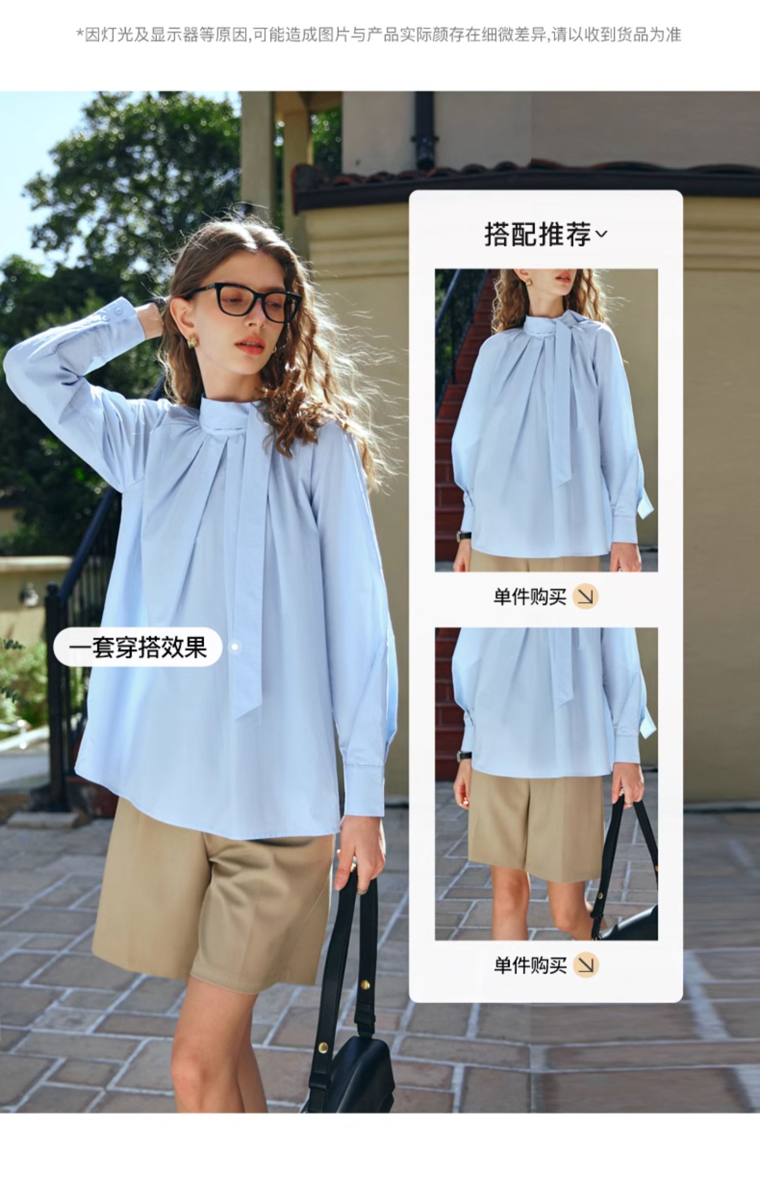 OLrain欧芮儿天蓝色衬衫女早春2024年新款宽松通勤简约设计感衬衣