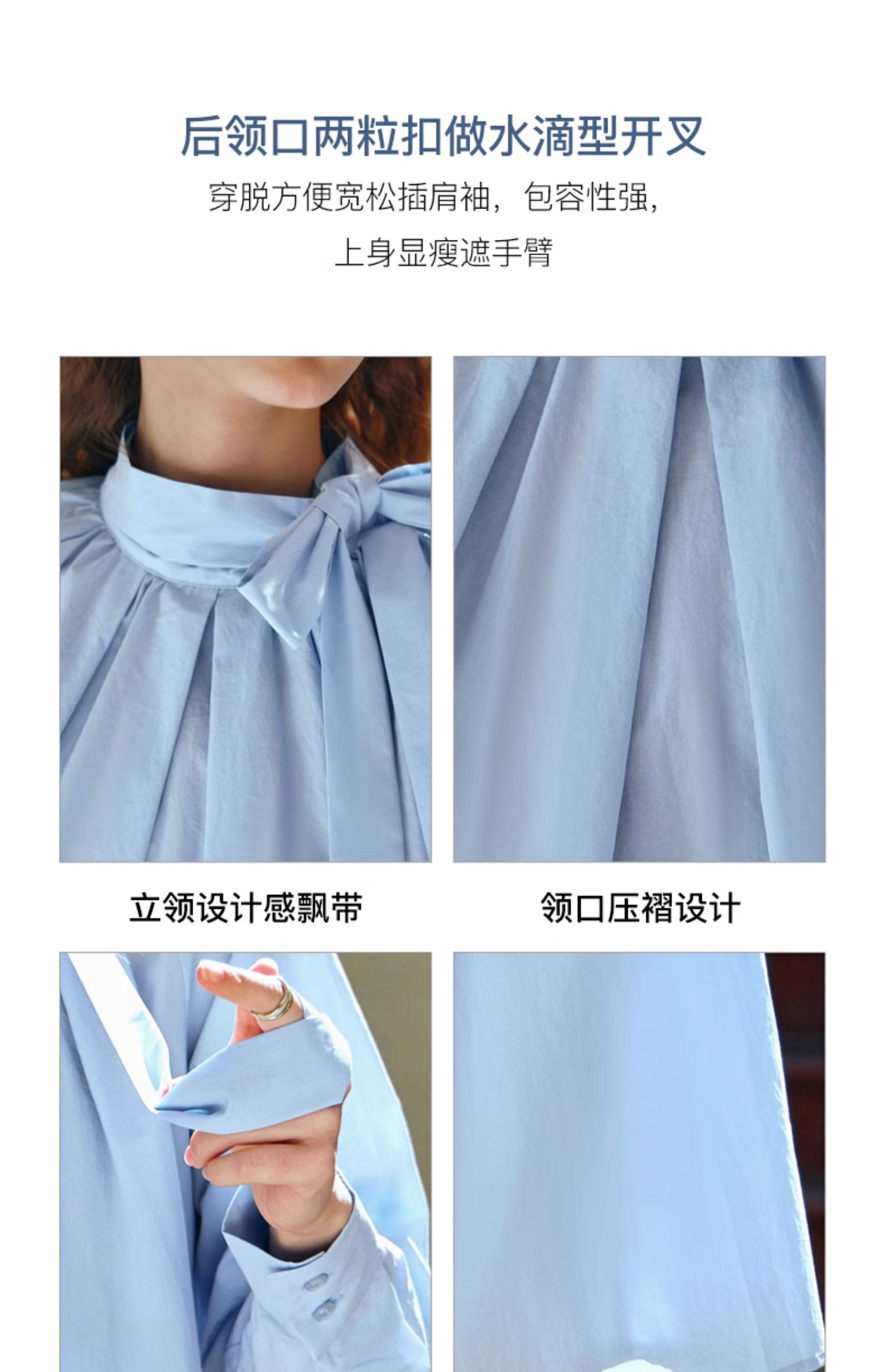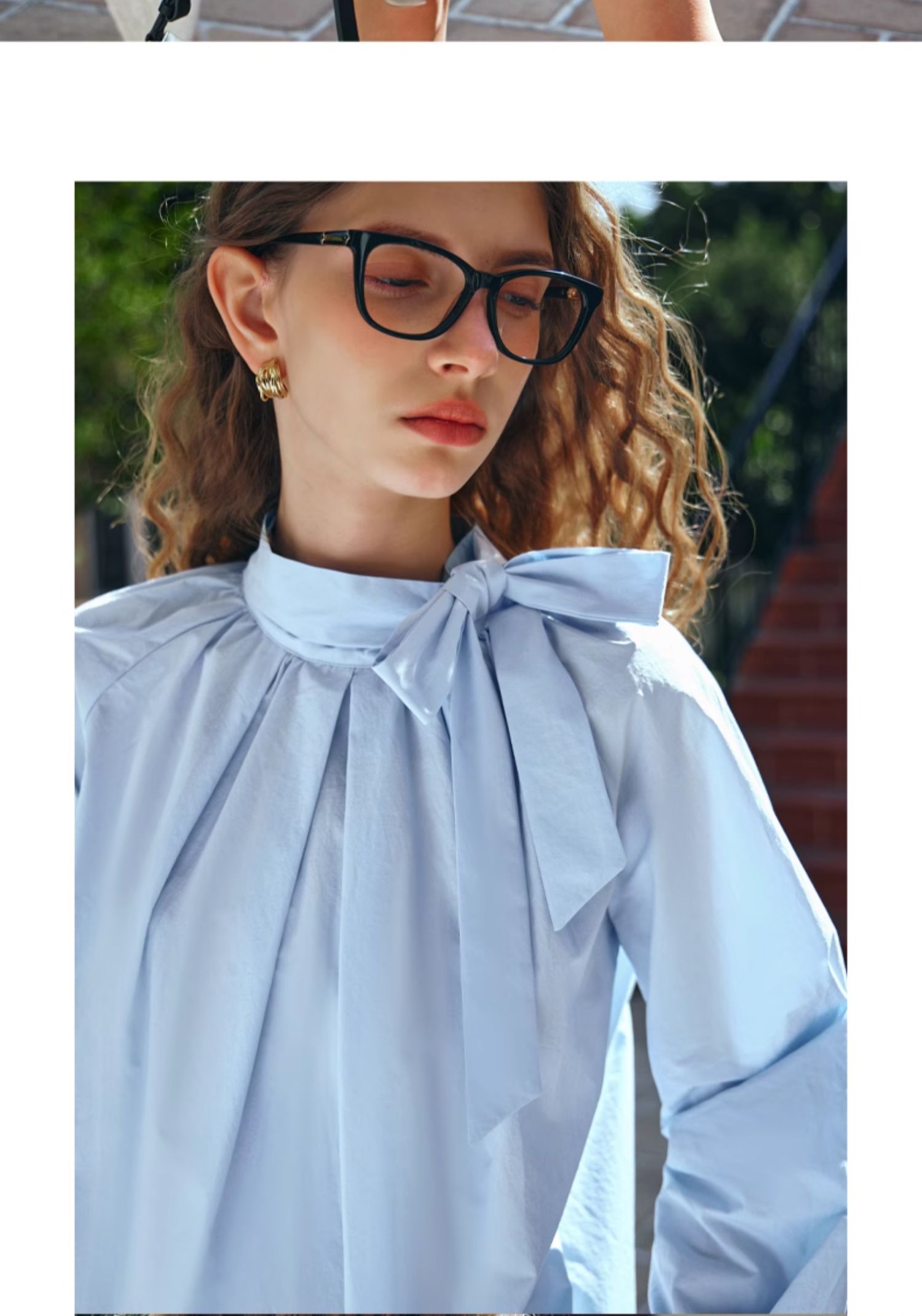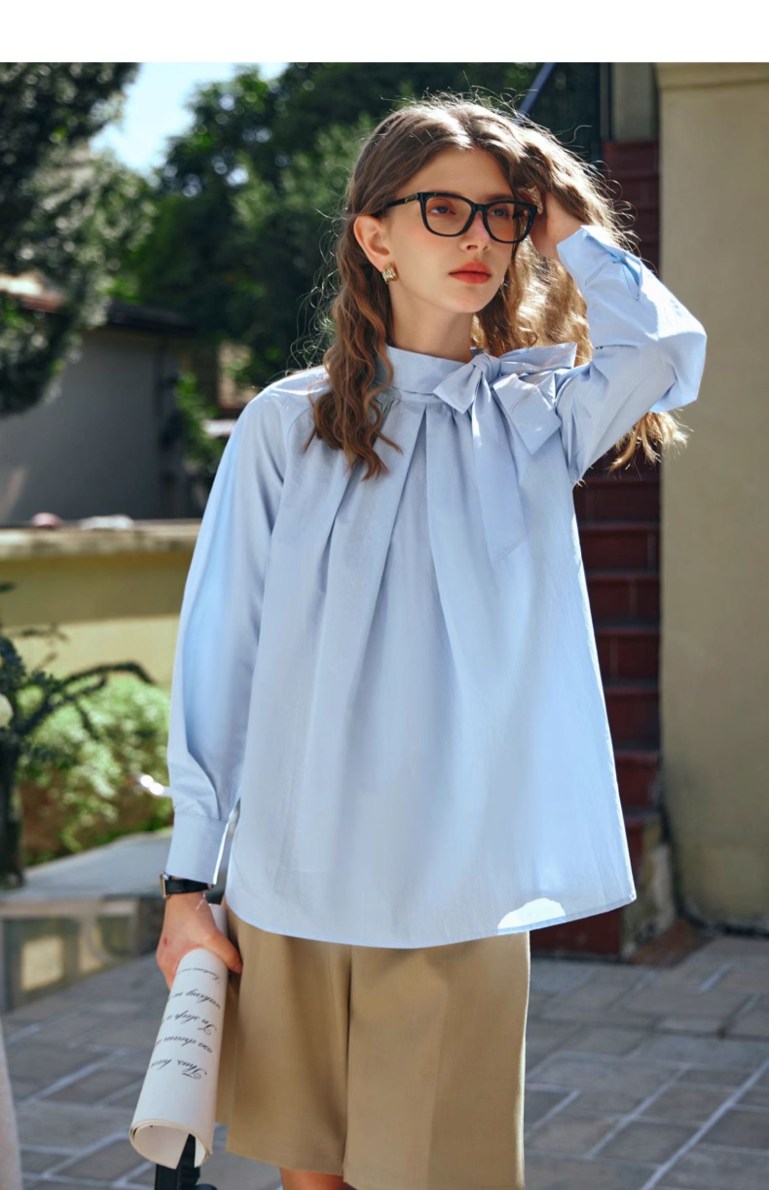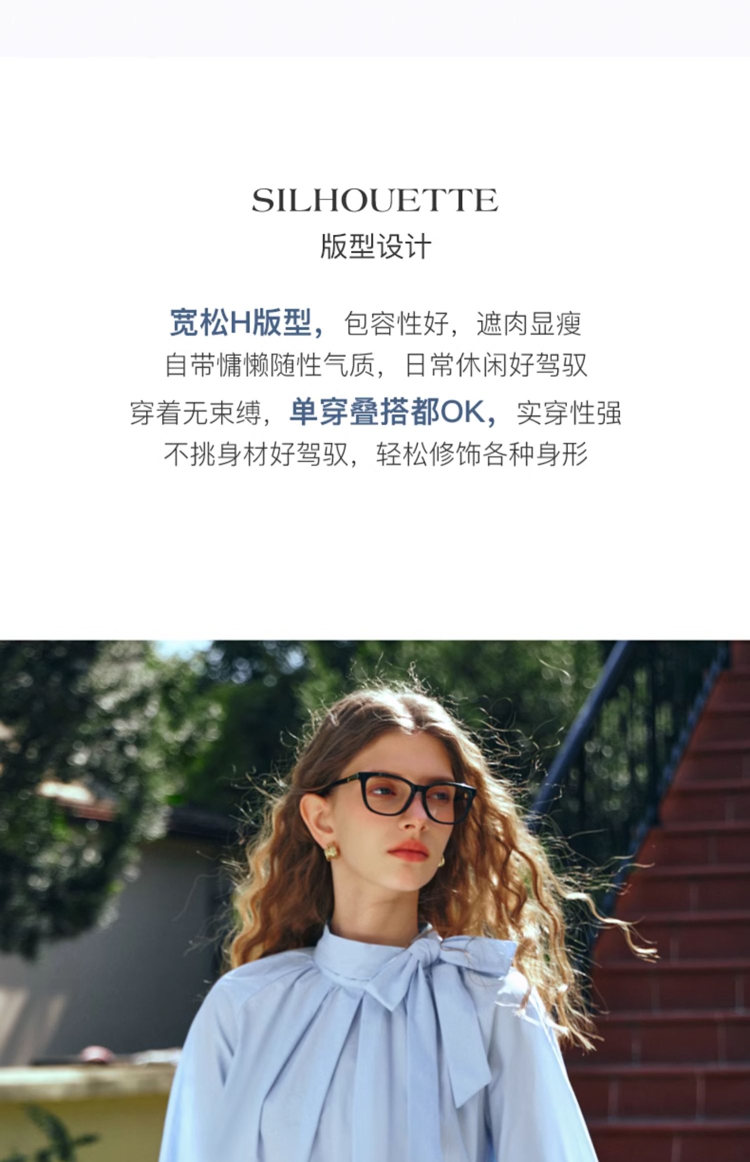 OLrain欧芮儿天蓝色衬衫女早春2024年新款宽松通勤简约设计感衬衣