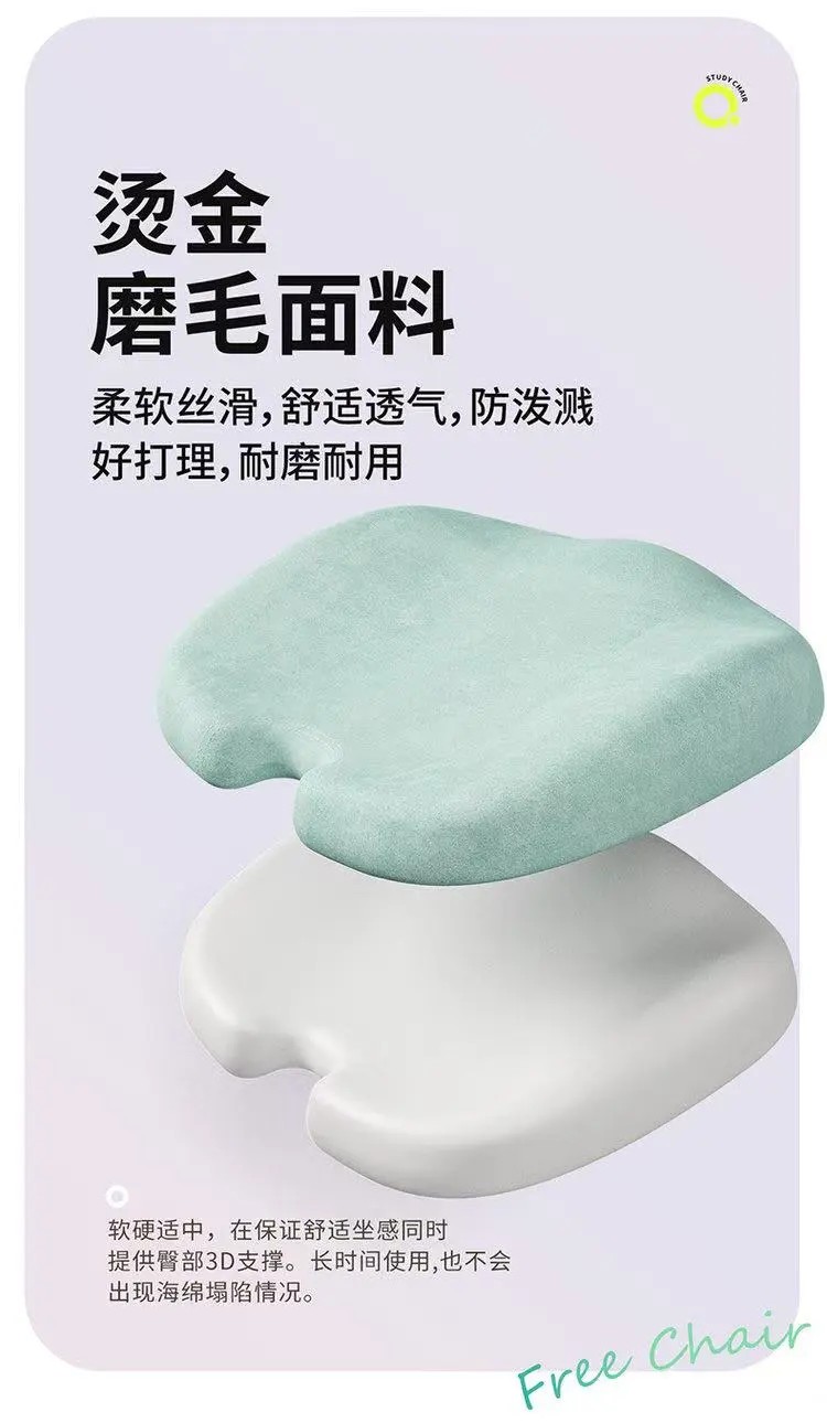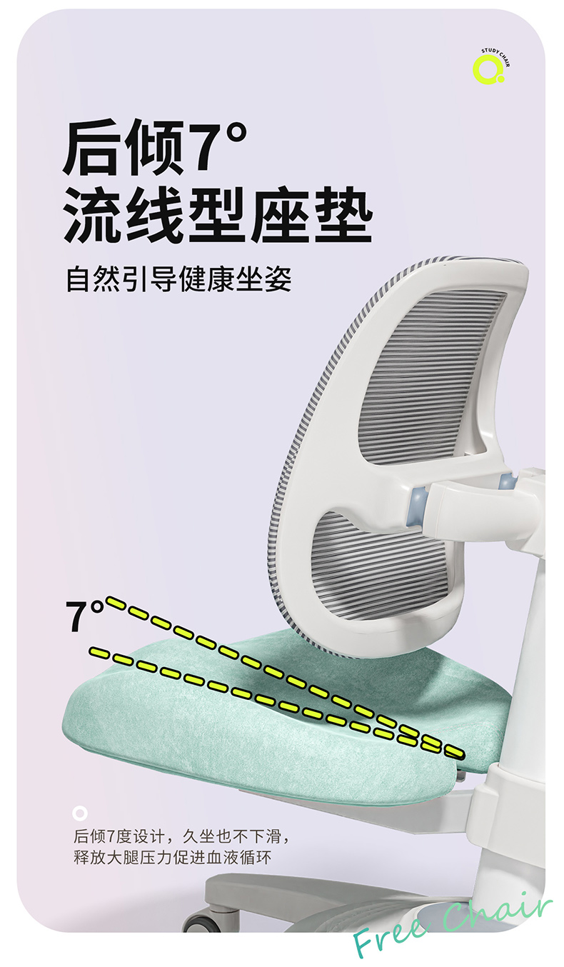 坐垫微微后倾7度,能有效缓解腿部和臀部压力,久坐也不累~