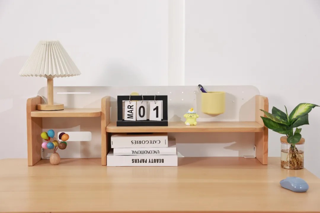 往上面放个电脑、台灯、书本、闹钟、日历本......再放盆小绿植都绰绰有余~