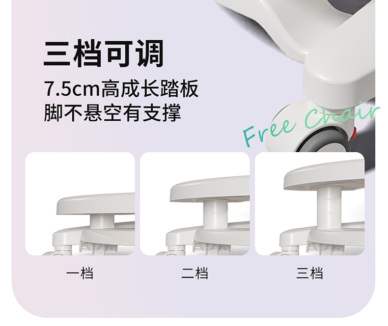 三种档位可调。各个身高的人坐上去,都能脚踏实地,不悬空。