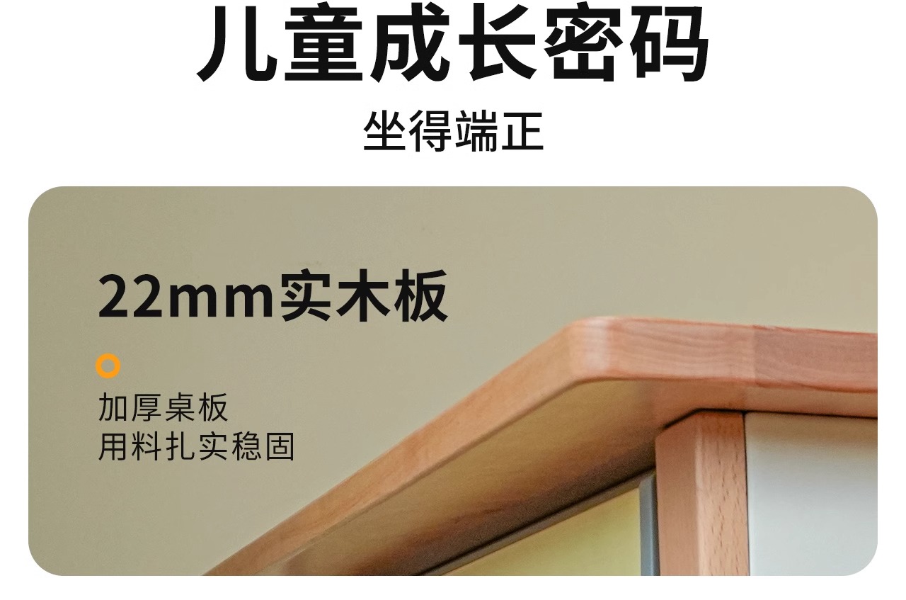 我们的学习桌,采用德国进口实木榉木,厚度足足有22mm。