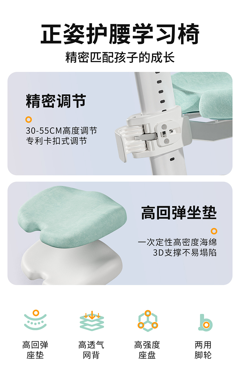 4、搭配专业学习椅,从小养成正姿护腰好习惯!