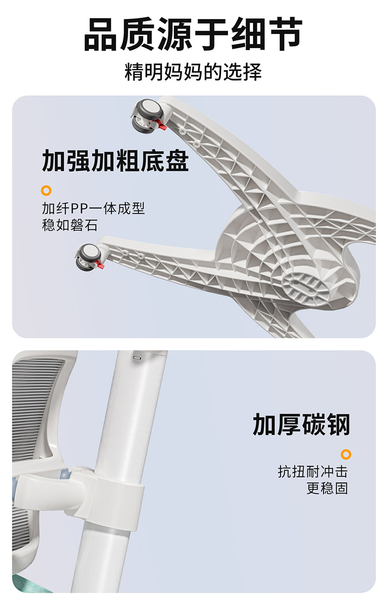 靠背就像一双“无形的手”一样,托住孩子的背部和腰部,大大减轻脊椎压力。