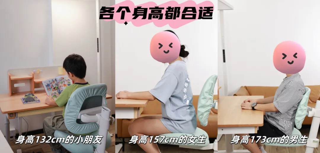 经过我们实测,身高132cm的小朋友、办公室身高157cm的女生、身高173cm的男生,都能调到合适的高度!